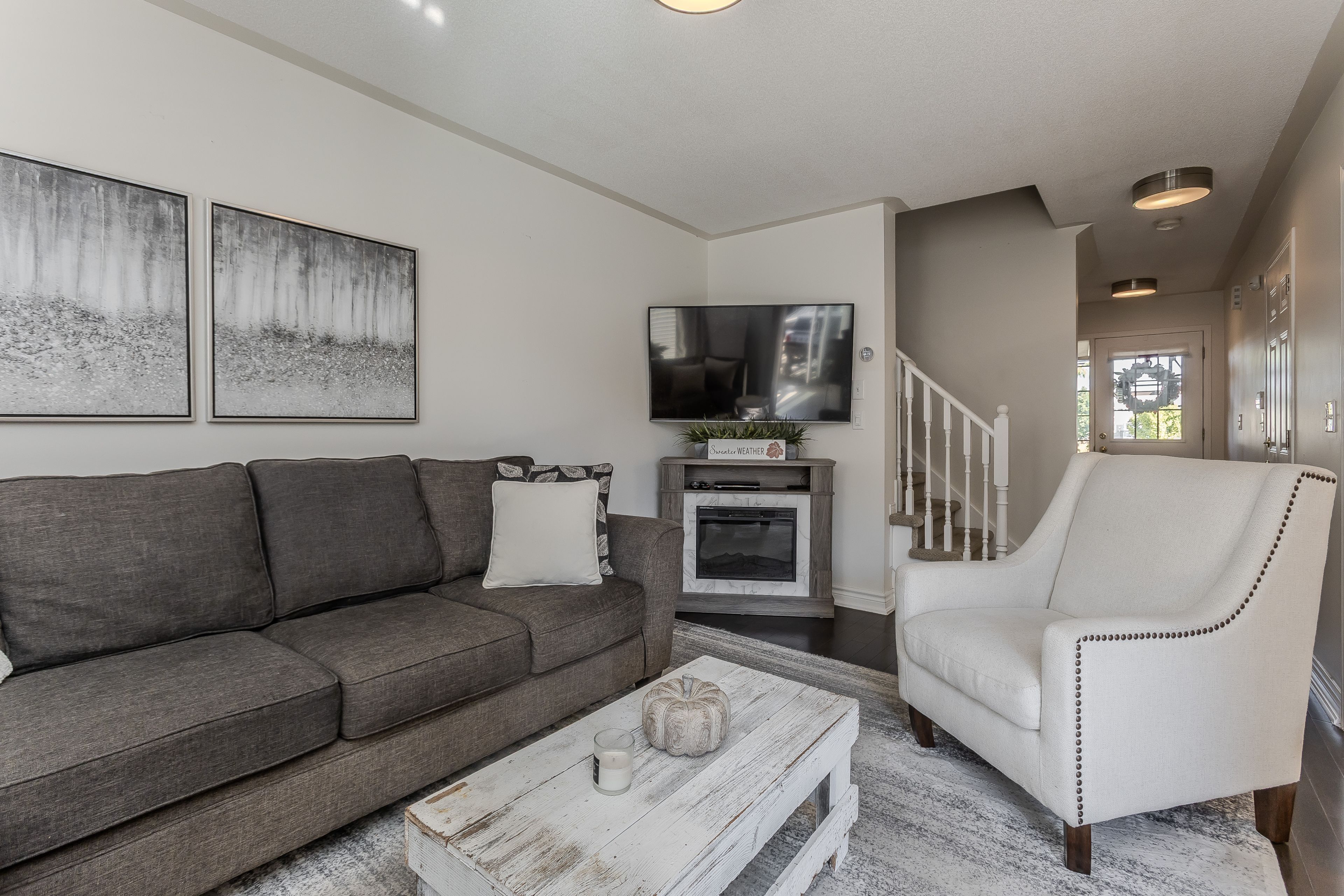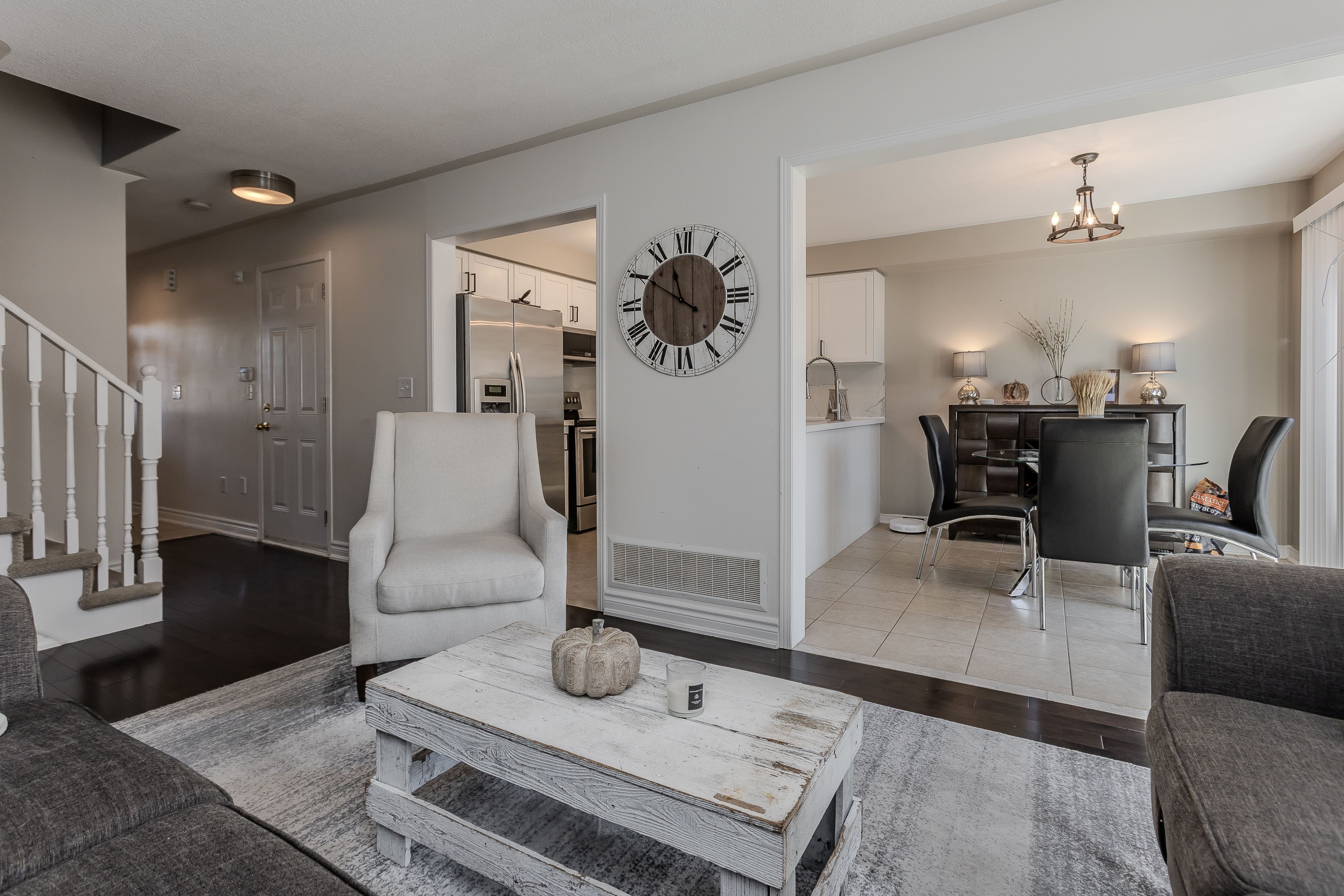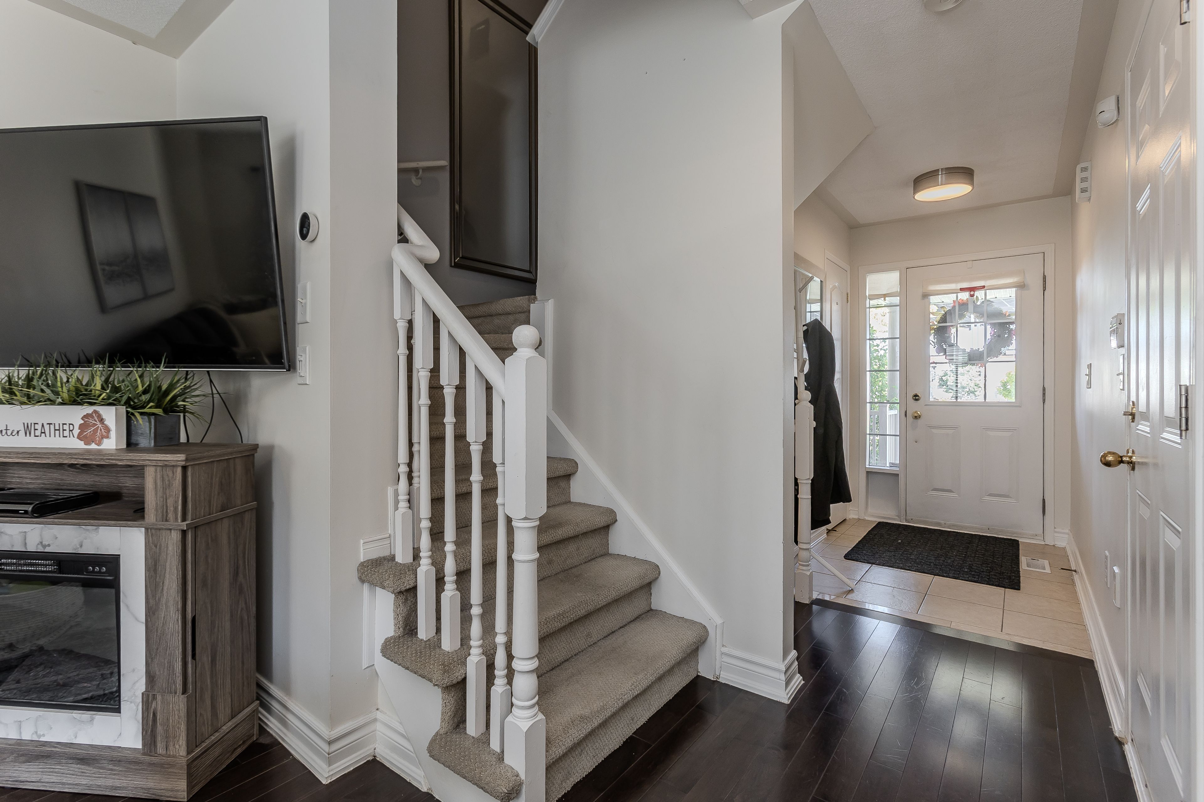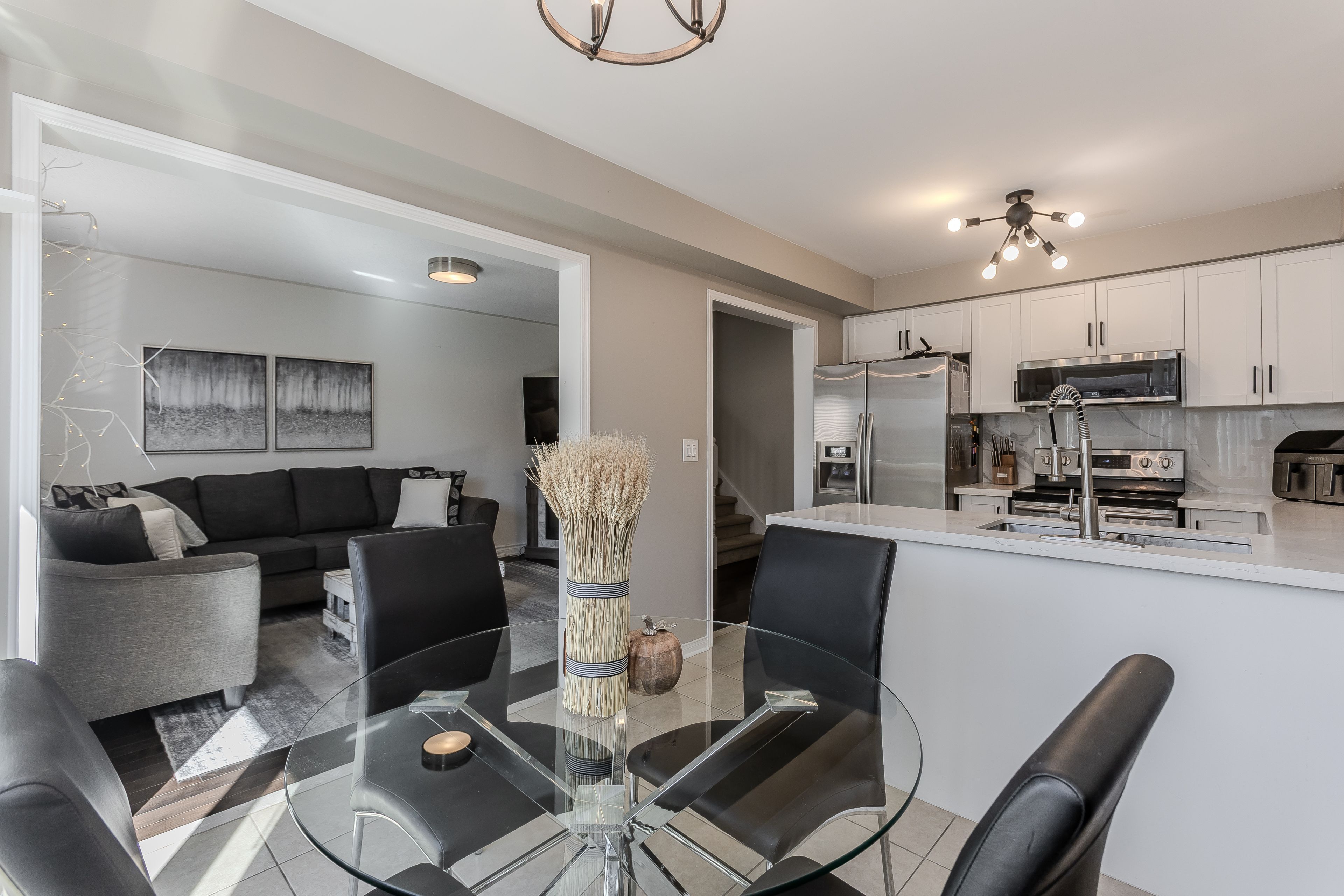 Tucked away on a quiet, family-friendly street in burlington, this charming freehold townhome proves that great things come in perfectly designed packages. Thoughtfully laid out and meticulously maintained, it offers an efficient use of space that maximizes every square foot making it the ideal choice for growing families seeking comfort, convenience, and connection in one of burlington's most desirable communities. A charming exterior with perennial gardens and a covered porch welcomes you home. Inside, natural light fills the open-concept main floor featuring hardwood floors and a seamless flow between living, dining, and kitchen spaces. The bright, modern eat-in kitchen showcases quartz countertops and backsplash, a stylish peninsula, and stainless steel appliances, while the adjacent dining area opens to a private rear deck perfect for morning coffee or family barbecues. Upstairs, the spacious primary suite features a wall-to-wall closet and a 4-piece ensuite bath. Two additional bedrooms, one with a walk-in closet, and a well-appointed main bathroom complete the second floor offering ample room for the entire family. The fully finished lower level adds valuable living space, with a spacious rec room featuring large above-grade windows and durable laminate flooring. Whether used as a playroom, home theatre, or teen hangout, this level extends the homes versatility. A convenient laundry area completes the lower level, keeping practicality top of mind. Outside, the partially fenced backyard offers a perfect mix of deck space and green area ideal for barbecues, playtime, or simply relaxing in the sun. Every inch of this home has been designed to work hard for modern family living, offering style, warmth, and exceptional functionality. Here, you'll find the perfect blend of low-maintenance living and family comfort proof that a smaller footprint can still hold everything a growing family needs to truly thrive.