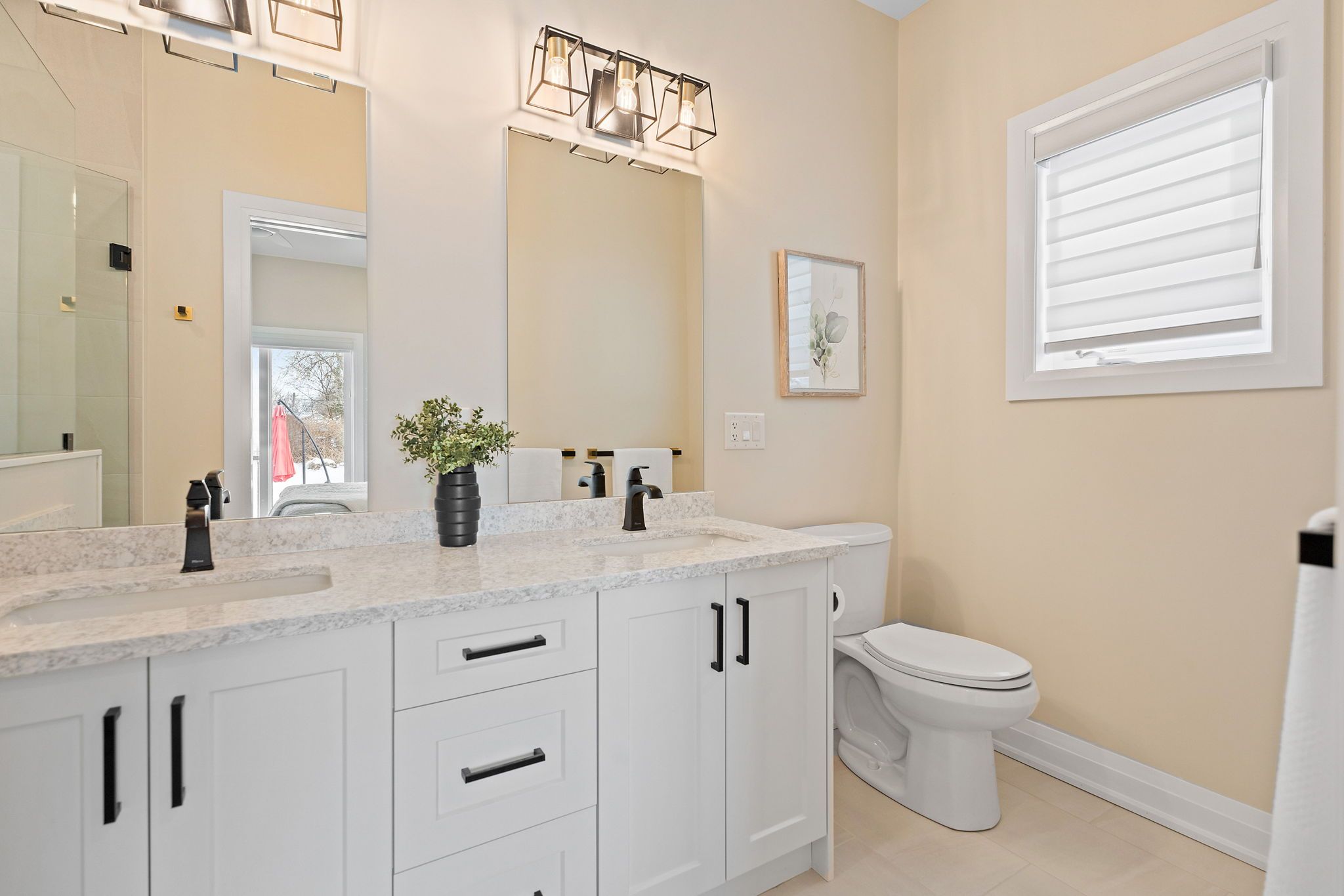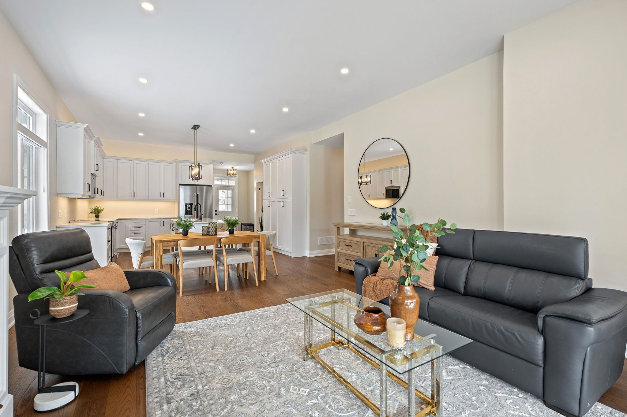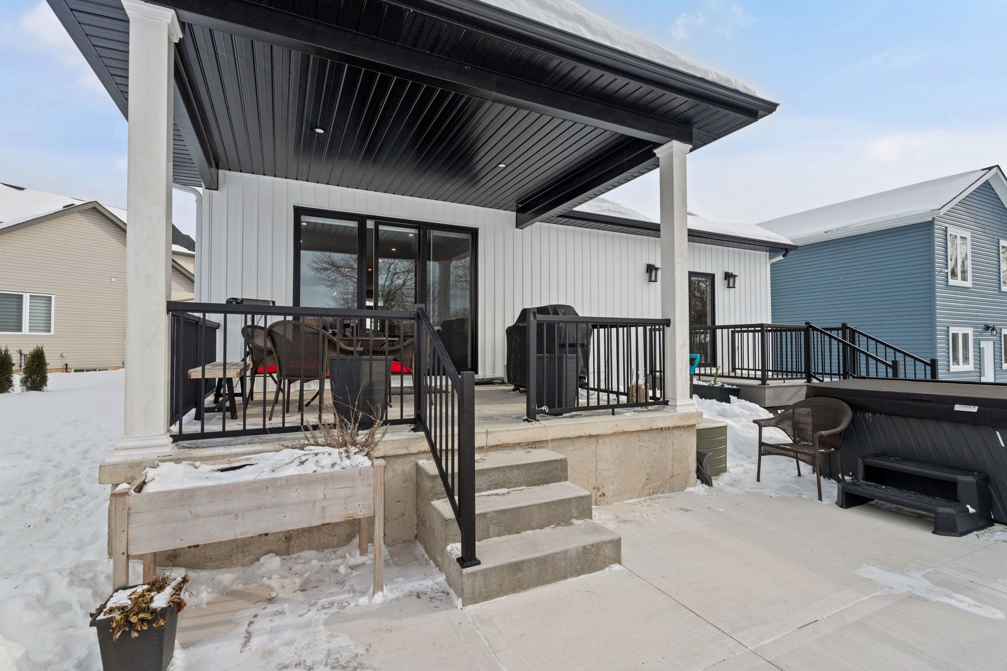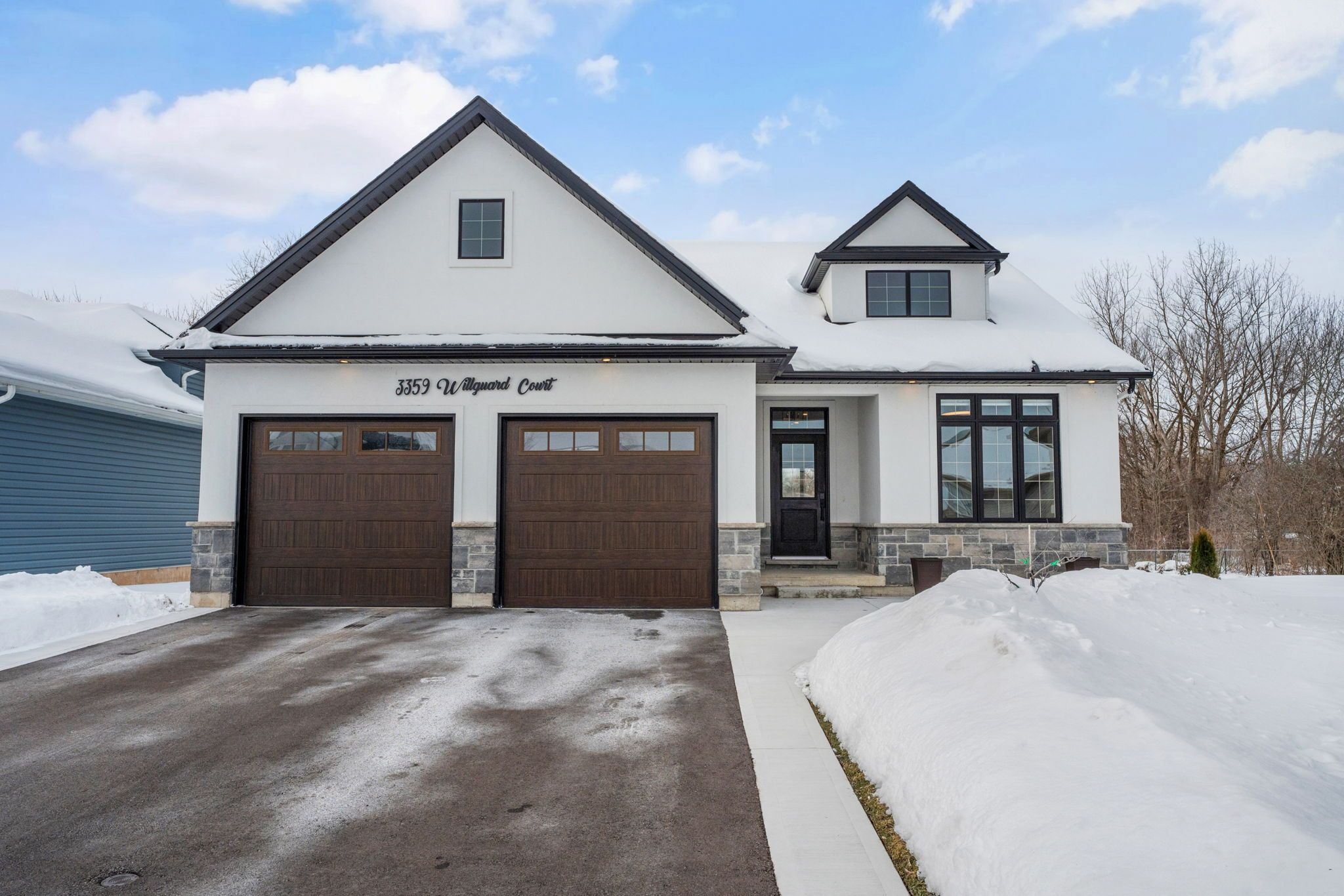 Custom-built luxury bungalow quietly positioned on a cul-de-sac in the sought-after chippawa community of niagara falls. Set on a rare pie-shaped lot backing onto a tranquil creek and framed by mature trees, this property offers exceptional privacy and a refined natural backdrop while remaining minutes to city conveniences. The open-concept main level features soaring 10-foot ceilings, creating an elegant, light-filled atmosphere. High-end construction and curated finishes include engineered hardwood flooring, quartz countertops, and a chef-designed kitchen appointed with premium kitchenaid appliances. Convenient main floor laundry adds everyday functionality. The primary suite serves as a private retreat, complete with a beautifully finished 4-piece ensuite with glass shower and direct walkout access to a separate rear patio. Two additional well-proportioned bedrooms are complemented by a stylish 4-piece bath. Outdoor living is thoughtfully designed with a covered rear porch with gas hookup and a reinforced concrete pad ready for a future swim spa. The expansive unfinished basement with rough-ins and a cold cellar offers exceptional potential to tailor additional living space to your needs. Oversized double garage and a prime location offering convenient access to schools, shopping, dining, the niagara river, and the scenic niagara parkway, all within a quiet residential setting. A refined modern residence delivering privacy, quality craftsmanship, and an elevated lifestyle. Arrange your private showing and experience the lifestyle this home provides!