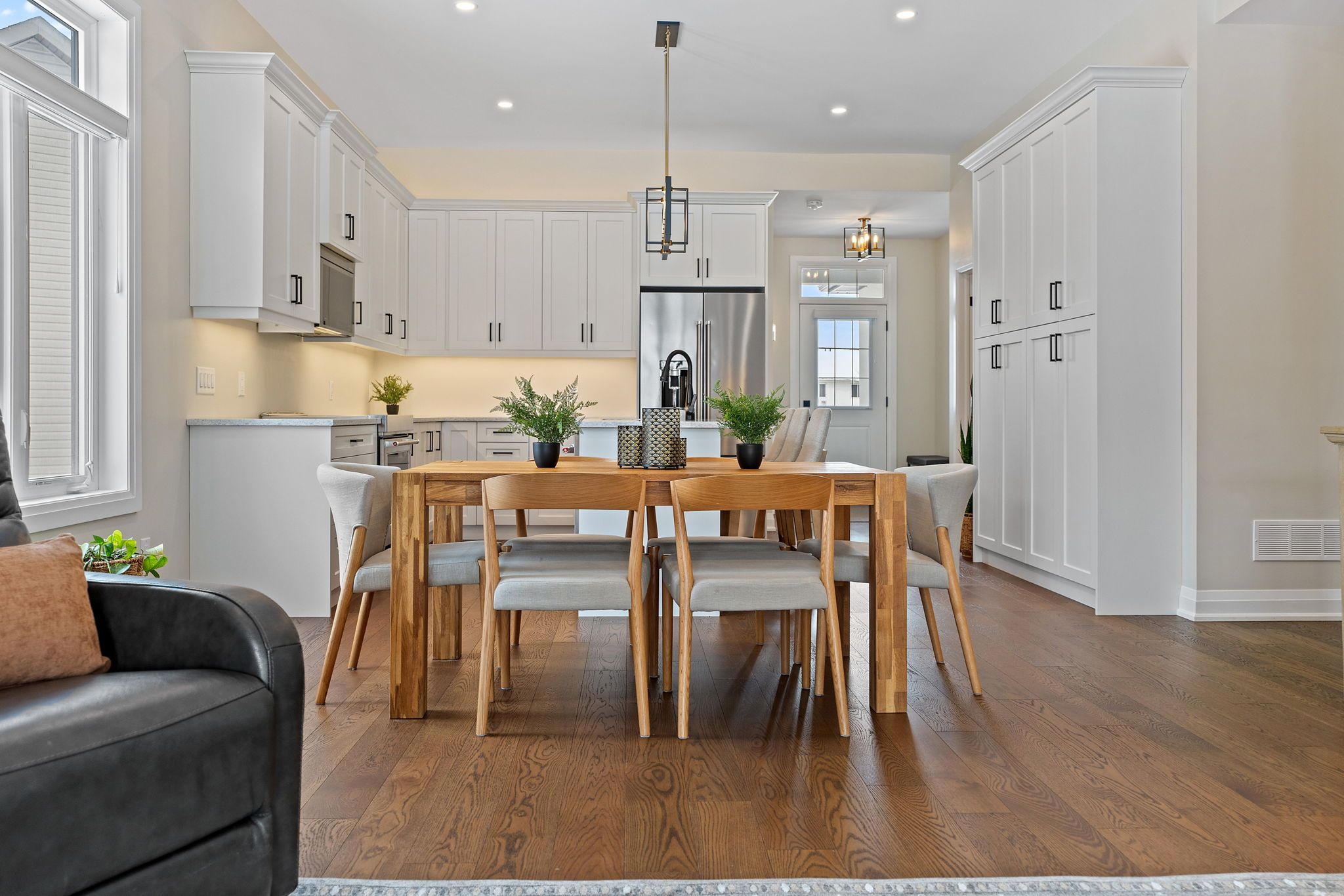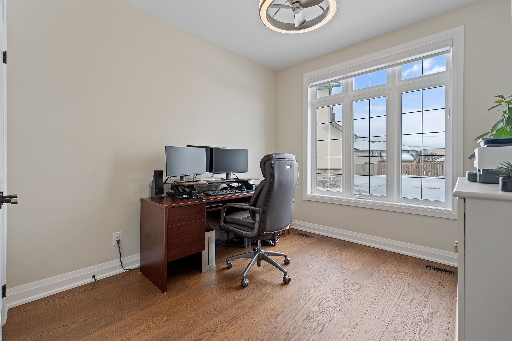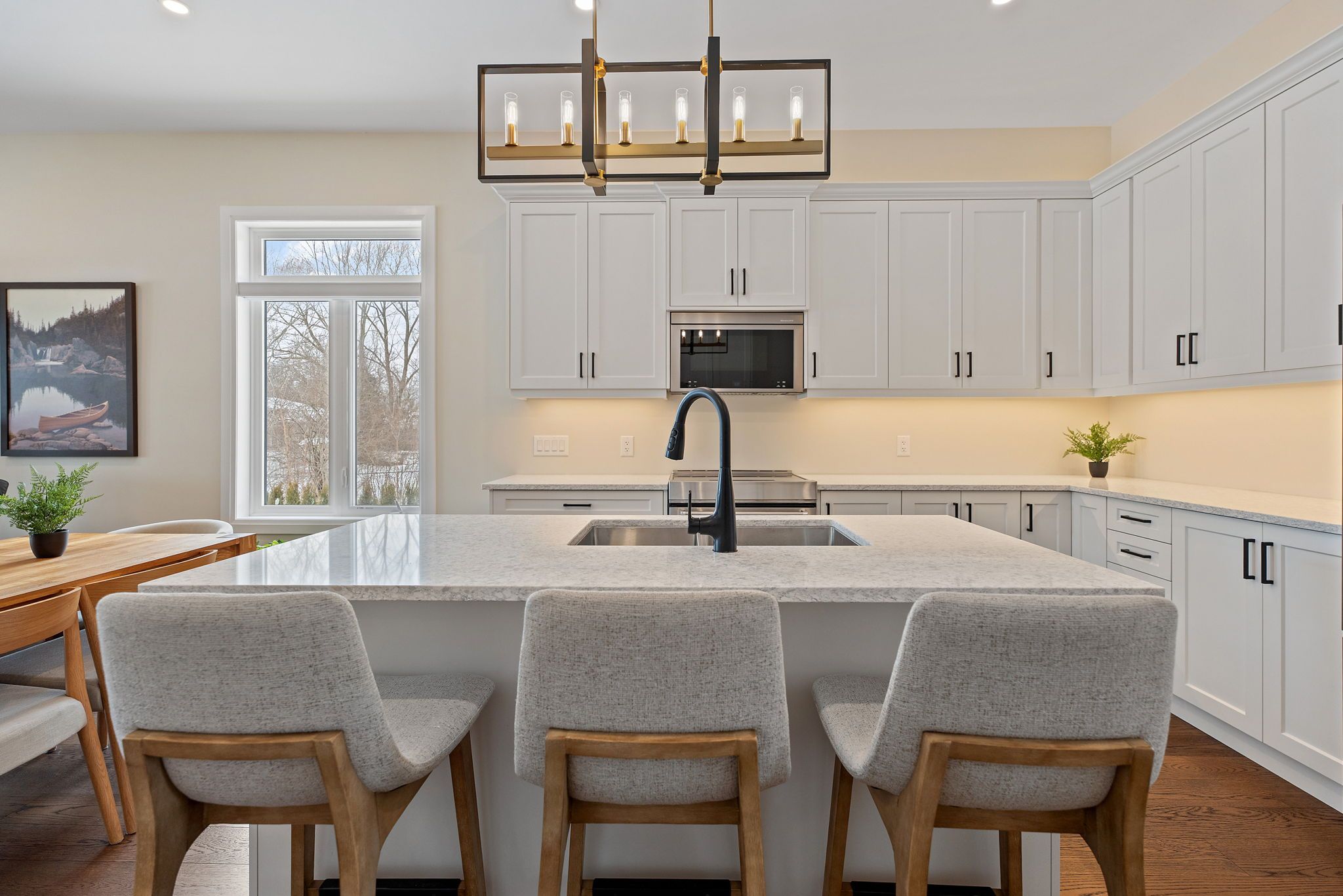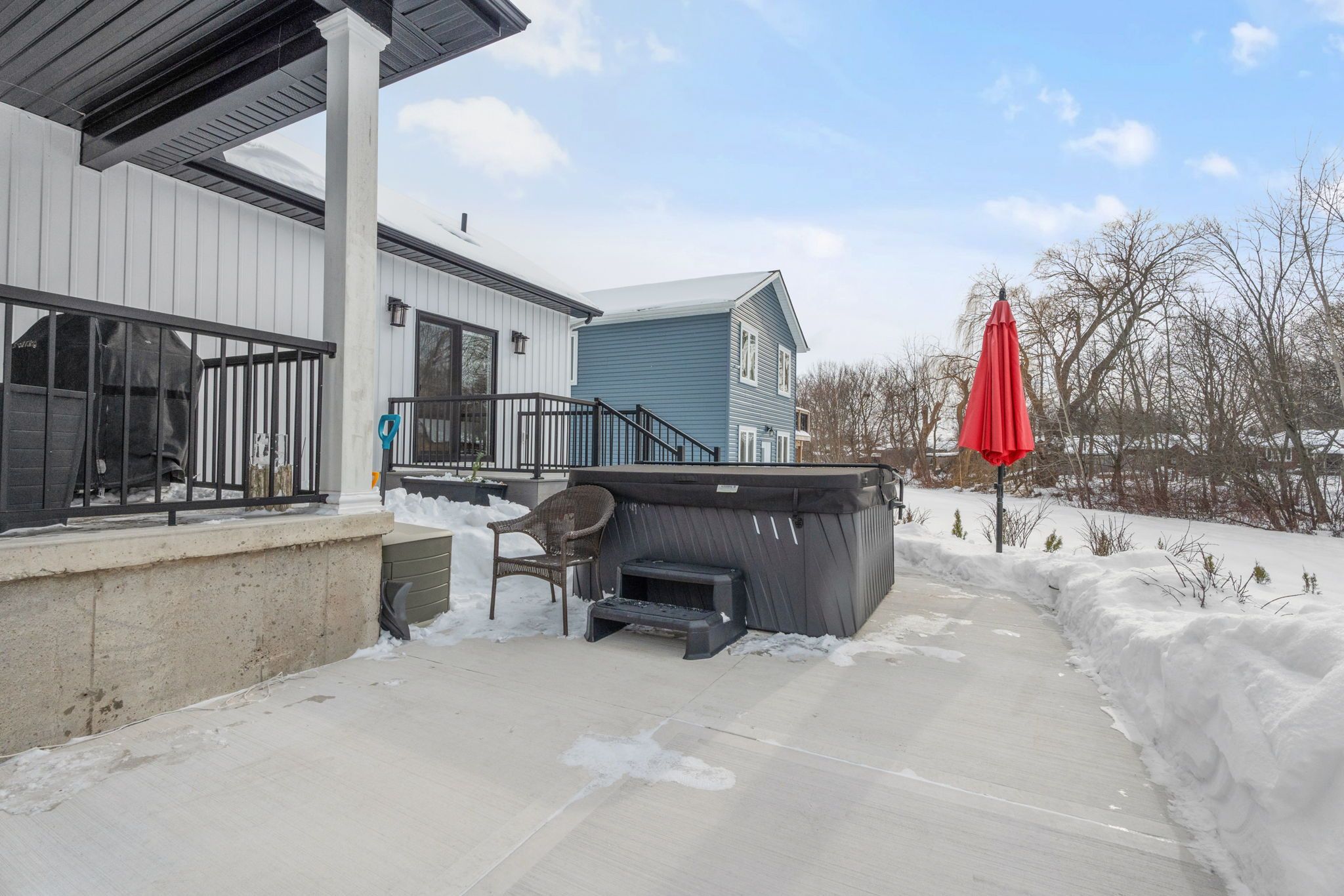 Custom-built luxury bungalow quietly positioned on a cul-de-sac in the sought-after chippawa community of niagara falls. Set on a rare pie-shaped lot backing onto a tranquil creek and framed by mature trees, this property offers exceptional privacy and a refined natural backdrop while remaining minutes to city conveniences. The open-concept main level features soaring 10-foot ceilings, creating an elegant, light-filled atmosphere. High-end construction and curated finishes include engineered hardwood flooring, quartz countertops, and a chef-designed kitchen appointed with premium kitchenaid appliances. Convenient main floor laundry adds everyday functionality. The primary suite serves as a private retreat, complete with a beautifully finished 4-piece ensuite with glass shower and direct walkout access to a separate rear patio. Two additional well-proportioned bedrooms are complemented by a stylish 4-piece bath. Outdoor living is thoughtfully designed with a covered rear porch with gas hookup and a reinforced concrete pad ready for a future swim spa. The expansive unfinished basement with rough-ins and a cold cellar offers exceptional potential to tailor additional living space to your needs. Oversized double garage and a prime location offering convenient access to schools, shopping, dining, the niagara river, and the scenic niagara parkway, all within a quiet residential setting. A refined modern residence delivering privacy, quality craftsmanship, and an elevated lifestyle. Arrange your private showing and experience the lifestyle this home provides!
