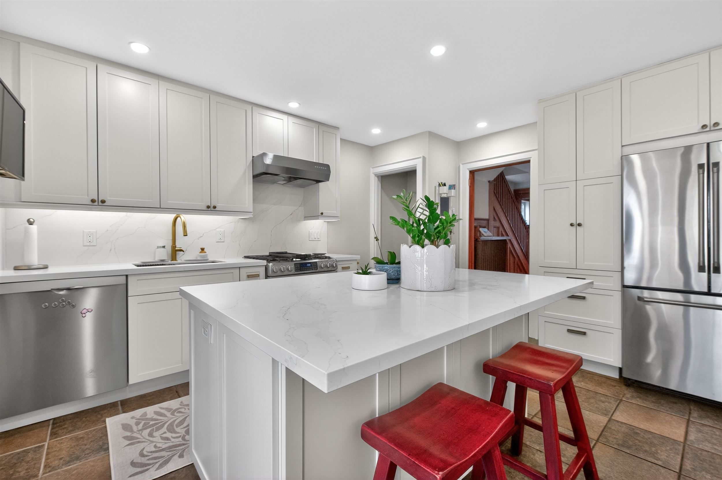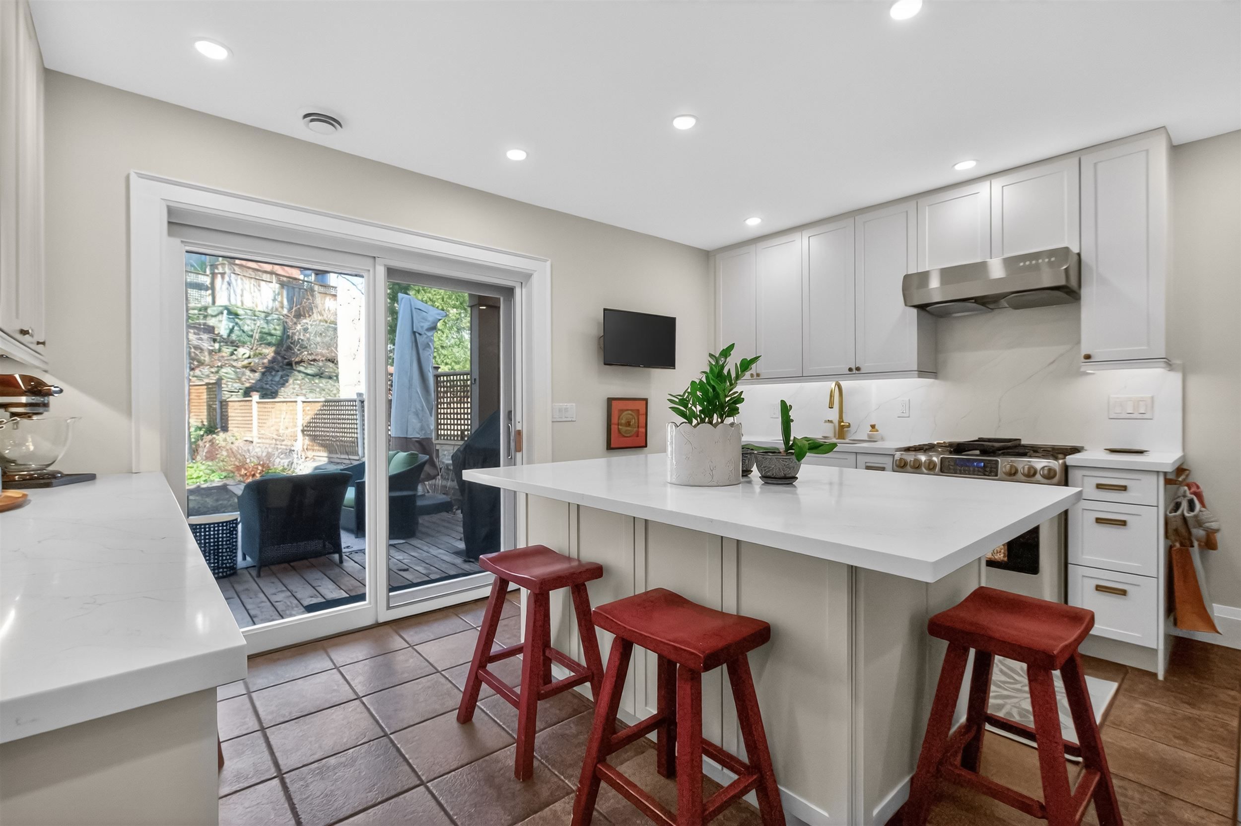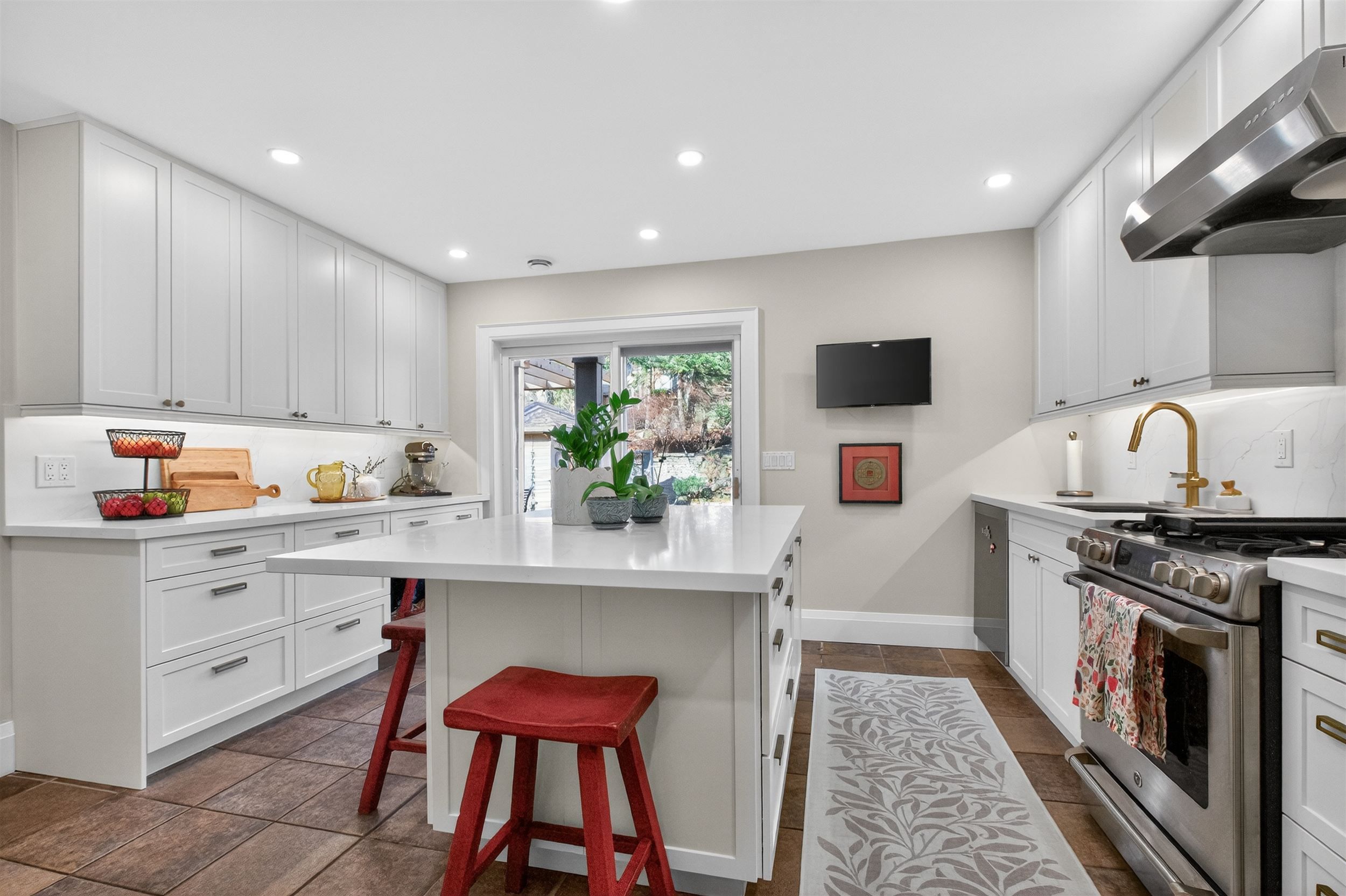 • Inviting cook's kitchen designed for gatherings around the island.