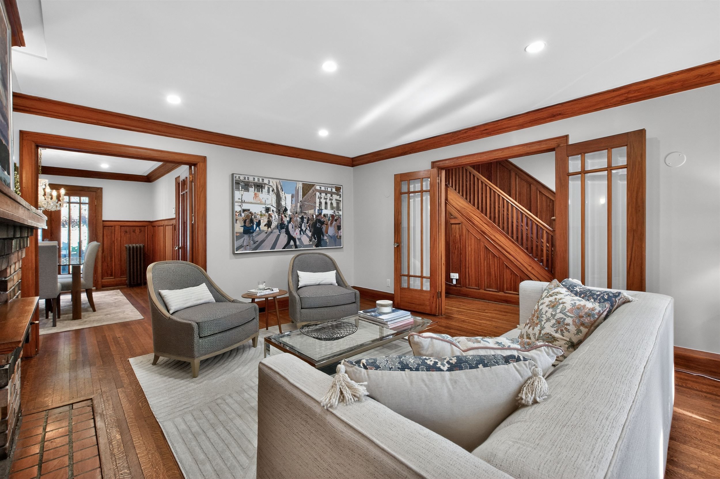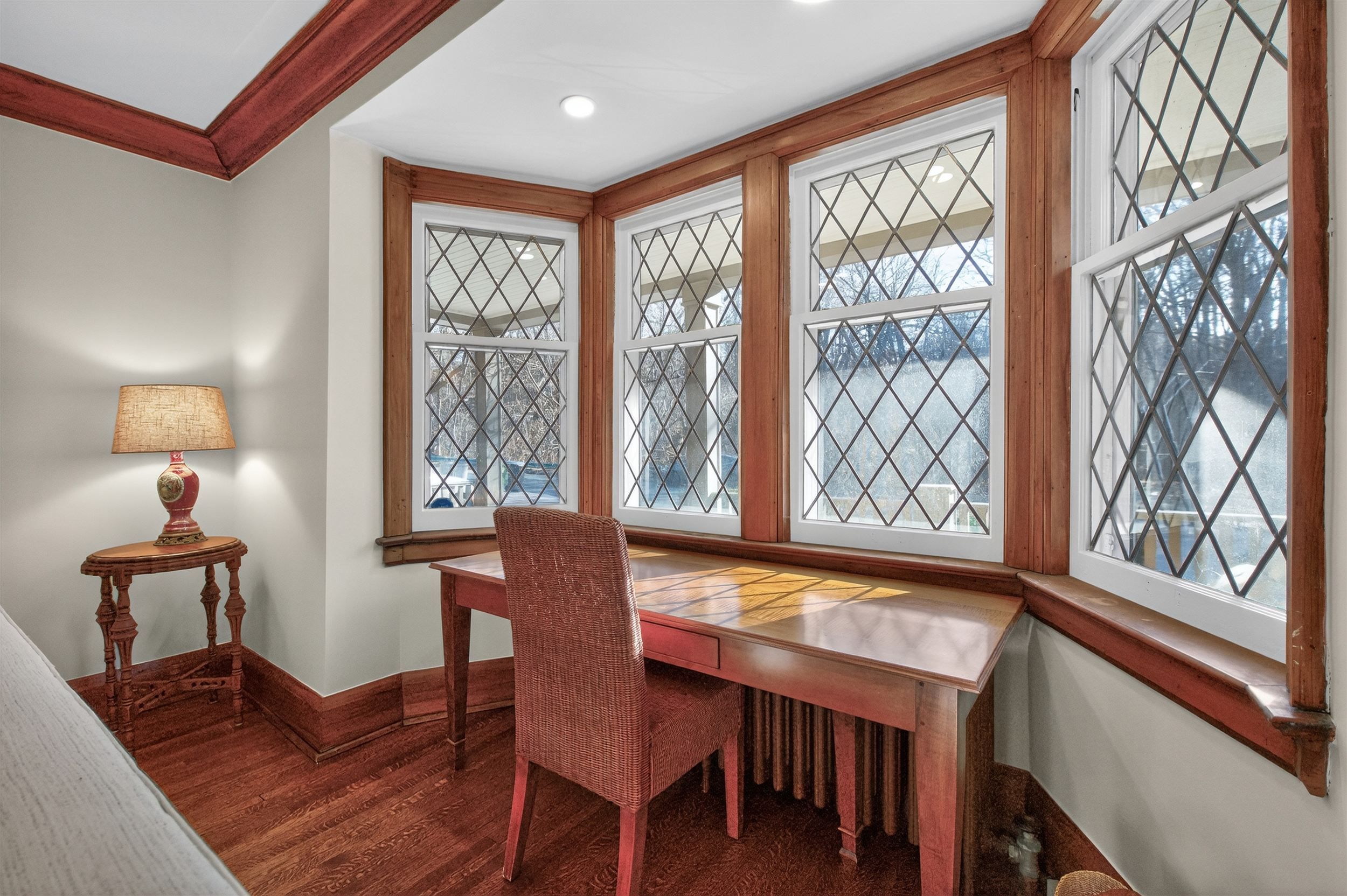 • Charming handcrafted wood features and elegant crown mouldings inside.