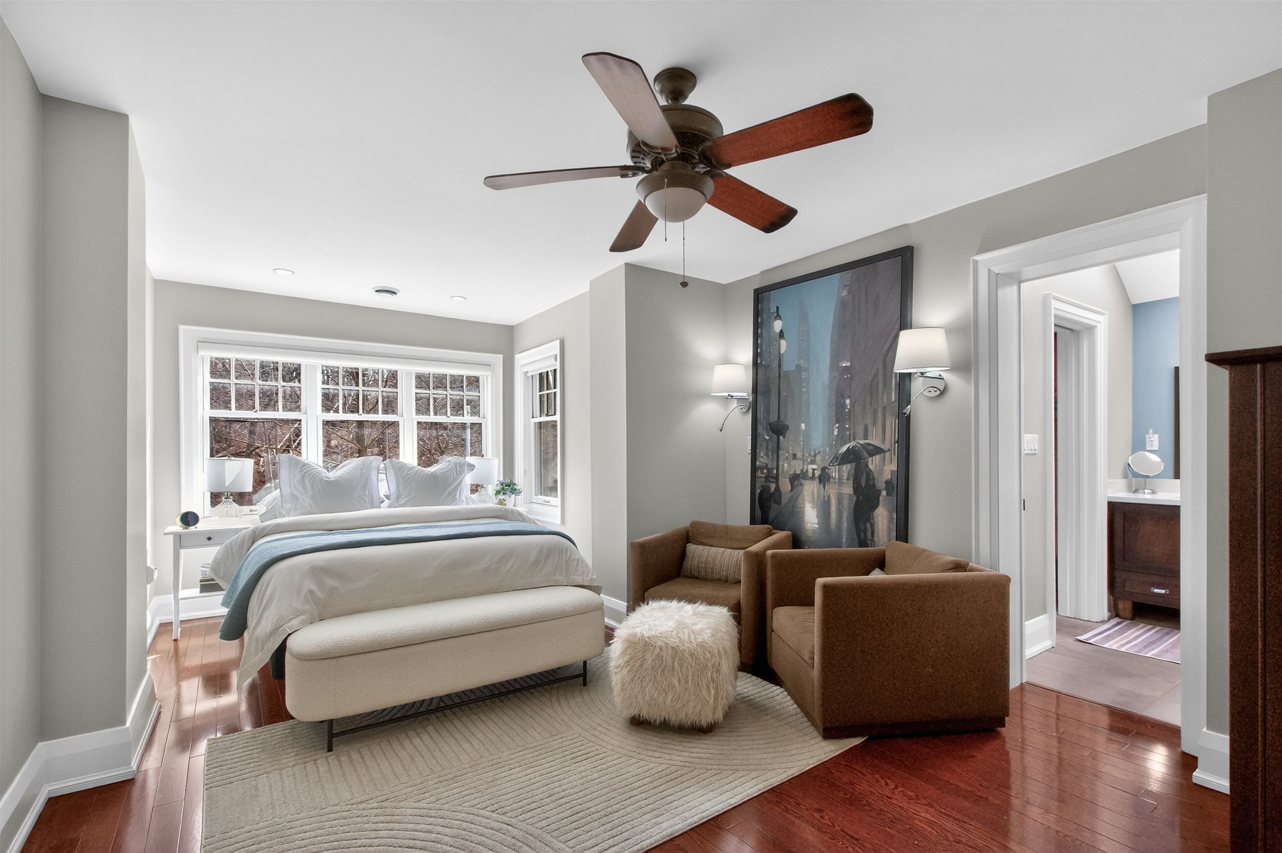 • Peaceful backyard with a meandering garden and soothing pond.