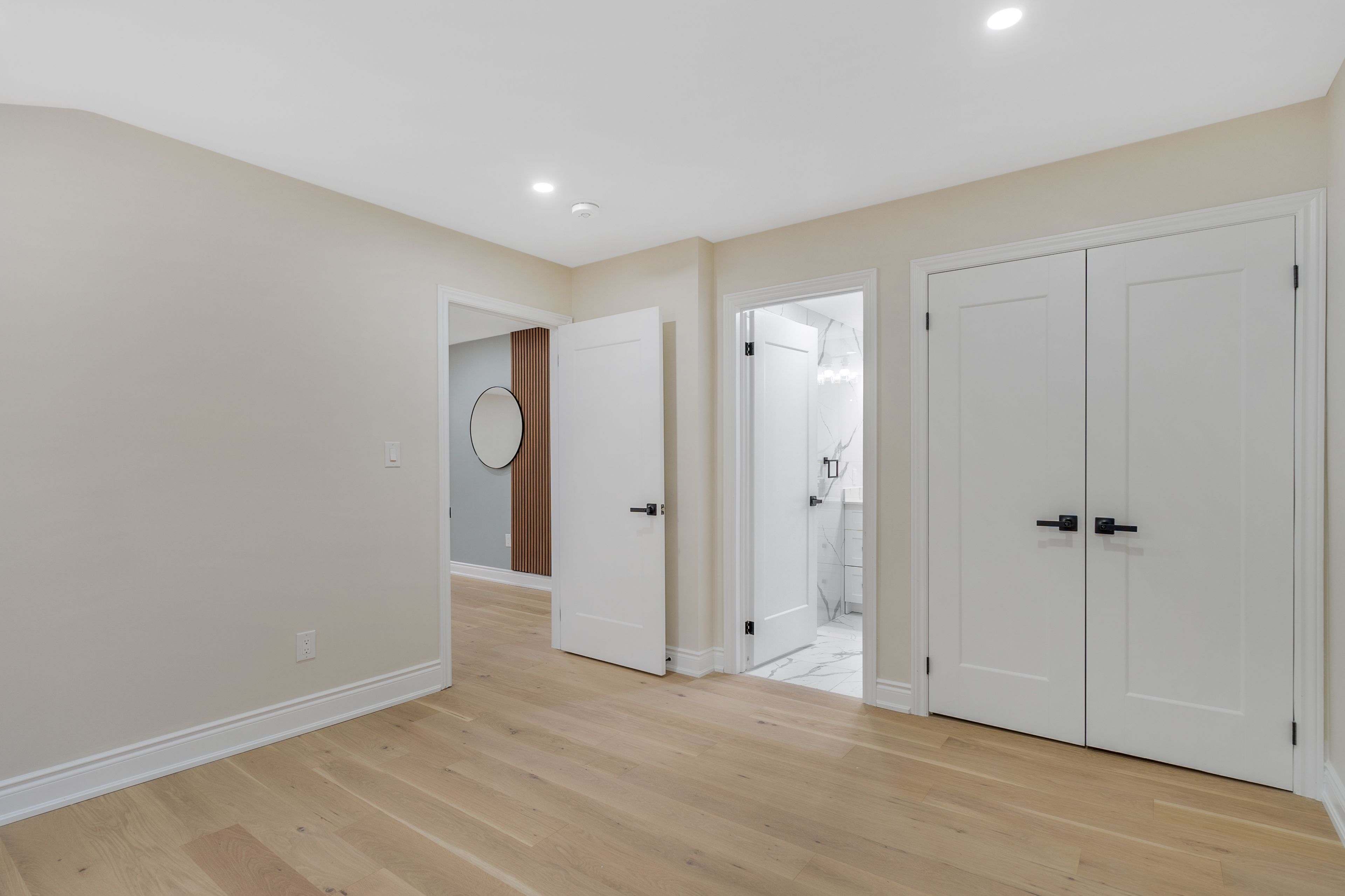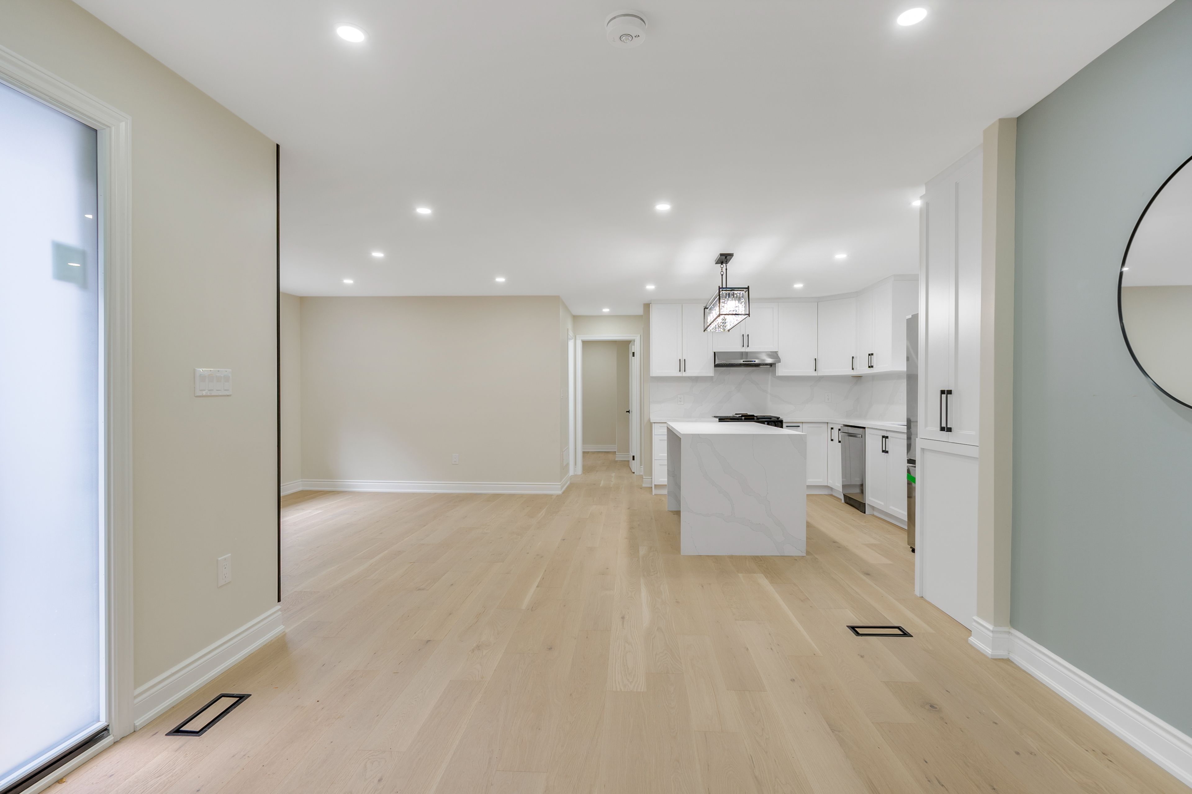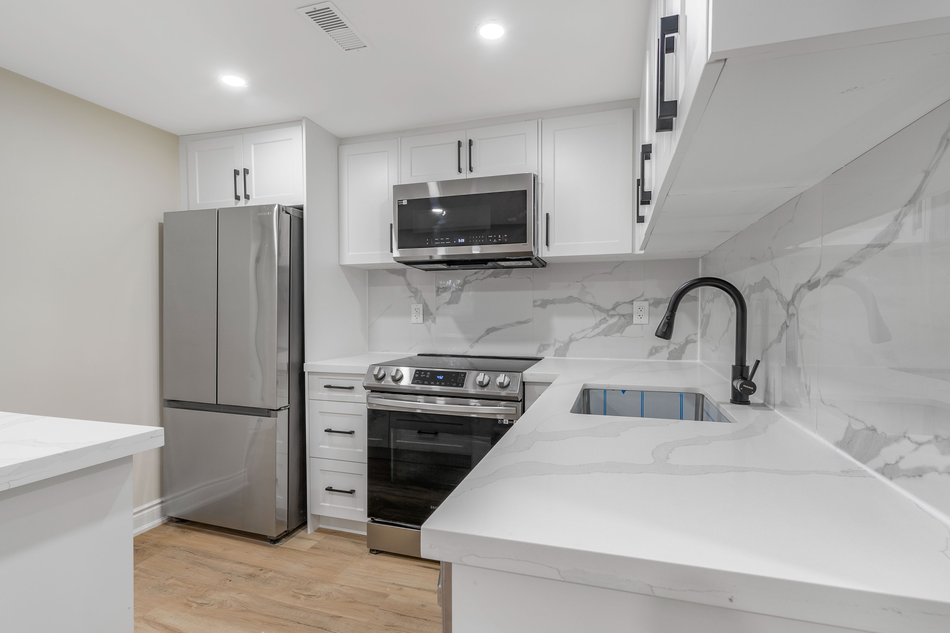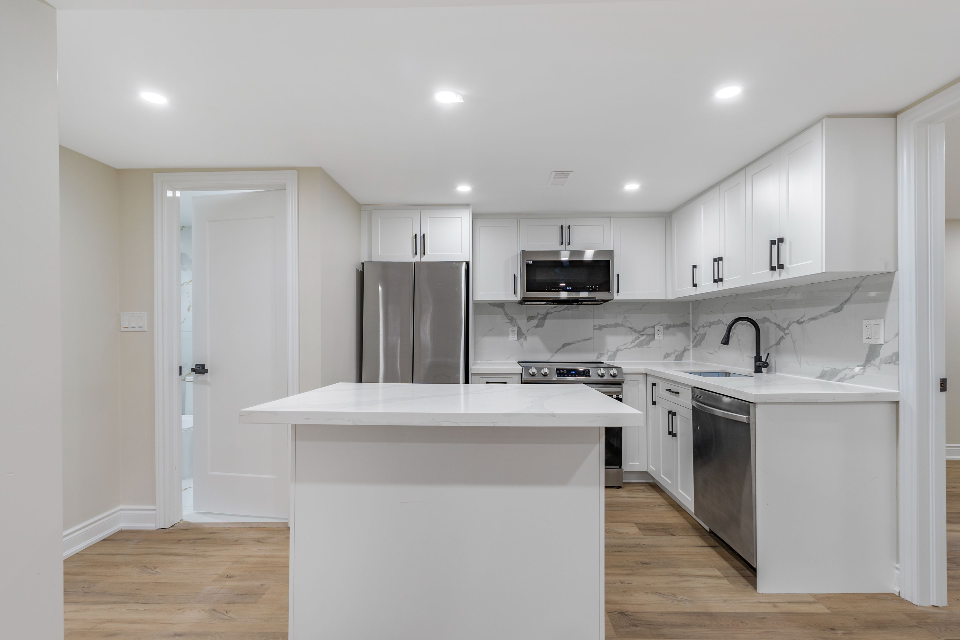 Welcome to this stunning, fully upgraded detached bungalow set on an impressive 51' x 180' lot, offering over 2200 sqft of beautifully finished living space! This exceptional home has been thoughtfully renovated from top to bottom with premium, modern finishes that truly set it apart. The main floor features three generously sized bedrooms, including two primary bedrooms-each with gorgeous newly renovated ensuites. One primary bedroom also showcases a spacious walk-in closet, providing ample storage for your everyday needs. Enjoy cooking in the designer chef's kitchen, complete with brand new stainless steel samsung appliances, quartz countertops and backsplash, and a large island perfect for meal prep and casual dining. Luxury continues throughout with brand new 6" natural-toned engineered hardwood that brightens the entire home. Additional upgrades include a new 200 amp electrical panel (ev-ready), a modern front door with sidelight, new windows throughout allowing an abundance of natural light, and upgraded pot lights inside and out for a bright, inviting atmosphere at any time of day. Step outside to a professionally landscaped lot featuring a stone pathway that wraps around the home, leading to a charming patio and fire pit-ideal for hosting family and friends. The freshly paved asphalt driveway provides parking for up to six vehicles, ensuring comfort and convenience. Perfect for multi-generational families or savvy investors, the basement offers tremendous potential with three spacious bedrooms, two full washrooms, an updated kitchen, a second laundry room, and two separate entrances-ideal for generating rental income. Nestled in an ultra-convenient location, this home is just minutes from shopping, schools, parks, public transit, qew, and the redhill valley parkway-making daily living and commuting effortless. A rare opportunity not to be missed!