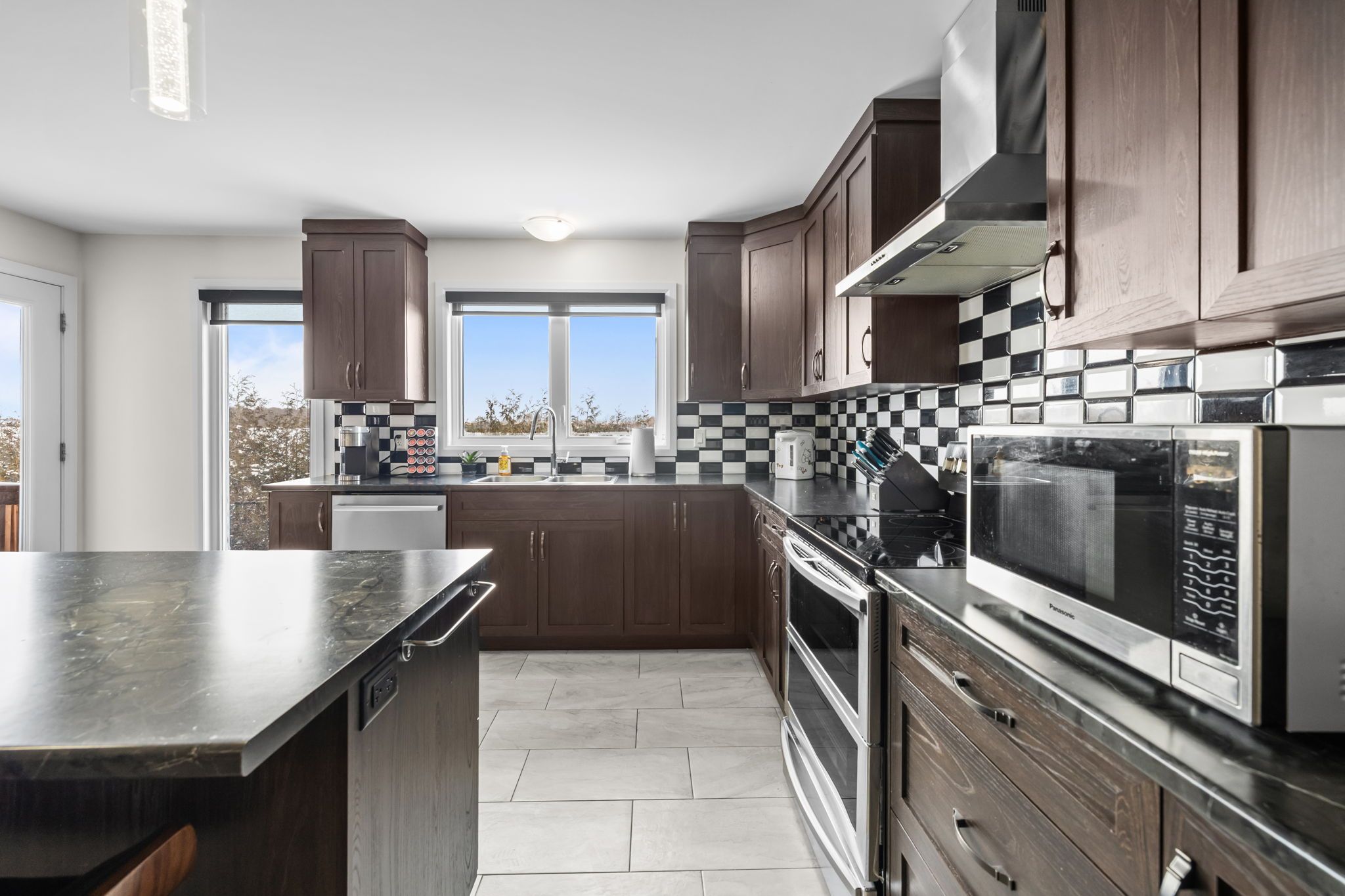 • Spacious kitchen with access to a large, partially covered deck.