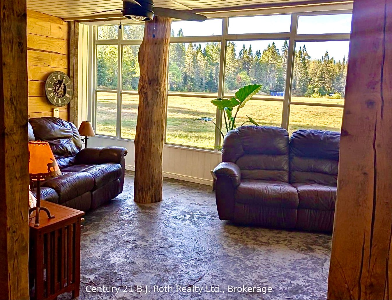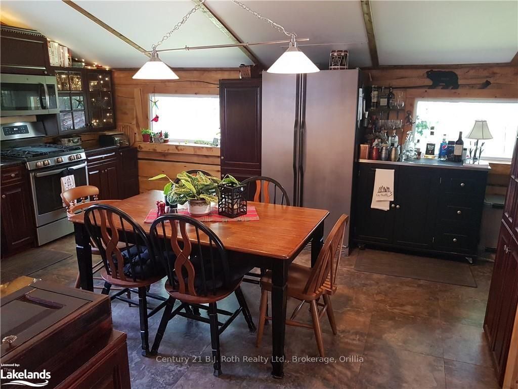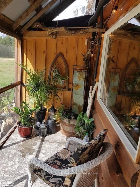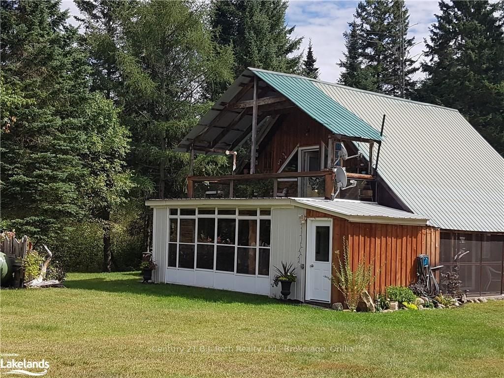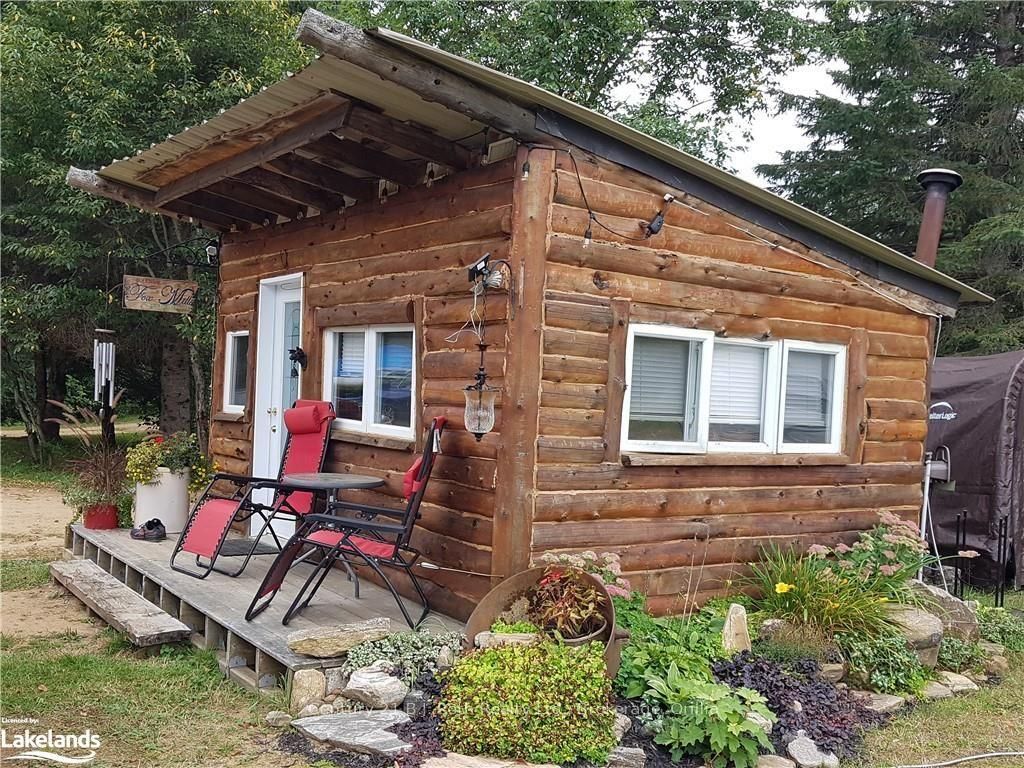 Charming log home privately situated on over 62 acres with trails to call your own! Beautiful pond with sand beach so you can camp at your own oasis. Romantic tree lined driveway leads you to this perfect setting! Custom log home with metal roof + attached covered patio + carport/storage + attached garage/workshop! Impressive main floor country kitchen with custom cabinetry open to inviting livingroom with bright log ambiance & romantic propane fireplace. Main floor family room/bedroom also has beautiful propane fireplace with 'live edge" mantel for cozy winter evenings. Newer 3 pc bath and separate entrance completes the main floor. Hardwood flo0rs & stamped concrete + some laminate. Upstairs there are 2 bedrooms, 4 pc bath with jacuzzi tub, full size laundry with a romeo and juliette balcony overlooking your very own estate. Watch the deer and bull moose wander through to the pond. Exciting wildlife viewing perch! Cute bunkie for extra guests + second cabin in the woods at back of property on the trails. 2 propane fireplaces are main source of heat with electric baseboard as back up. Briggs and stratton hard wired generator. There is a seasonal closed-in sunroom on the front with removable panels. Kearney has dog sled races in feb., snowmobile trails throughout, atv trails throughout, beaches all around, algonquin park at your doorstep, ideally located on a paved year round road with high speed internet, crown land for hunting, restaurant, convenience store, lcbo & bar in town along with a community center. Perfect package for you and your family! Flexible closing! Come take a look! Fall colours have started. Beautiful scenic drive to this property.
