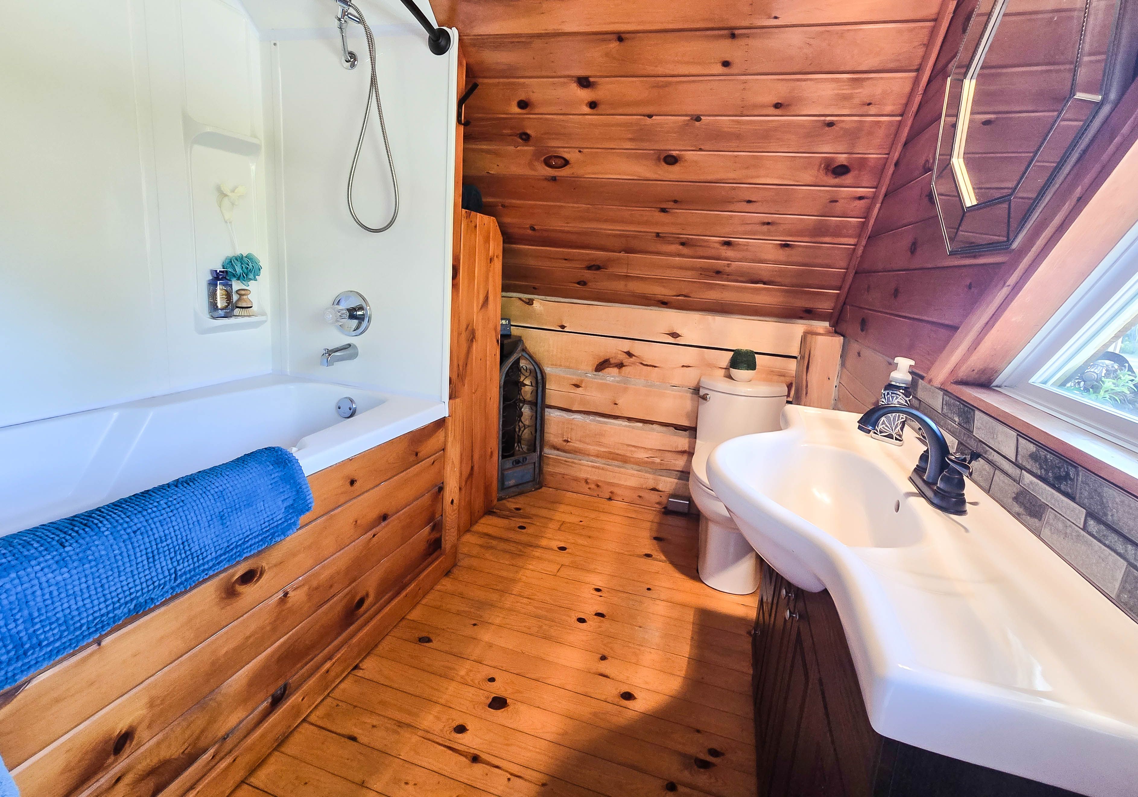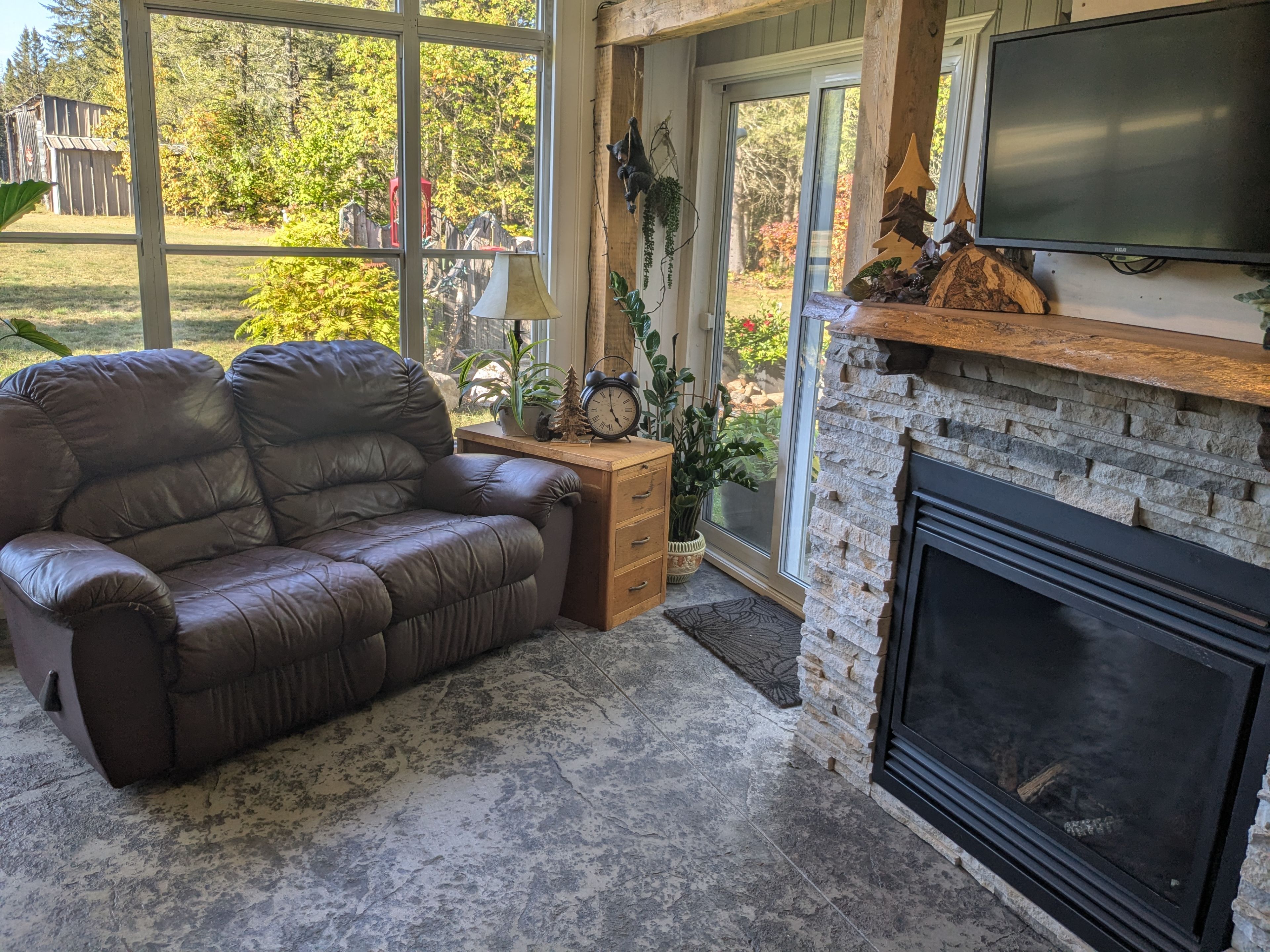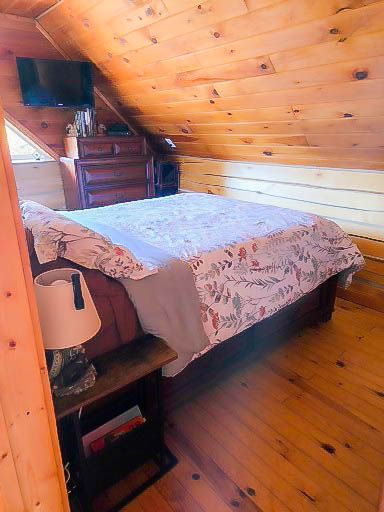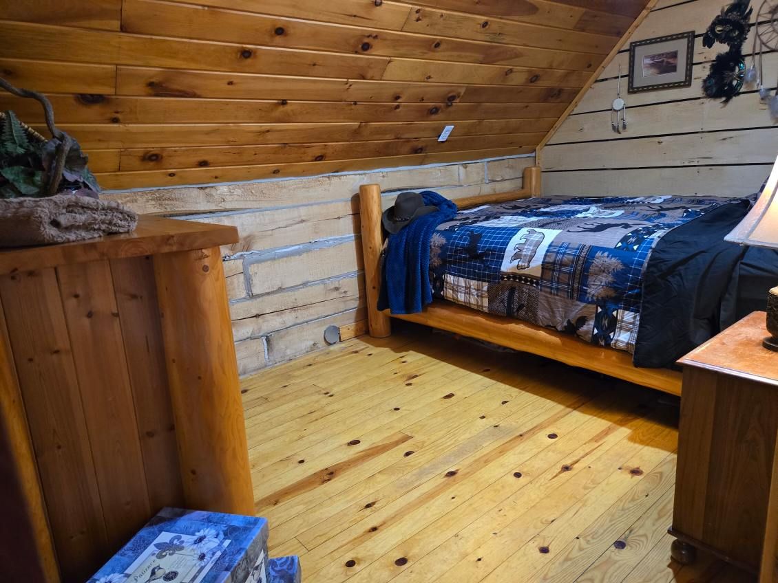 Charming log home privately situated on over 62 acres with trails to call your own! Beautiful pond with sand beach so you can camp at your own oasis. Romantic tree lined driveway leads you to this perfect setting! Custom log home with metal roof + attached covered patio + carport/storage + attached garage/workshop! Impressive main floor country kitchen with custom cabinetry open to inviting livingroom with bright log ambiance & romantic propane fireplace. Main floor family room/bedroom also has beautiful propane fireplace with 'live edge" mantel for cozy winter evenings. Newer 3 pc bath and separate entrance completes the main floor. Hardwood flo0rs & stamped concrete + some laminate. Upstairs there are 2 bedrooms, 4 pc bath with jacuzzi tub, full size laundry with a romeo and juliette balcony overlooking your very own estate. Watch the deer and bull moose wander through to the pond. Exciting wildlife viewing perch! Cute bunkie for extra guests + second cabin in the woods at back of property on the trails. 2 propane fireplaces are main source of heat with electric baseboard as back up. Briggs and stratton hard wired generator. There is a seasonal closed-in sunroom on the front with removable panels. Kearney has dog sled races in feb., snowmobile trails throughout, atv trails throughout, beaches all around, algonquin park at your doorstep, ideally located on a paved year round road with high speed internet, crown land for hunting, restaurant, convenience store, lcbo & bar in town along with a community center. Perfect package for you and your family! Flexible closing! Come take a look! Fall colours have started. Beautiful scenic drive to this property.