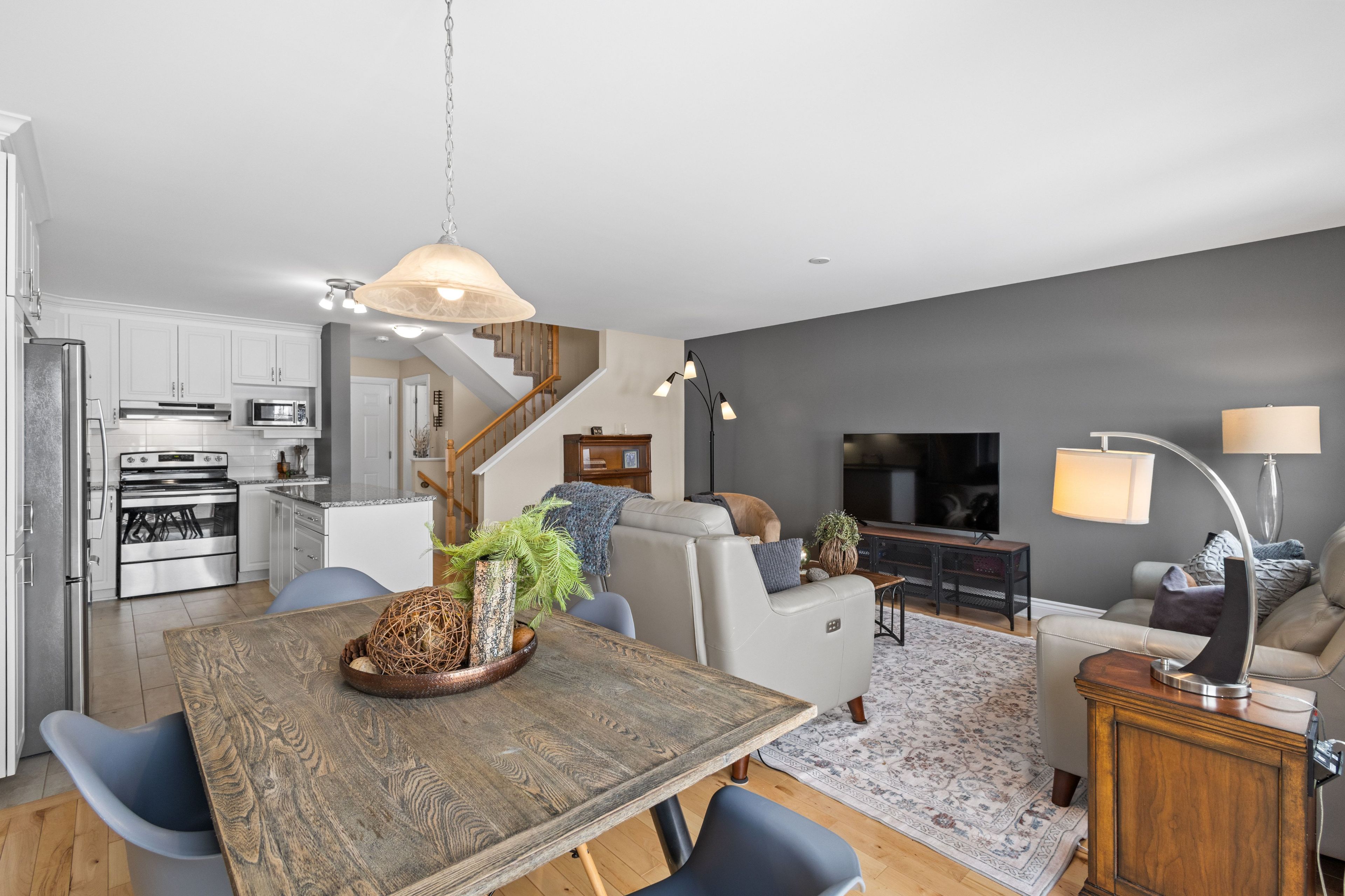 • Open-concept main floor with hardwood and ceramic tile for easy living.