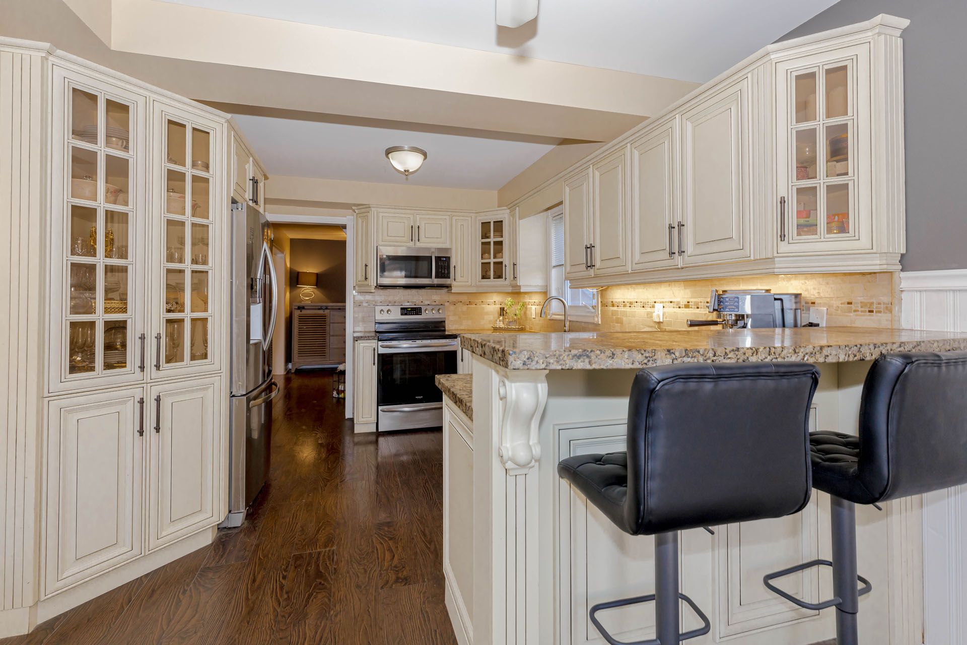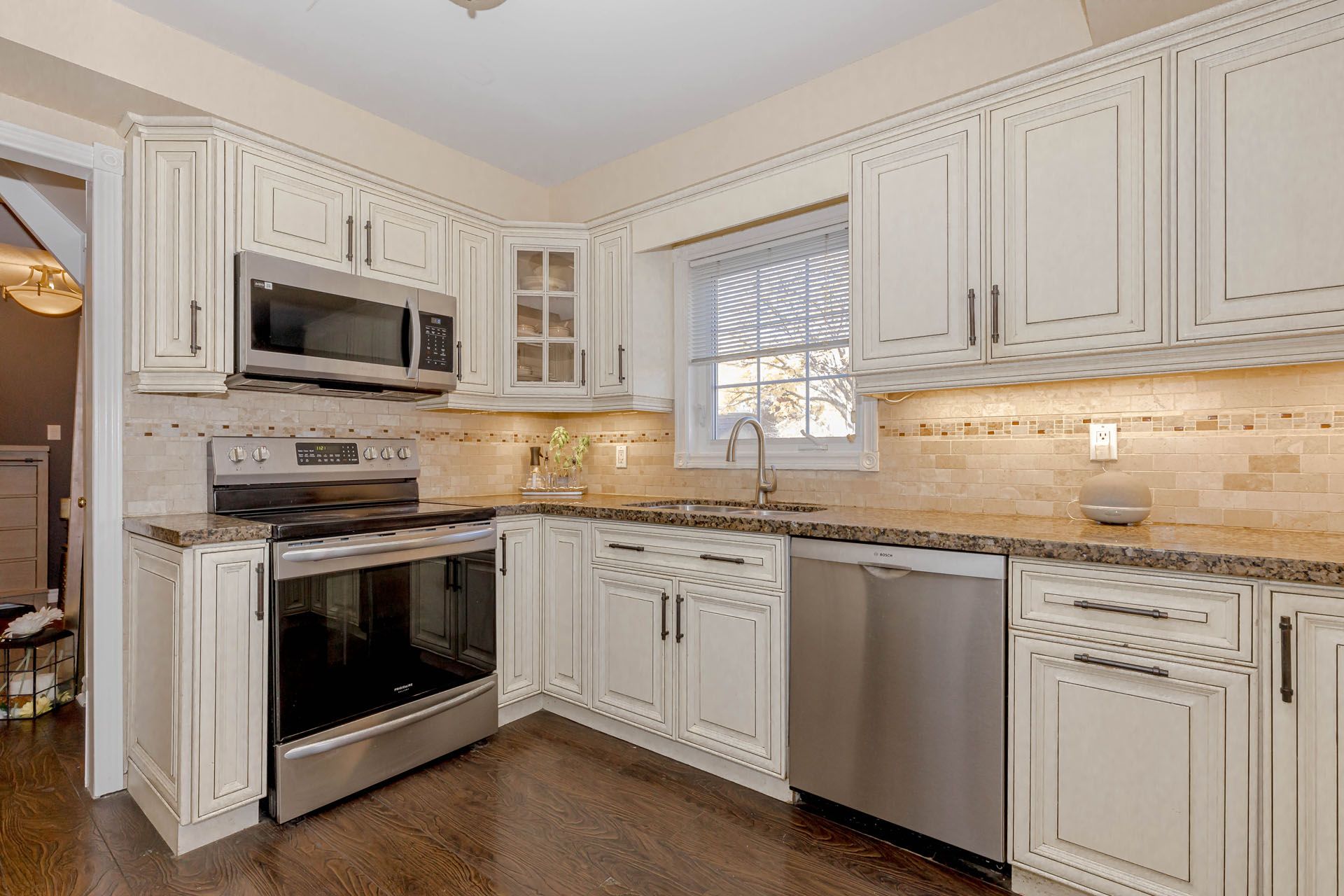 • Modern kitchen boasts granite countertops and hardwood floors throughout.