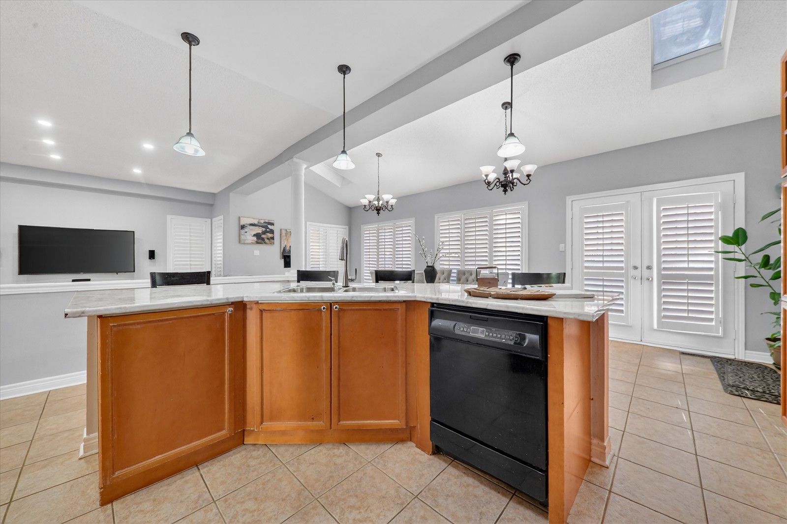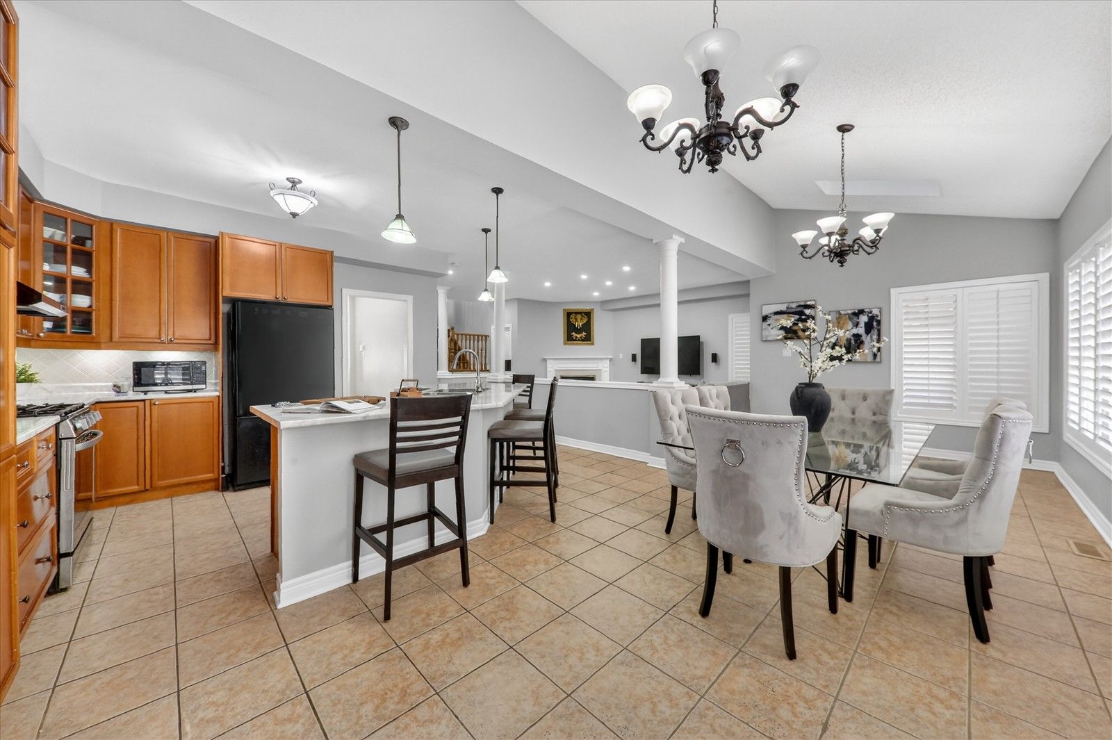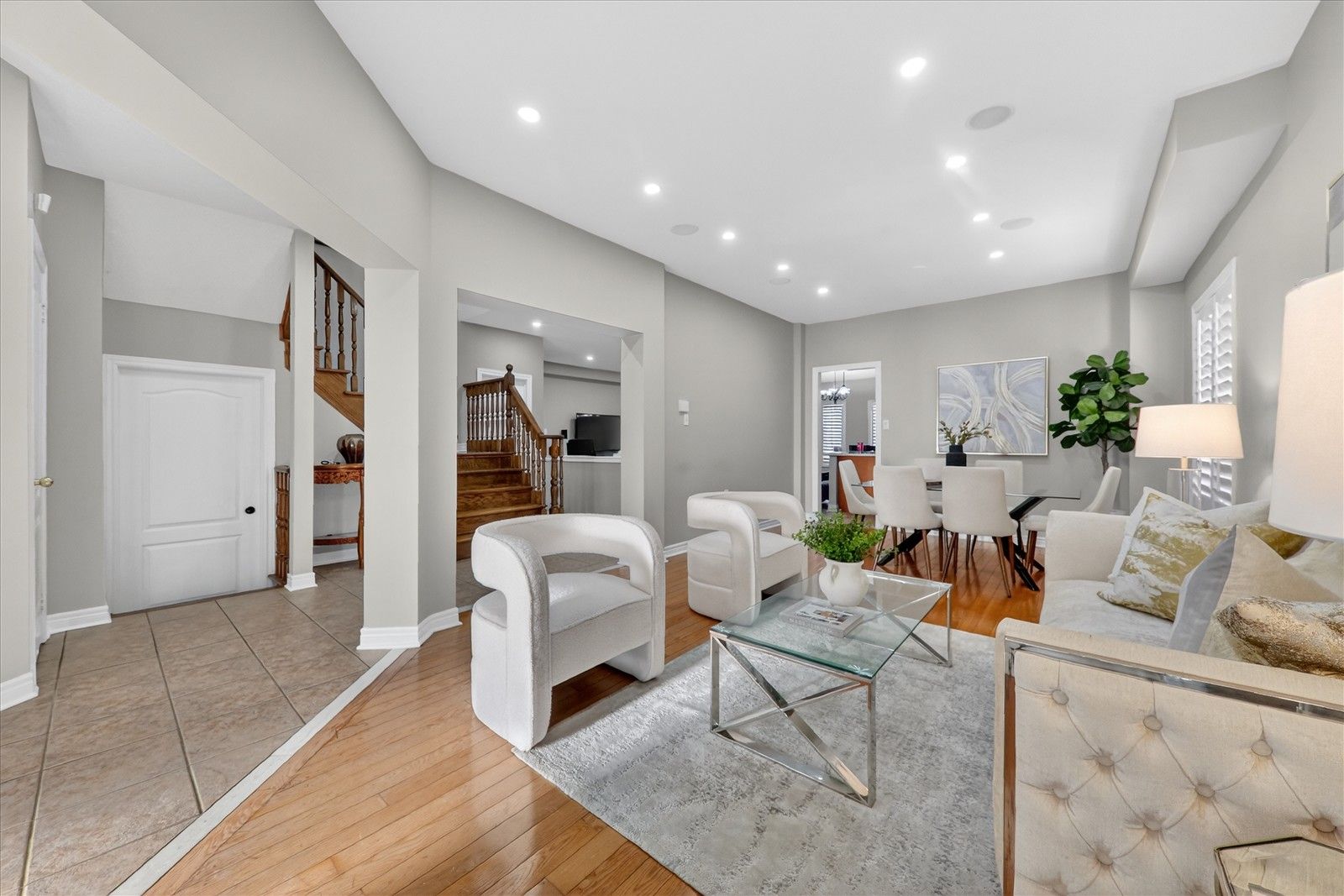 Welcome to an impressive, sun-filled 2-storey detached home on a beautifully landscaped 40' x 110' fully fenced lot in the heart of churchill meadows. Offering approximately 2,780 sq ft above grade plus a beautifully finished lower level, this residence is thoughtfully updated with quality finishes and a functional open-concept plan. Enjoy generous principal rooms with hardwood flooring, a warm gas fireplace in the family room, and a bright eat-in kitchen with ceramic floors and a gas stove-perfect for everyday living and entertaining. Step into the airy breakfast area with cathedral ceiling and walkout to the patio, plus a charming solarium featuring a cathedral ceiling and skylight-your ideal spot for morning coffee or a quiet read. Upstairs, unwind in the spacious primary retreat with 4-pc ensuite and walk-in closet, complemented by three additional bedrooms and family baths. Classic details like wainscoting and chair-rail accents add timeless character. The professionally finished basement adds outstanding flexibility with an open-concept living/dining area, a full kitchen with stainless steel appliances, and two additional bedrooms--ideal for extended family, guests, a nanny suite, or future income potential. Outdoors, enjoy the tumble-stone interlock patio and walkway, summer-ready fenced yard, and ample parking for 5 cars (including an attached double garage). Comfort features include central air and efficient forced-air gas heating. Set near winston churchill blvd/eglinton ave w, you're close to excellent schools (including churchill meadows public school and st. Joan of arc catholic secondary school), parks, and the churchill meadows community centre and mattamy sports park. Spend weekends shopping and dining at erin mills town centre, and commute with ease via miway and quick connections to major highways. Move in and enjoy! Roof 2023