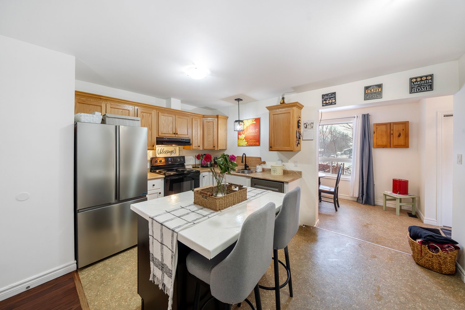 Welcome to 3367 azcona avenue in cumberland beach, a beautifully maintained semi-detached home situated on a generous 50 x 144 ft lot surrounded by mature trees, flowering hedges, and thoughtfully landscaped gardens. Offering approximately 1,700 sq ft of finished living space, this property provides exceptional value just 7. 5 km north of orillia with convenient access to highway 11. The bright open concept interior features hardwood flooring in the living room, updated laminate throughout the upper level, and upgraded lighting across the home. The spacious eat in kitchen showcases solid oak cabinetry and quality finishes, creating a warm and functional space for everyday living. Both bathrooms have been tastefully updated with ceramic flooring, modern cabinetry, and updated fixtures. The fully finished basement adds valuable living space and features a walk-out to the lower deck and private backyard, offering excellent potential for extended family living or entertaining. Exterior improvements include recently stained decks, stairs, and railings, replaced front and side entry stairs, and completed backyard landscaping with flower gardens and shrubbery. Additional highlights include a new furnace and central air installed three years ago, a garage with ample driveway parking, a large insulated shop with hydro including its own electrical panel and outlets, a wood shed, and an additional storage shed beside the garage. The side entrance combined with the walk-out basement provides added flexibility and future potential. Located within walking distance to school, a convenience store, and lake access, this home is ideal for first-time buyers or those seeking a well-maintained property in a desirable lakeside community. A fantastic opportunity in cumberland beach.