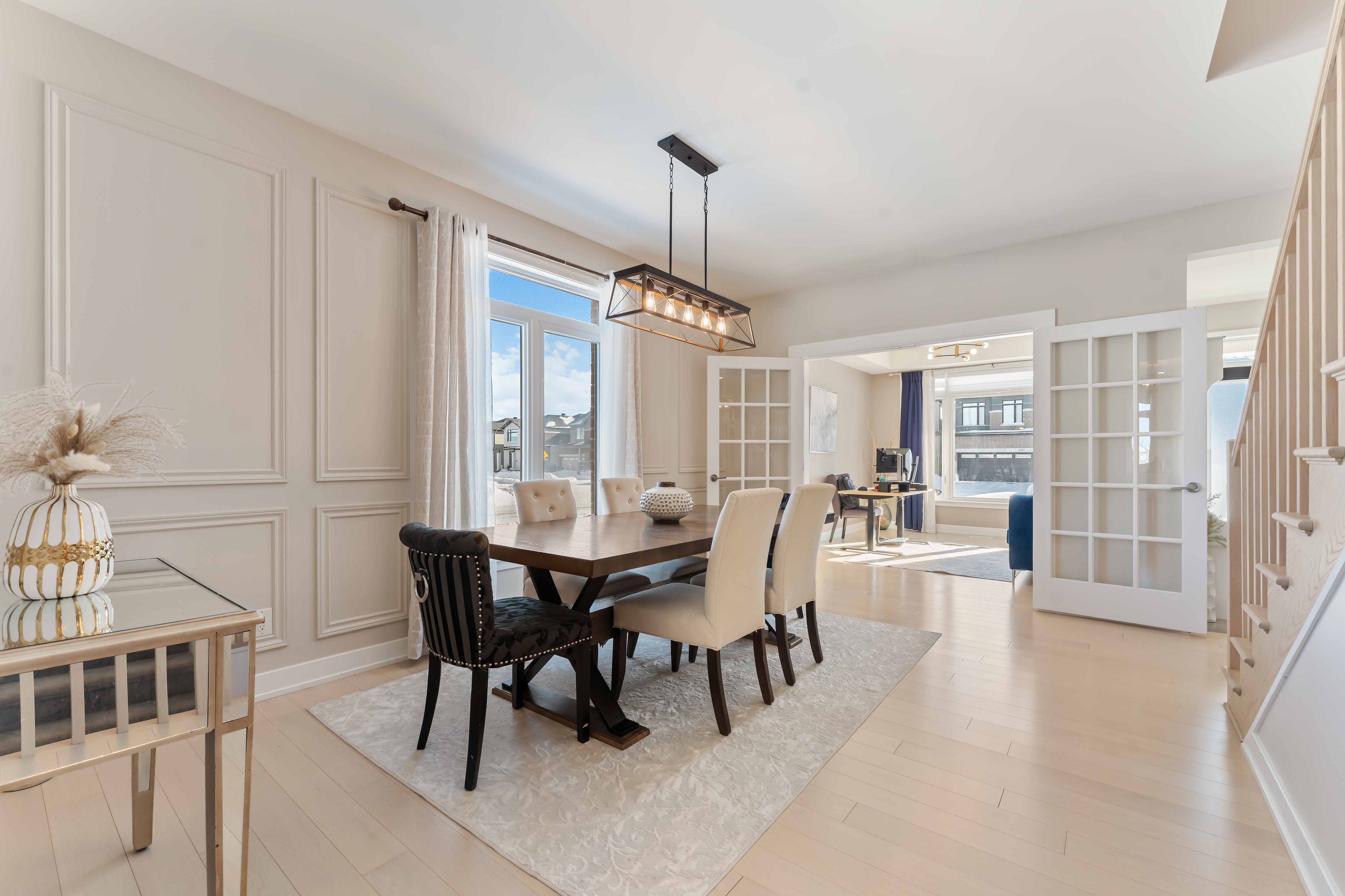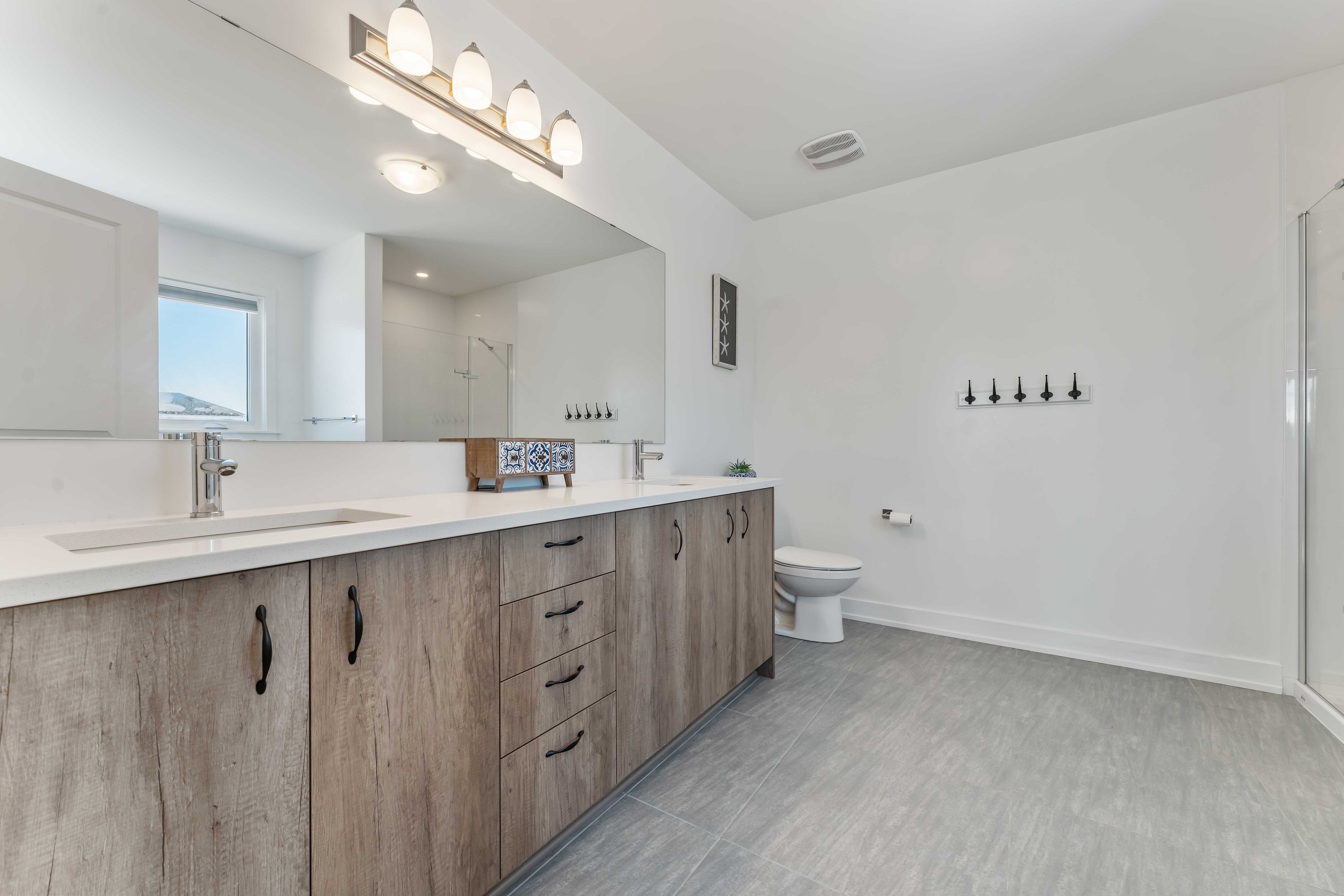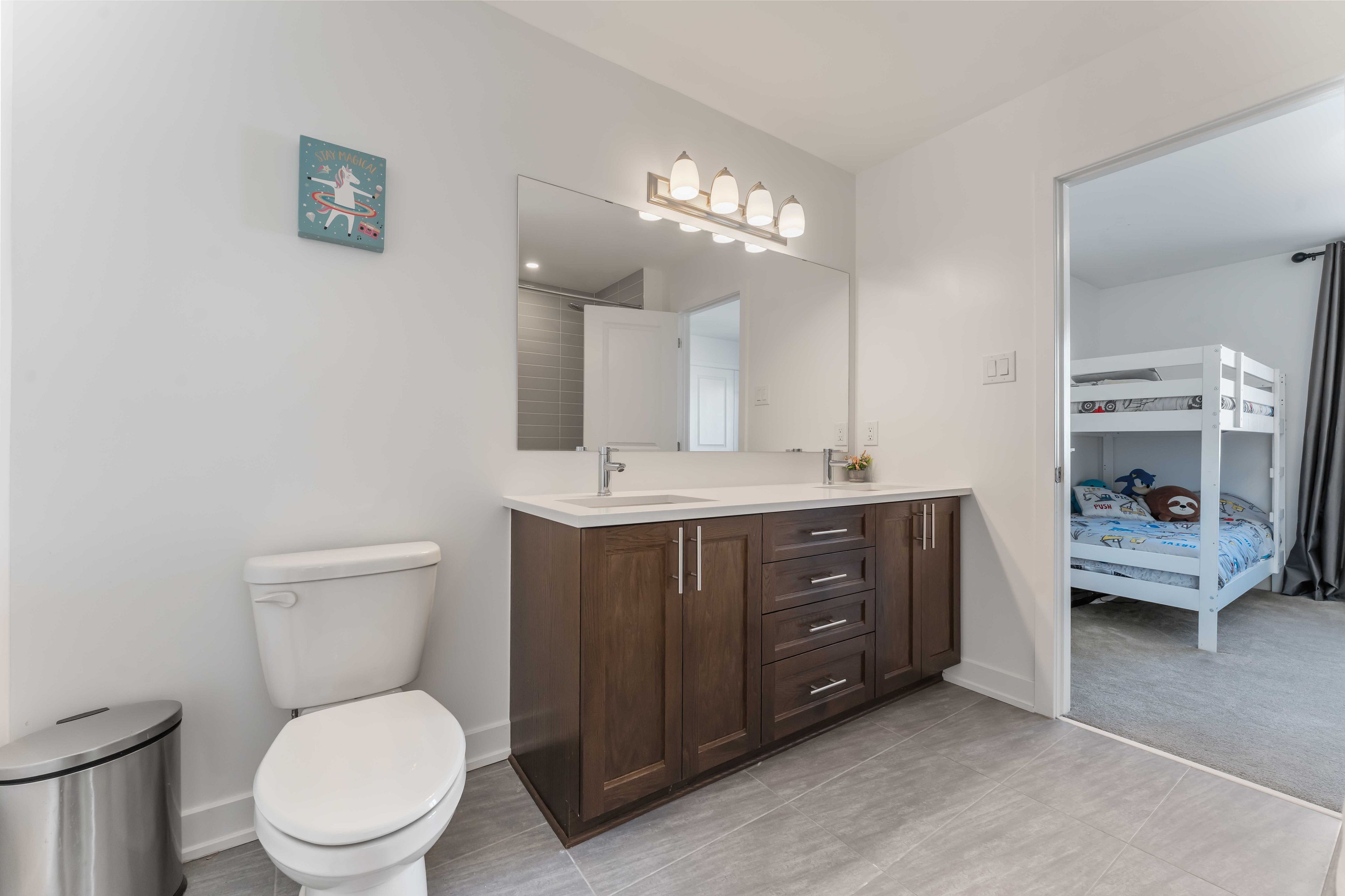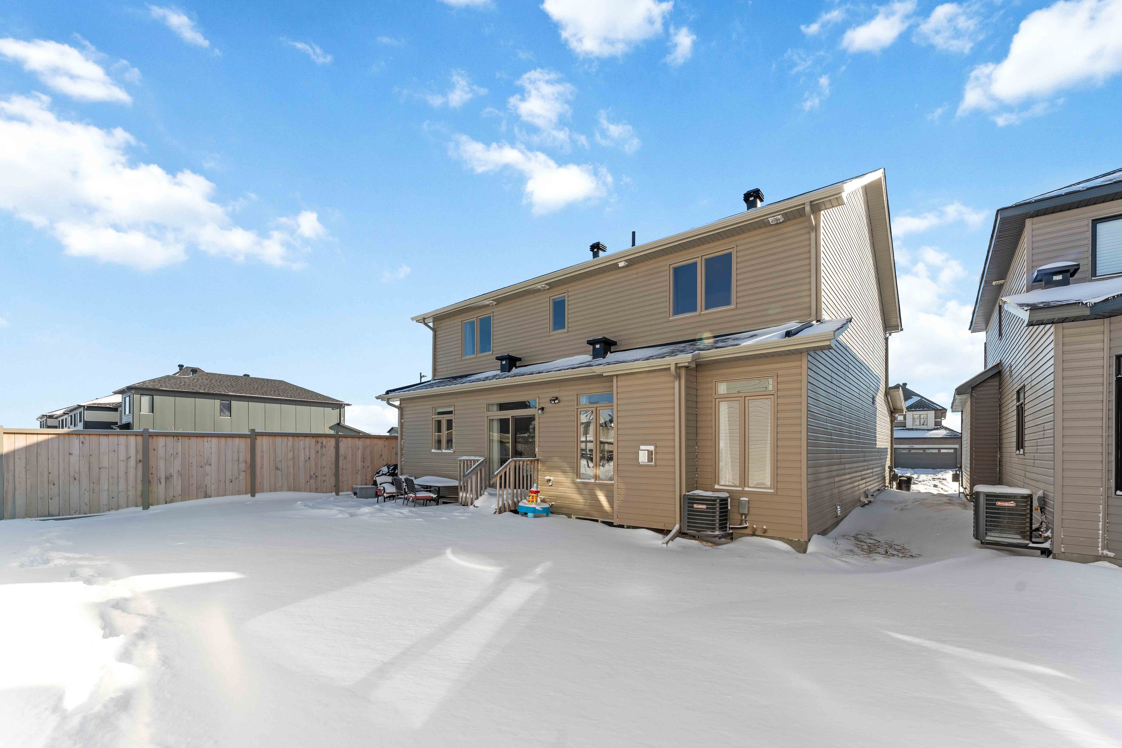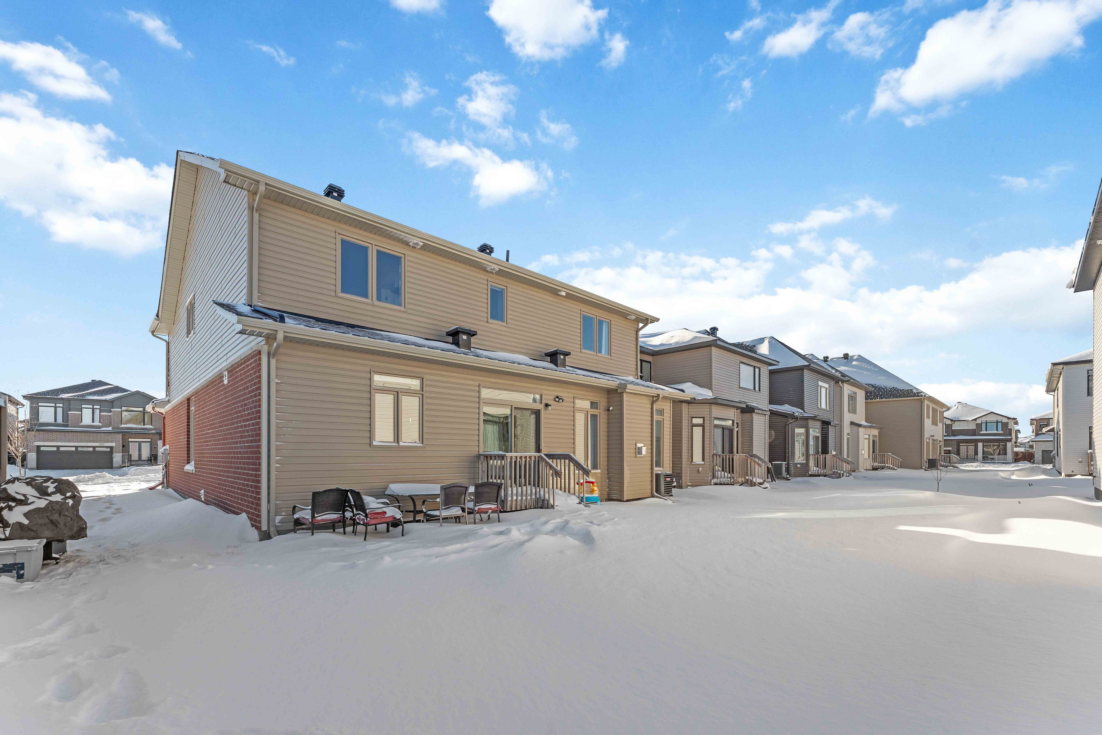 Welcome to this exceptional detached 4+1 bedroom, 5 bathroom home situated on a premium 45 foot wide corner lot in the heart of findlay creek. Offering over 3,500 sq. Ft. Of beautifully designed living space and an abundance of upgrades throughout, this home is ideally located within walking distance to parks, basketball courts, hockey rink, and tennis courts-perfect for active families. The main level boasts 9-foot ceilings, an open-concept layout, and rich hardwood flooring throughout, complemented by hardwood stairs leading to the second level. Elegant living and dining rooms provide ideal spaces for entertaining, while the spacious family room features a cozy gas fireplace. The stunning, fully upgraded kitchen is designed to impress, showcasing custom cabinetry, a custom kitchen island with quartz countertops, a gas stove, and stainless steel appliances, all with seamless flow into the main living areas. A large mudroom adds everyday convenience and functionality. The bright second level offers a spacious primary bedroom complete with a luxurious 5-piece ensuite bathroom. Two well-appointed guest bedrooms share a convenient jack-and-jill bathroom, while the fourth bedroom enjoys its own private ensuite-ideal for guests or multigenerational living. All bathroom countertops throughout the home have been upgraded to quartz, adding a cohesive and modern finish. The fully finished basement provides additional living space with a generous recreation room perfect for kids to play, a fifth bedroom, a 3-piece bathroom, and an abundance of storage space. With thoughtfully designed living areas across all levels, quality upgrades throughout, and an unbeatable location, this home is a rare opportunity in one of ottawa's most sought-after communities.