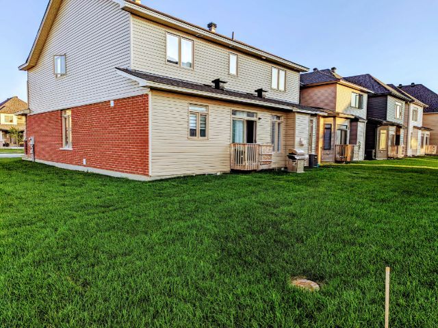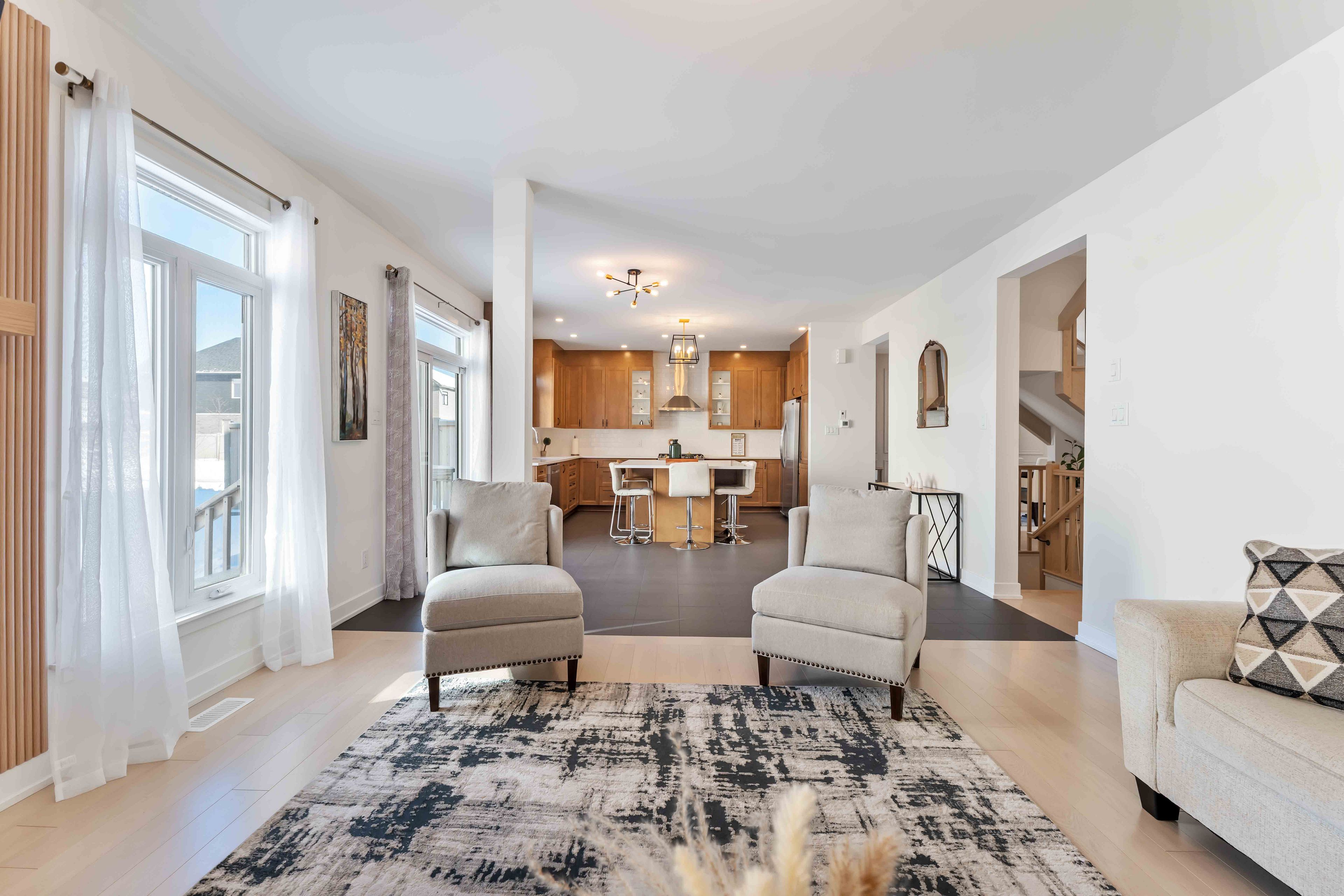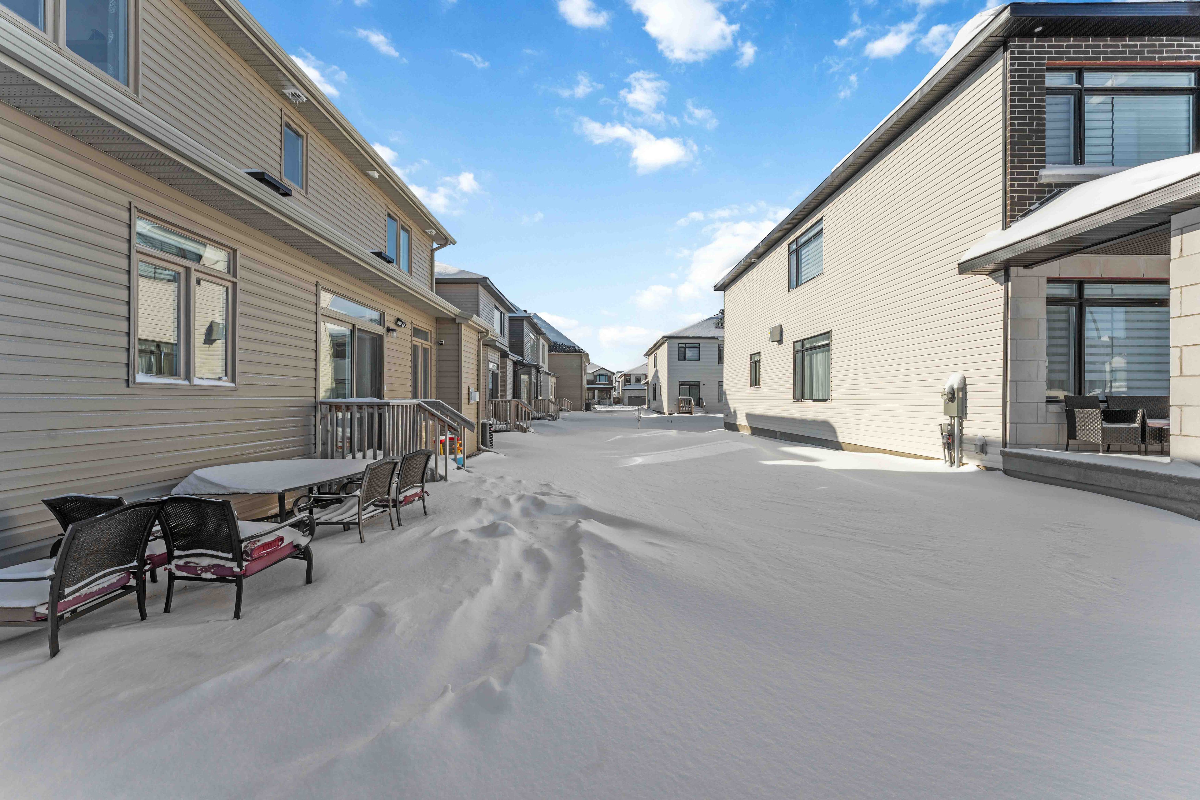 Welcome to this exceptional detached 4+1 bedroom, 5 bathroom home situated on a premium 45 foot wide corner lot in the heart of findlay creek. Offering over 3,500 sq. Ft. Of beautifully designed living space and an abundance of upgrades throughout, this home is ideally located within walking distance to parks, basketball courts, hockey rink, and tennis courts-perfect for active families. The main level boasts 9-foot ceilings, an open-concept layout, and rich hardwood flooring throughout, complemented by hardwood stairs leading to the second level. Elegant living and dining rooms provide ideal spaces for entertaining, while the spacious family room features a cozy gas fireplace. The stunning, fully upgraded kitchen is designed to impress, showcasing custom cabinetry, a custom kitchen island with quartz countertops, a gas stove, and stainless steel appliances, all with seamless flow into the main living areas. A large mudroom adds everyday convenience and functionality. The bright second level offers a spacious primary bedroom complete with a luxurious 5-piece ensuite bathroom. Two well-appointed guest bedrooms share a convenient jack-and-jill bathroom, while the fourth bedroom enjoys its own private ensuite-ideal for guests or multigenerational living. All bathroom countertops throughout the home have been upgraded to quartz, adding a cohesive and modern finish. The fully finished basement provides additional living space with a generous recreation room perfect for kids to play, a fifth bedroom, a 3-piece bathroom, and an abundance of storage space. With thoughtfully designed living areas across all levels, quality upgrades throughout, and an unbeatable location, this home is a rare opportunity in one of ottawa's most sought-after communities.