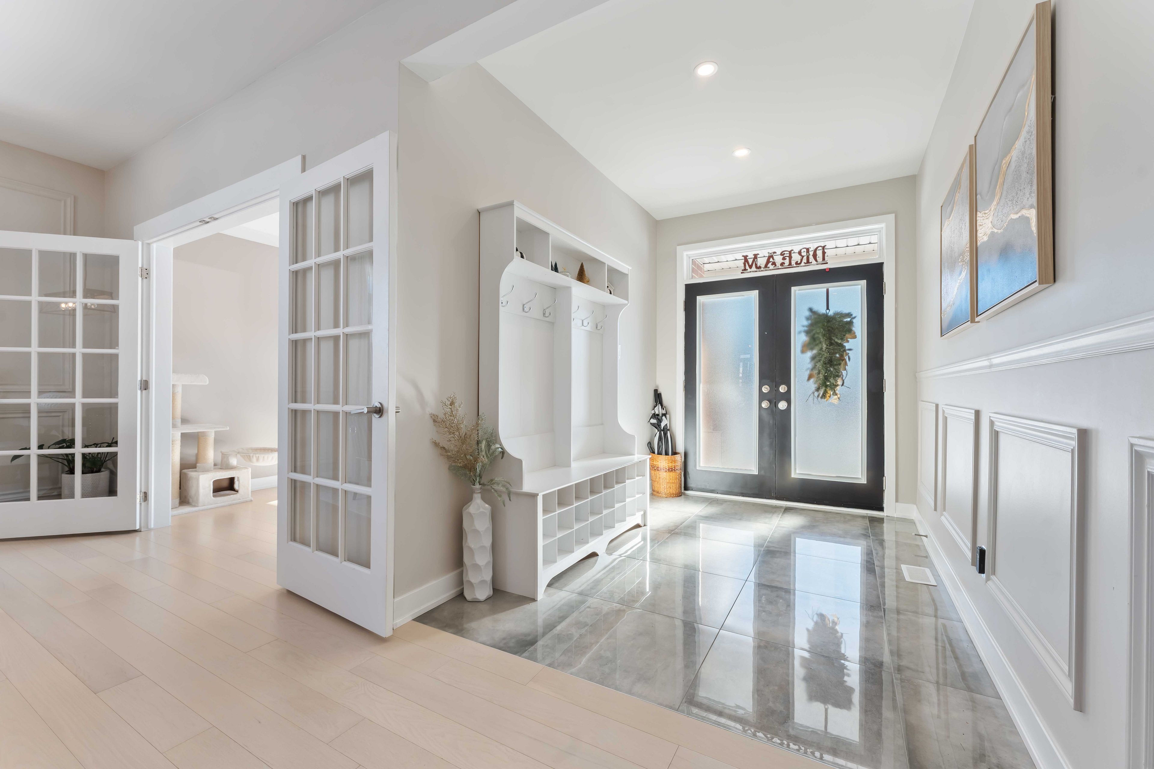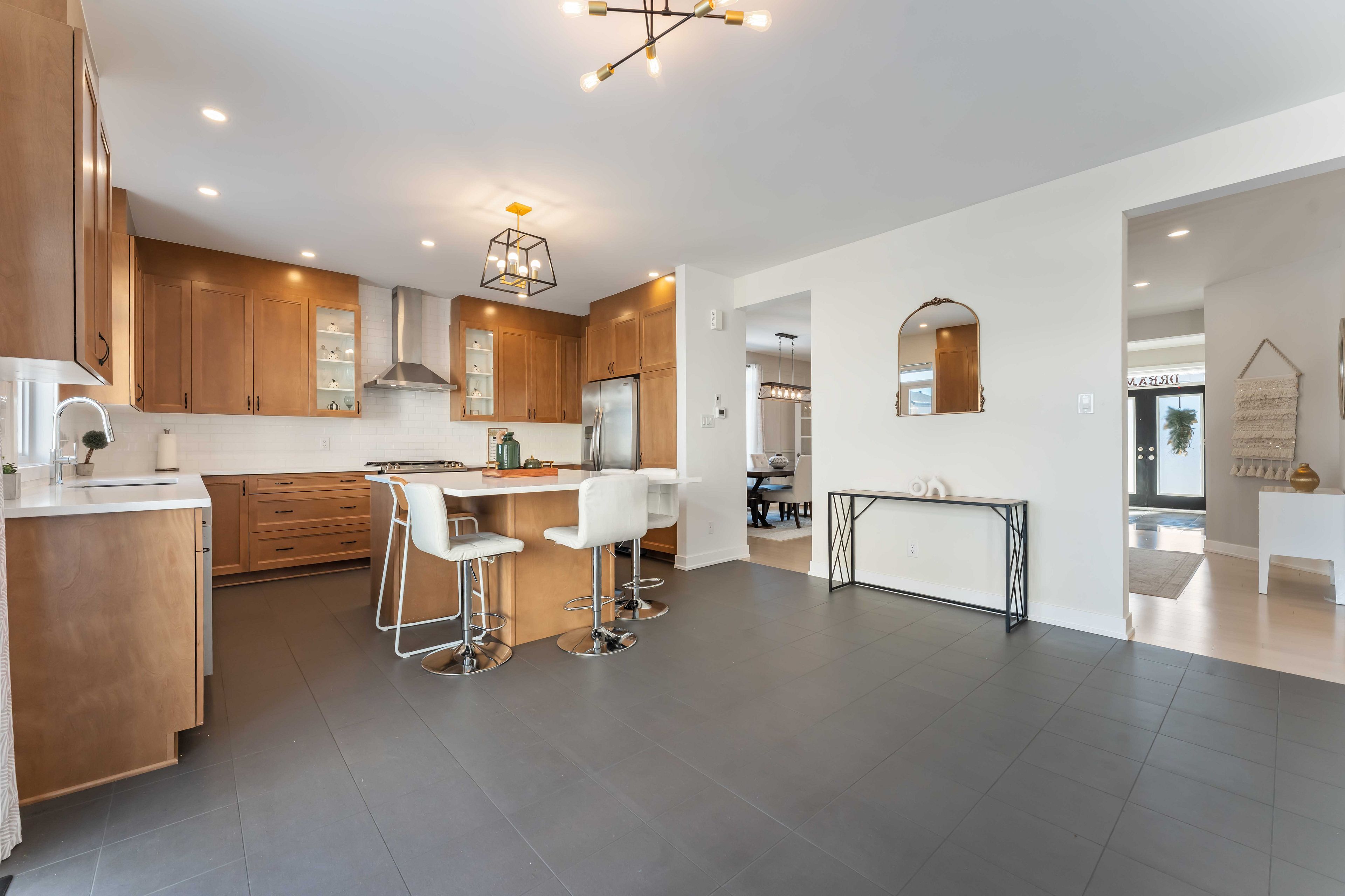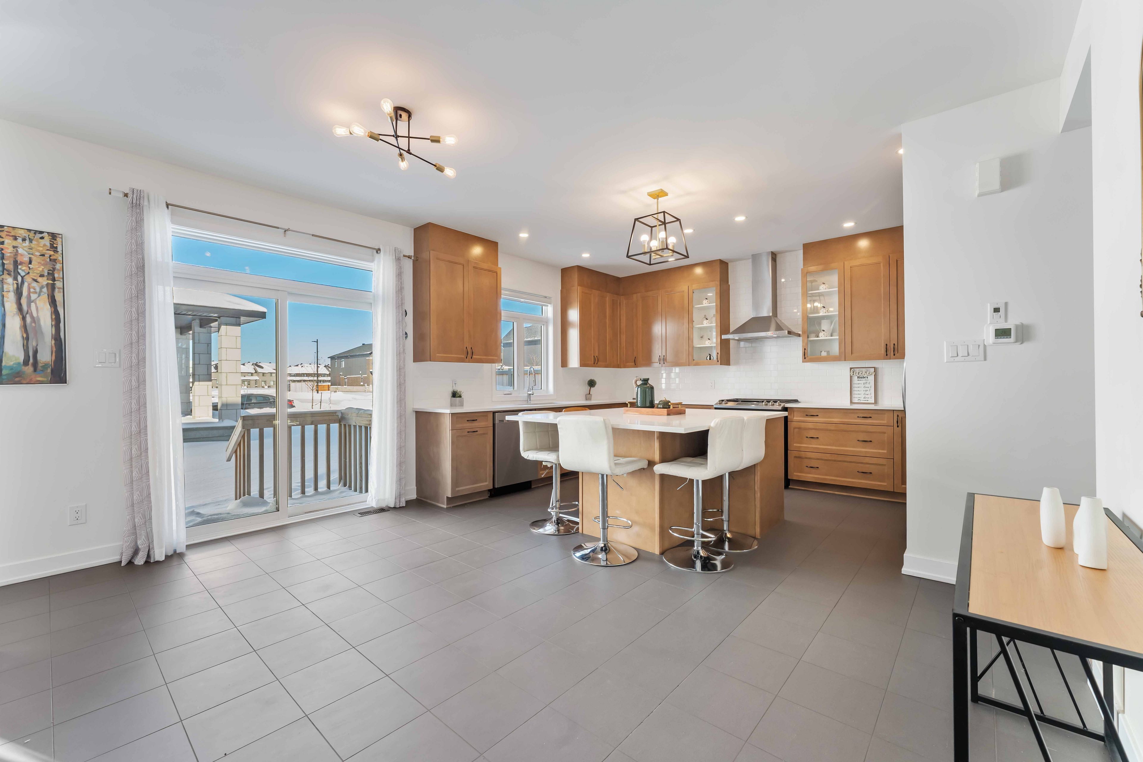 Welcome to this exceptional detached 4+1 bedroom, 5 bathroom home situated on a premium 45 foot wide corner lot in the heart of findlay creek. Offering over 3,500 sq. Ft. Of beautifully designed living space and an abundance of upgrades throughout, this home is ideally located within walking distance to parks, basketball courts, hockey rink, and tennis courts-perfect for active families. The main level boasts 9-foot ceilings, an open-concept layout, and rich hardwood flooring throughout, complemented by hardwood stairs leading to the second level. Elegant living and dining rooms provide ideal spaces for entertaining, while the spacious family room features a cozy gas fireplace. The stunning, fully upgraded kitchen is designed to impress, showcasing custom cabinetry, a custom kitchen island with quartz countertops, a gas stove, and stainless steel appliances, all with seamless flow into the main living areas. A large mudroom adds everyday convenience and functionality. The bright second level offers a spacious primary bedroom complete with a luxurious 5-piece ensuite bathroom. Two well-appointed guest bedrooms share a convenient jack-and-jill bathroom, while the fourth bedroom enjoys its own private ensuite-ideal for guests or multigenerational living. All bathroom countertops throughout the home have been upgraded to quartz, adding a cohesive and modern finish. The fully finished basement provides additional living space with a generous recreation room perfect for kids to play, a fifth bedroom, a 3-piece bathroom, and an abundance of storage space. With thoughtfully designed living areas across all levels, quality upgrades throughout, and an unbeatable location, this home is a rare opportunity in one of ottawa's most sought-after communities.