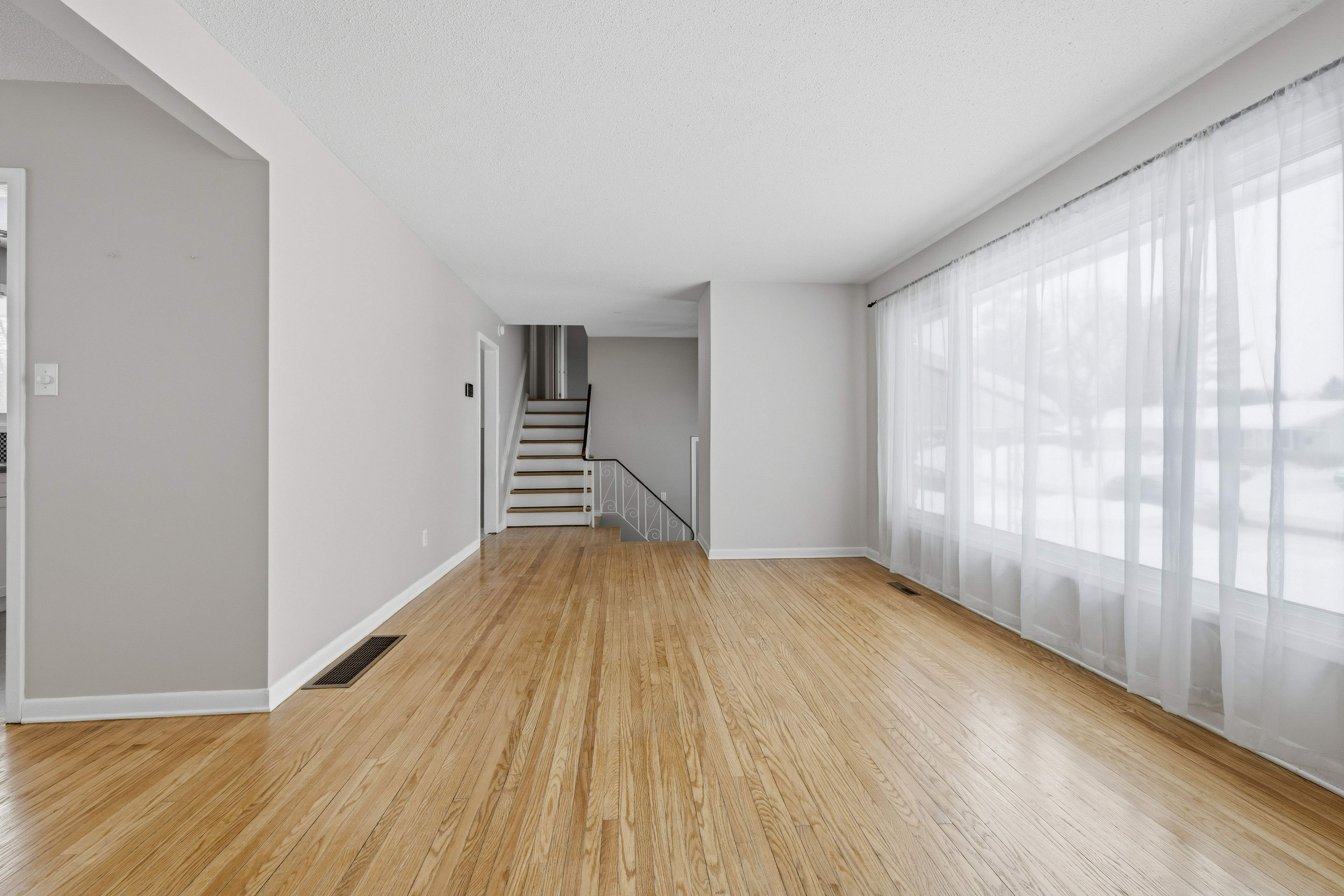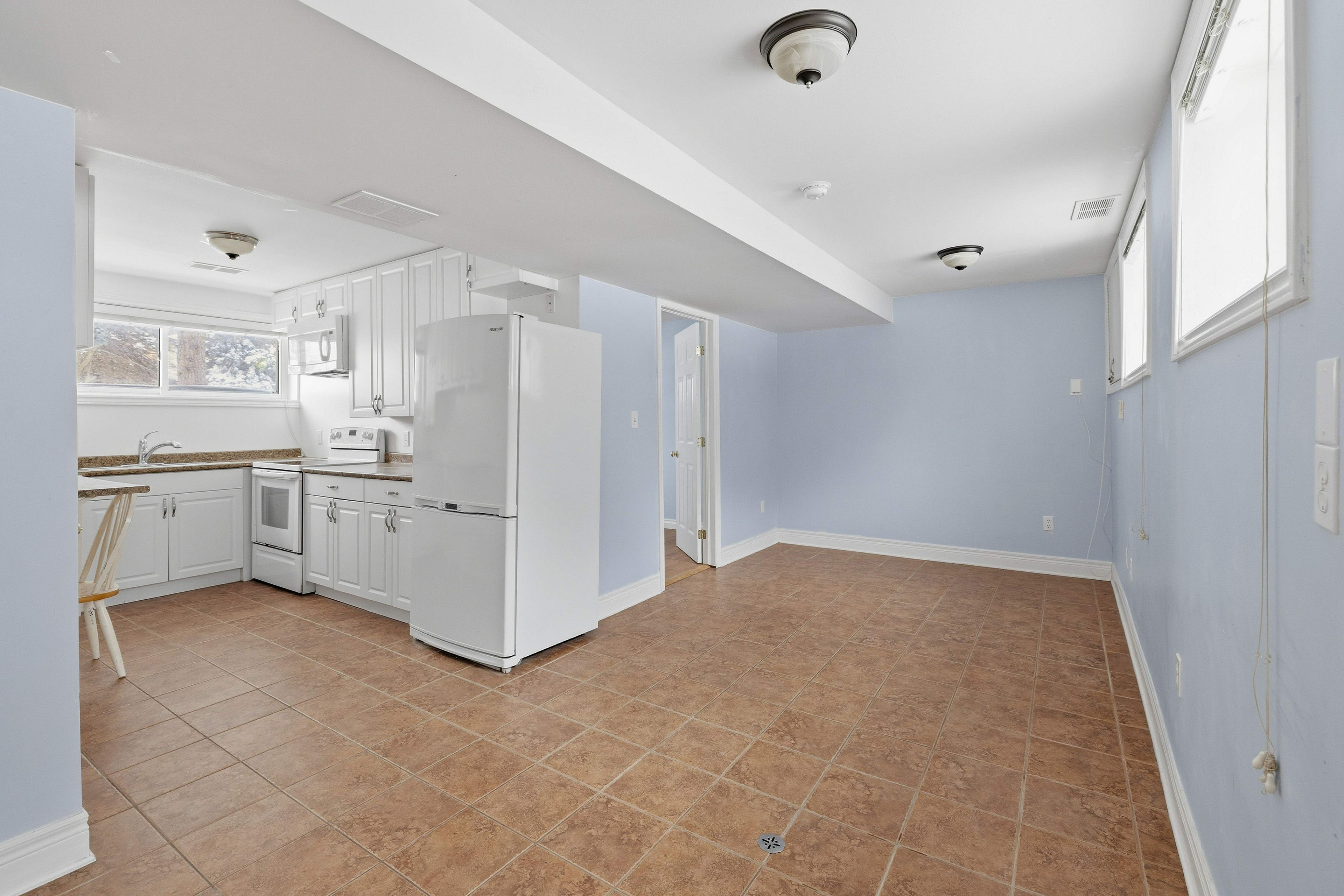 • Spacious living with a large kitchen, living room, and family room.