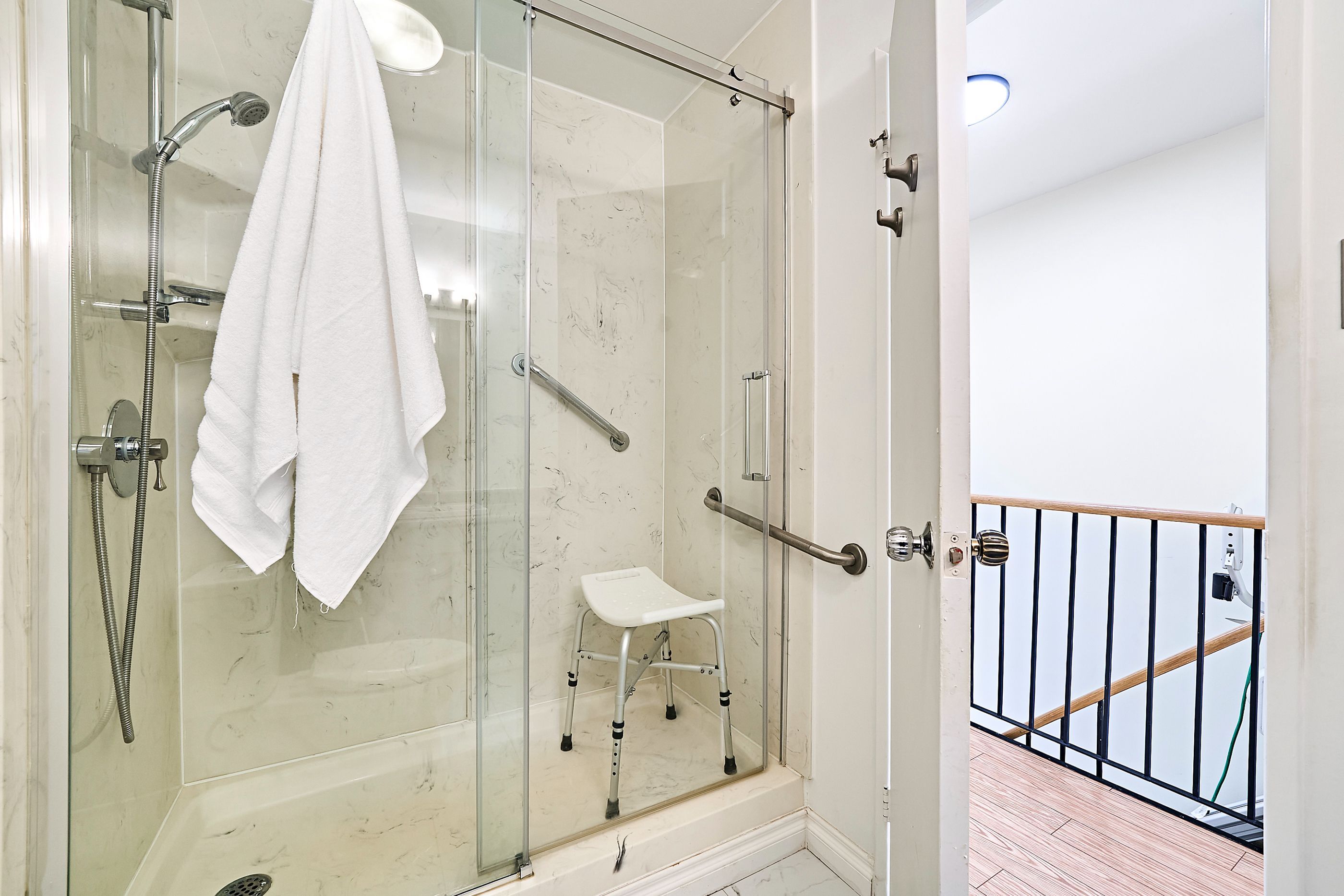 Time for a change ? Want to keep your furniture ? This 3 bedroom 1683 sq ft, sun filled corner suite with 3 bathrooms (1 ensuite) and full size en-suite laundry w/sink is your answer ! A spacious balcony w/composite decking off the eat-in kitchen is perfect for morning coffees. The main level boasts 837 sq ft with a very large living room and dining room (474 sq ft ) is perfect for family gatherings around the fireplace ! The upper level boasts 846 sq ft with a primary bedroom features wicc and a 2pce en-suite plus sliding doors to a juliette balcony. The 4 pce bath on this level features in-floor heating, 2 other spacious bedrooms on this level also with sliding doors and juliette balconies. Loads of closets. Private access door to 5th floor and rooftop lounge/sunroom with 2/pce bath (think golden hour sunset cocktail party) amenities include: gym/sauna and shower, party/gathering room, equipment workshop, secure underground parking space (16 steps from doorway), car wash area & convenient storage locker, bicycle and golf club (walk to oshawa golf and curling club) storage room. Maintenance fees include all utilities (heating and cooling, hydro, water and sewer, building insurance, on-site superintendent), convenient location, steps to lake ridge hospital, transit, alexandra park, historic parkwood estate. This is a gem of a residence with a sense of community and not to be missed. *** click virtual tour *** for floorplans and more