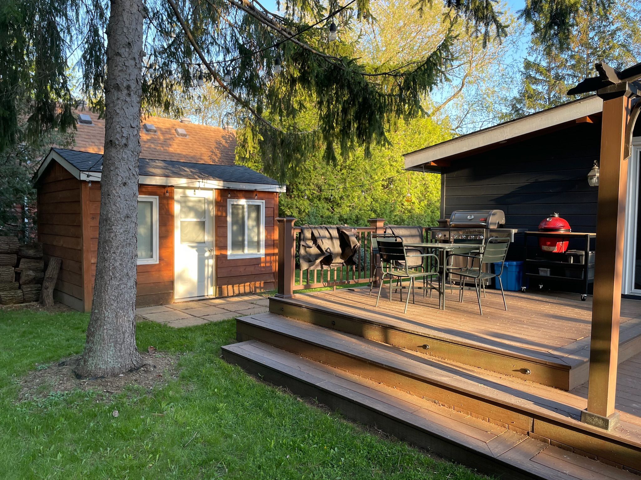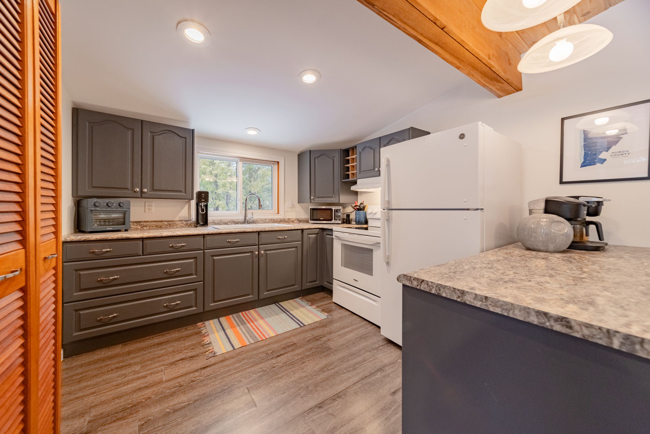 Welcome to this beautifully maintained 3-bedroom, 1-bath cottage offering the perfect blend of comfort, privacy, and lakeside living. Renovated in 2019 and lovingly cared for since, the home is open and bright with abundant natural light throughout. Thoughtful cosmetic updates and many furnishings are included, making this a true turnkey escape. Surrounded by mature trees, the property offers a peaceful, secluded setting with meticulously enhanced landscaping completed over recent years. Expansive composite decks at both the front and back create ideal spaces for relaxing, entertaining, or enjoying warm summer evenings. An outdoor shower adds convenience after a day at the beach, while newly refreshed access stairs just steps away lead to the stunning shoreline of lake huron. Known for its breathtaking sunsets, sandy beaches, and refreshing waters, the lake huron shoreline offers a relaxed coastal lifestyle with nearby communities featuring charming shops, dining, marinas, trails, and year-round recreational opportunities. Whether you're seeking a serene personal retreat or a welcoming place to gather with family, this property delivers an exceptional lakeside experience.