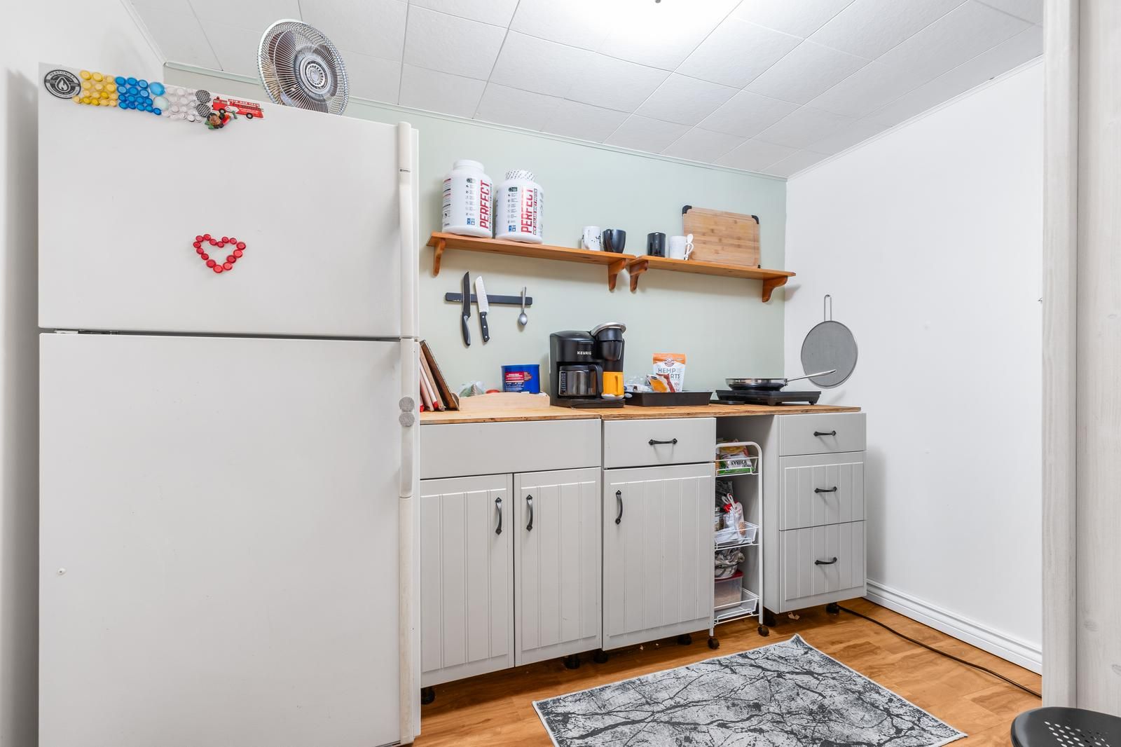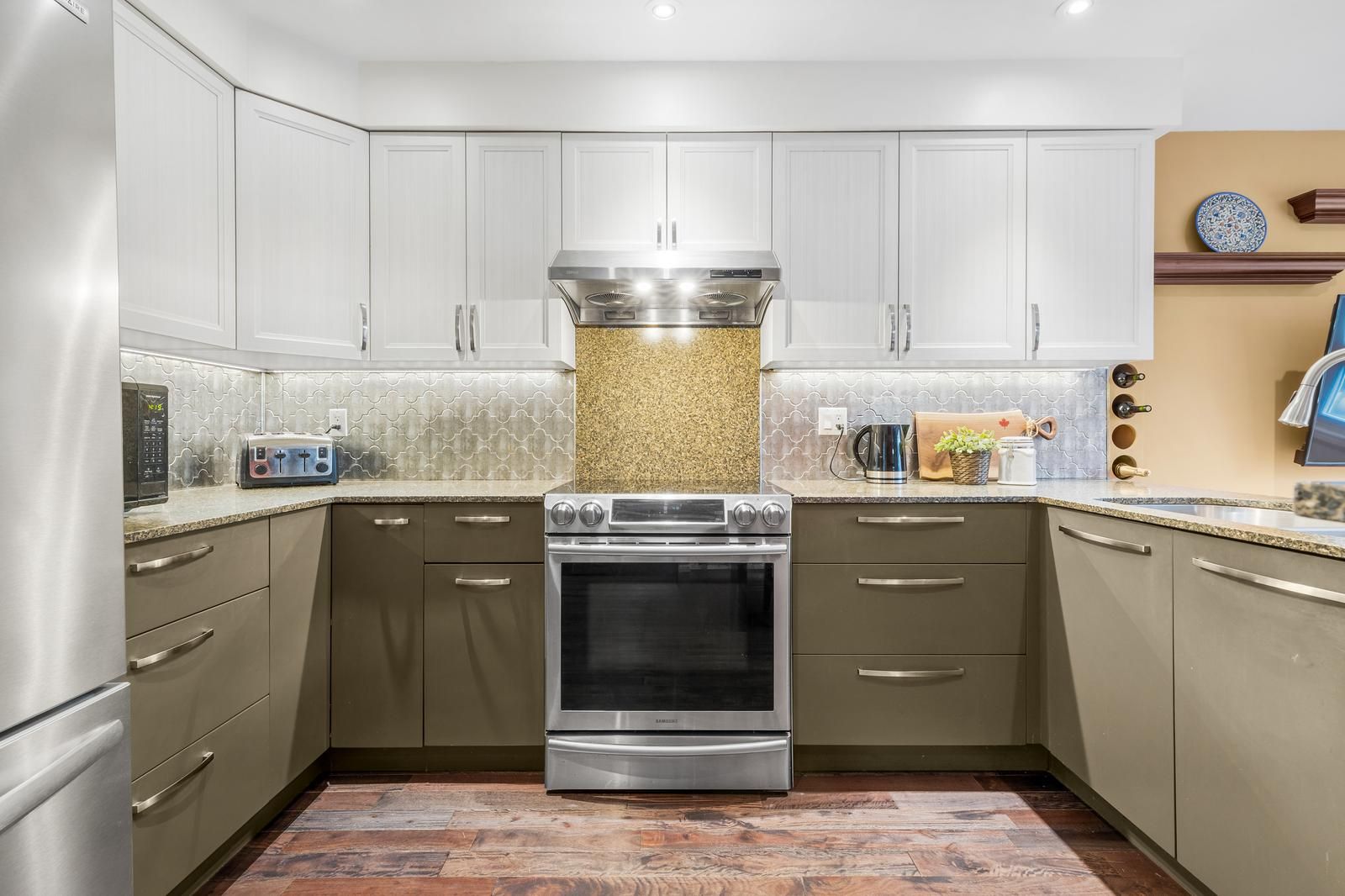 • Finished basement with kitchenette and bathroom offers extra living space.