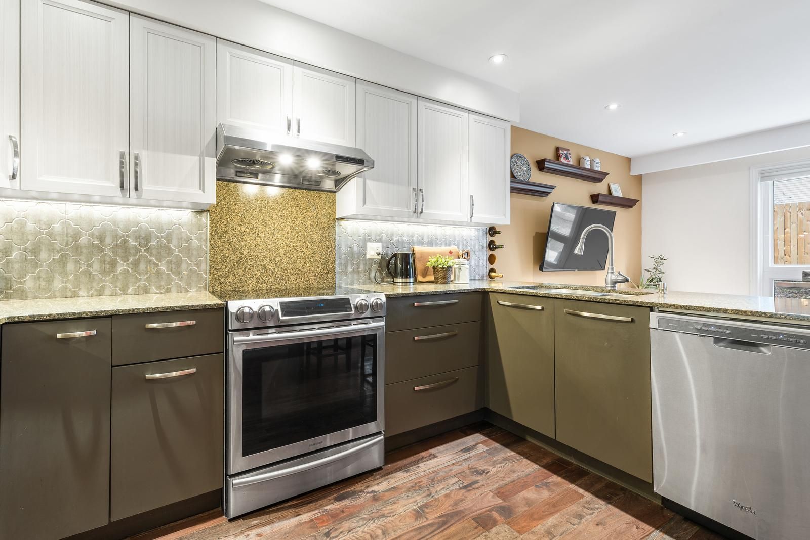 • Renovated kitchen flows into the family room, perfect for socializing.
