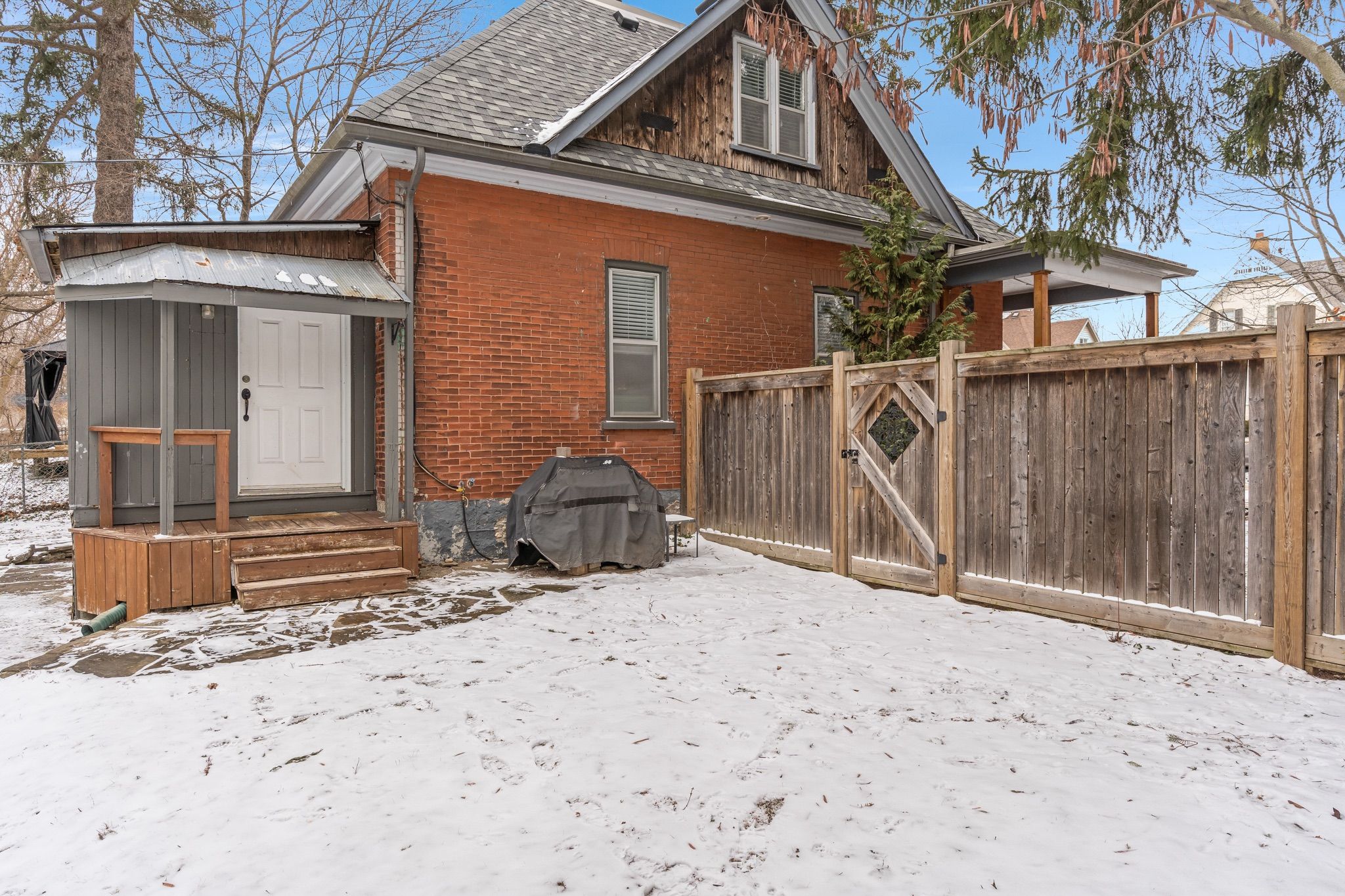 • Private fenced yard with a cedar-clad front porch.