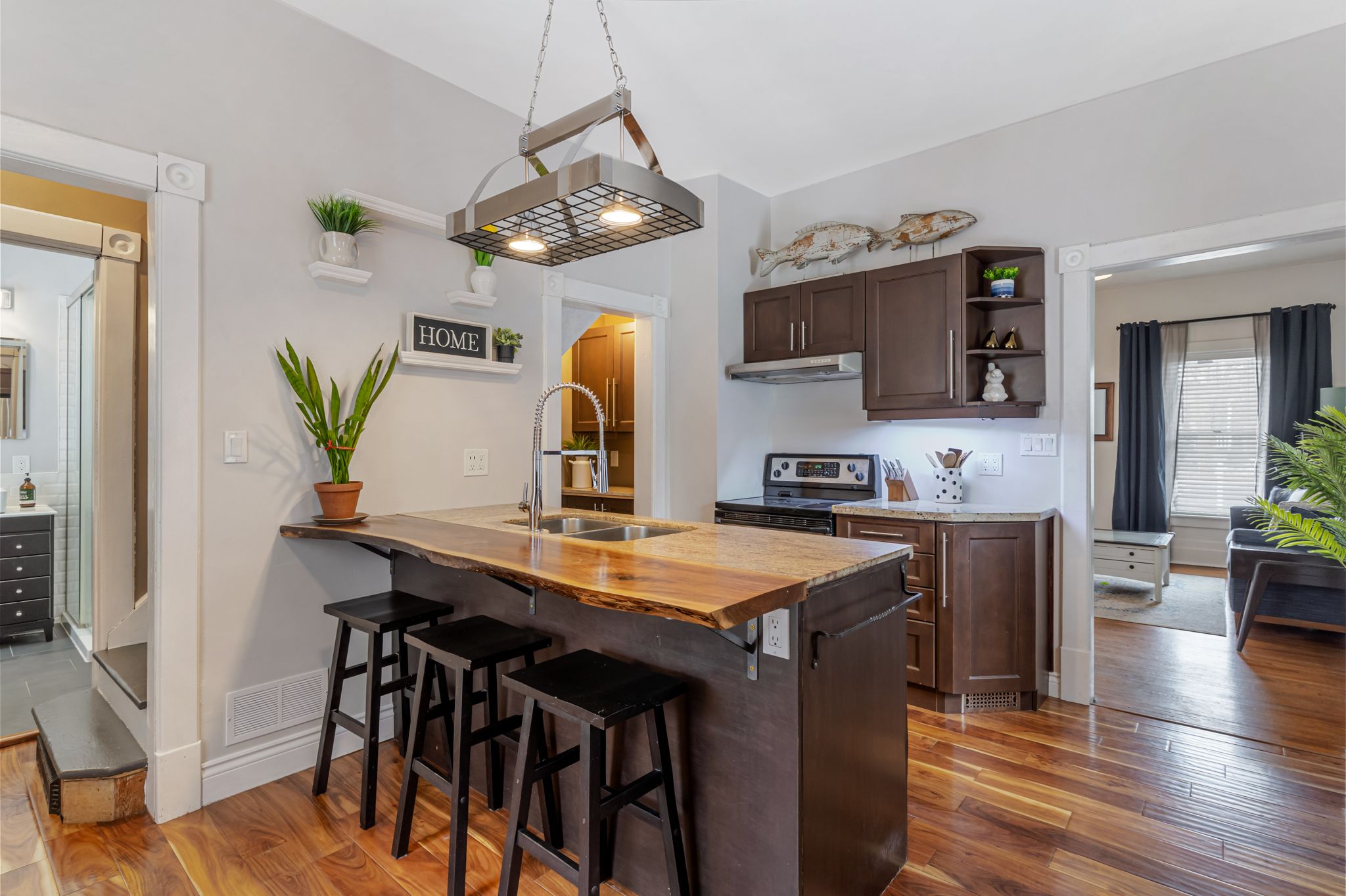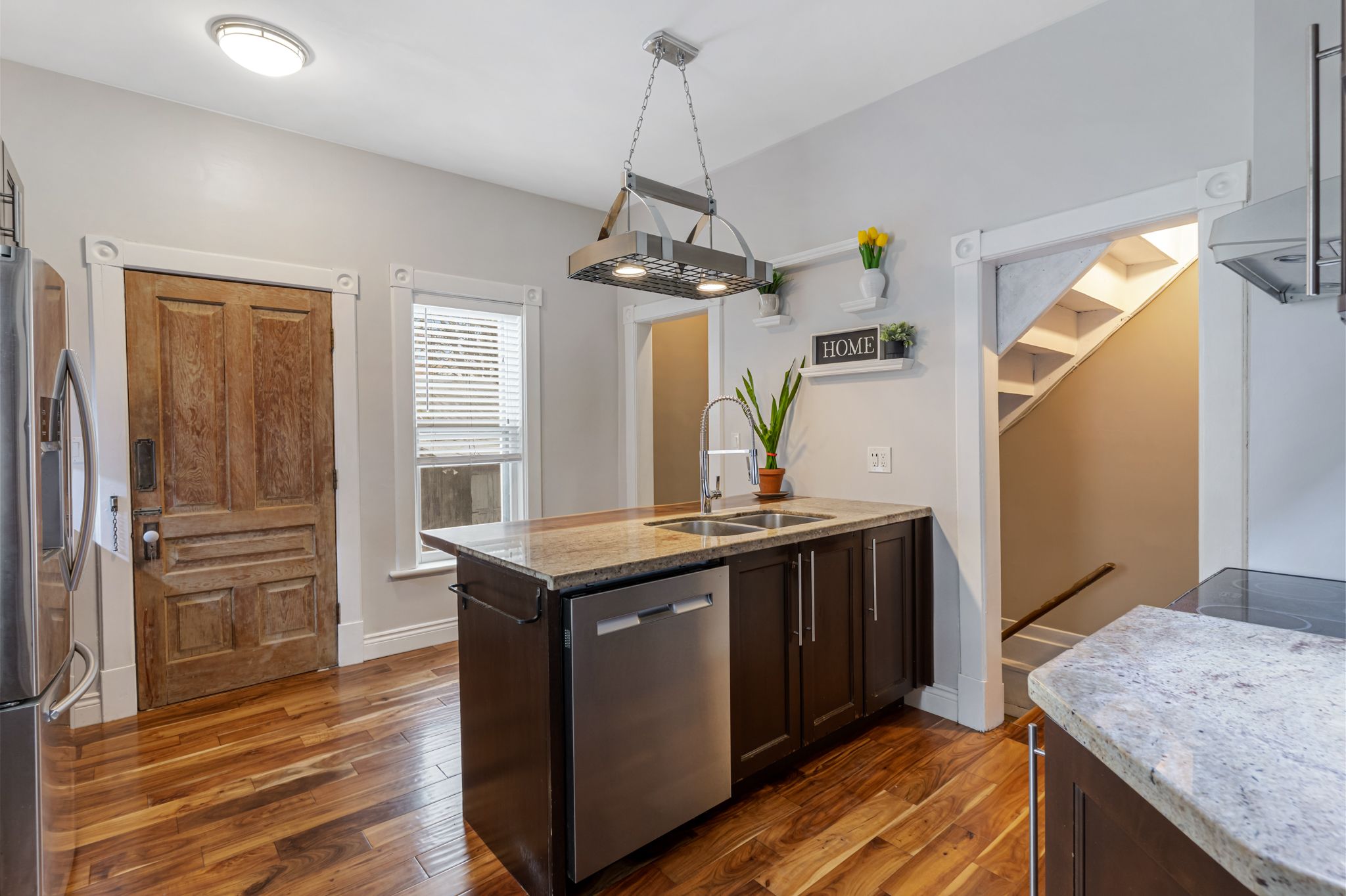 • Updated kitchen with granite countertops for modern cooking.