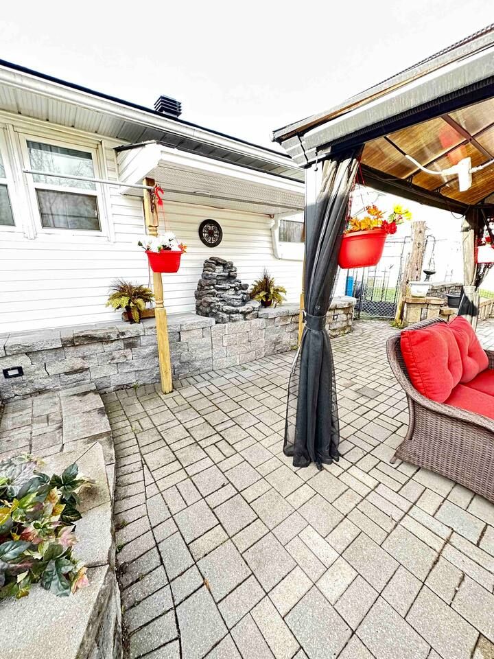 Turn-key custom bungalow on an exceptional 75' x 200' lot - rebuilt from the studs up. This beautifully updated bungalow features a new front addition and a fully gutted, professionally rebuilt original home (2014), offering approx. 1,400 sq ft of thoughtfully designed living space. Extensive upgrades include new electrical, furnace, central air, windows, insulation, flooring, and more. The vaulted-ceiling great room impresses with hardwood floors and pot lights, flowing seamlessly into an open-concept breakfast area and custom kitchen with abundant cabinetry and pantry space. The functional layout includes a rear mudroom with walk-out to patio, cold room/food storage, main-floor laundry, and three well-sized bedrooms. The spacious primary retreat boasts his-and-her closets and a 4-piece ensuite. Outside, enjoy a stunning fully fenced yard with extensive interlock stonework, underground irrigation, and endless space for gardeners or entertaining. Ideal property for an airbnb business. A standout feature is the 14'10" x 42'2" heated workshop/garage with its own furnace, nest dual-zone thermostat, and electric staircase leading to a private office-ideal for a home business, hobbyist, or car enthusiast. Additional upgrades include updated shingles on house, garage, and sheds, roof vents, and an oversized driveway accommodating 8-10 vehicles. A rare opportunity for families, bungalow enthusiasts, hobbyists, or those seeking future potential in a truly versatile property.