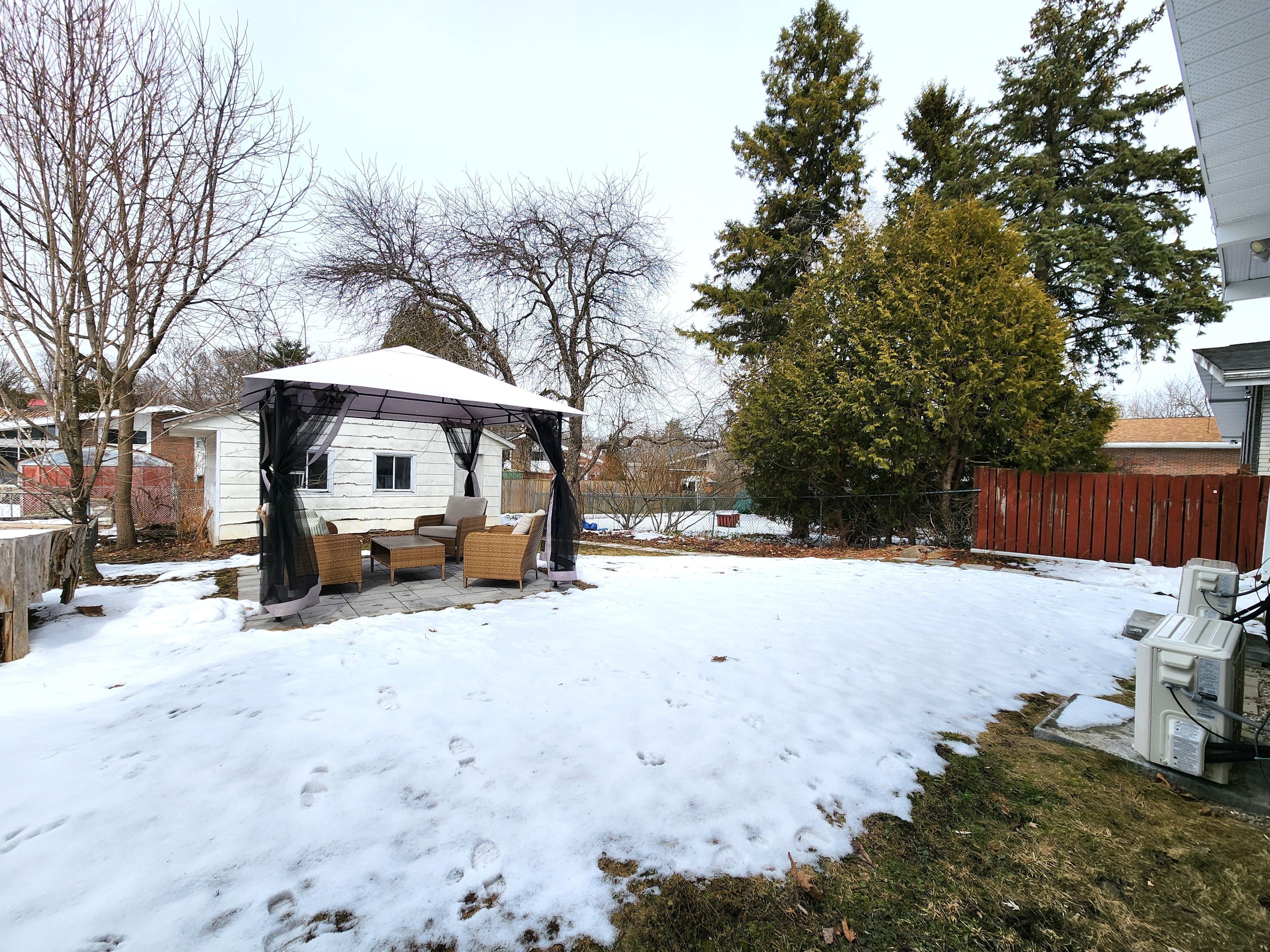 Welcome to 339 abbott st (west of cedar st) - a wonderful semi-detached close to the st. Lawrence river and the new swift waters elementary school. This 2+2 bedroom, 2 full bath home offers a bright, functional layout with vaulted ceilings and large windows that fill the space with natural light. Hardwood, ceramic, and laminate flooring run throughout most of the home plus there are numerous updates so you can move right in. The main living area is generous in size highlighted by a huge picture window overlooking the backyard, bringing in abundant natural light and offering a peaceful view. The large eat-in white kitchen is bright and inviting with stainless steel b/i dishwasher and beautiful large stainless steel fridge - all appliances included - making it both practical and convenient for everyday living. Upstairs features two comfortable bedrooms, while the lower level offers two additional bedrooms. With oversized windows, it doesn't feel like a typical lower level -perfect for teens, guests or a home office setup. A standout feature is the stunning new 3-piece bathroom addition in the lower level complete with marble counters, storage cabinets, custom tile shower with glass doors and heated floors for a spa-like experience. A few steps down and you enter the basement rec room with walk-out ideal for kids with hockey gear and added convenience. More recent upgrades include two new heat pumps providing efficient air conditioning to the main and second floors, updated breaker panel, and new owned hot water tank-offering comfort, reliability, and peace of mind. Outside, enjoy a landscaped yard with established perennials, a new stone patio, and a gazebo-perfect for relaxing or entertaining. The covered porch adds charm and function, while the oversized 16'x20' shed with professionally installed electricity offers excellent space for hobbies or storage. A well-rounded property with thoughtful updates and flexible living space-this home is sure to impress. Come see!