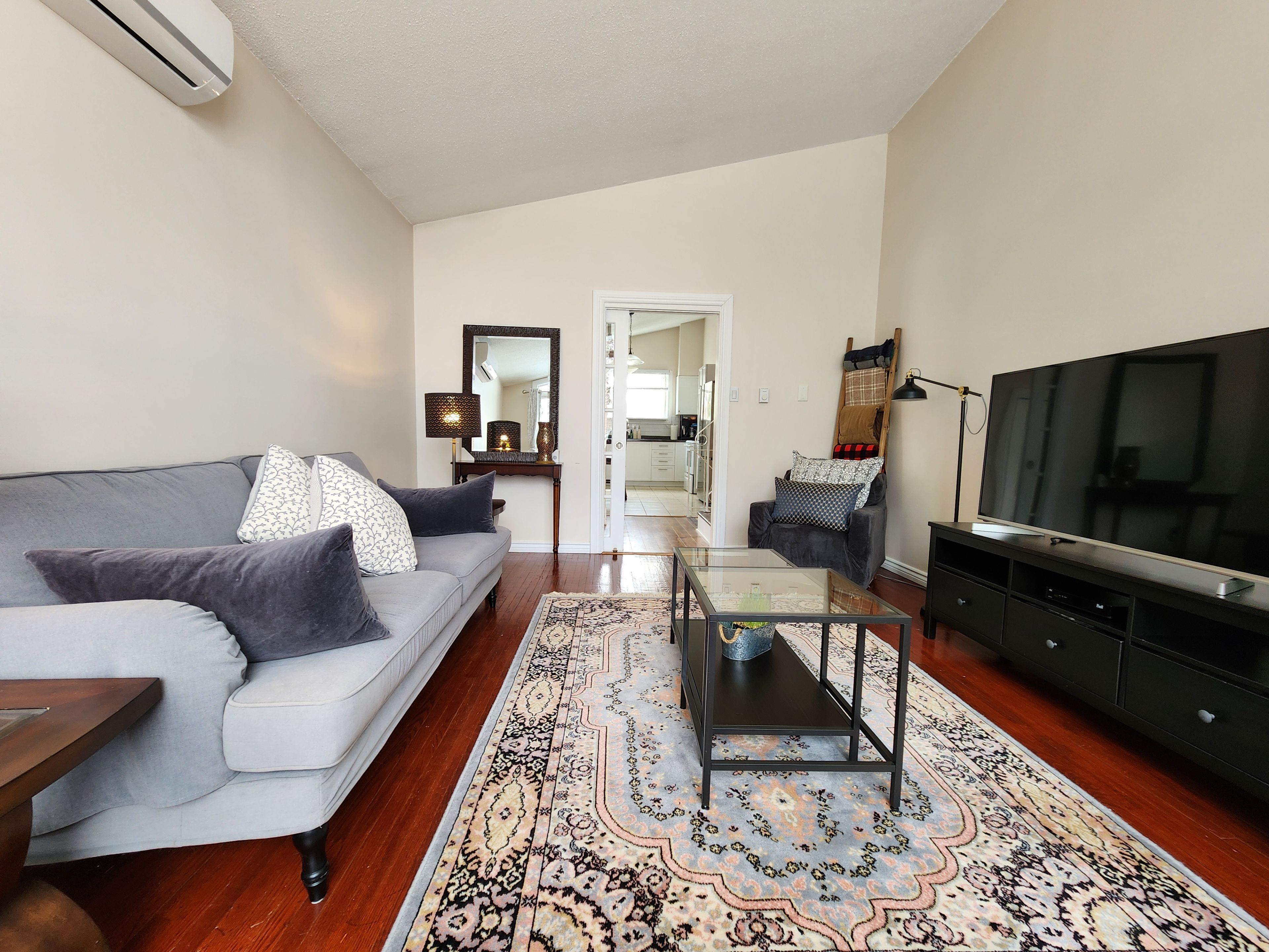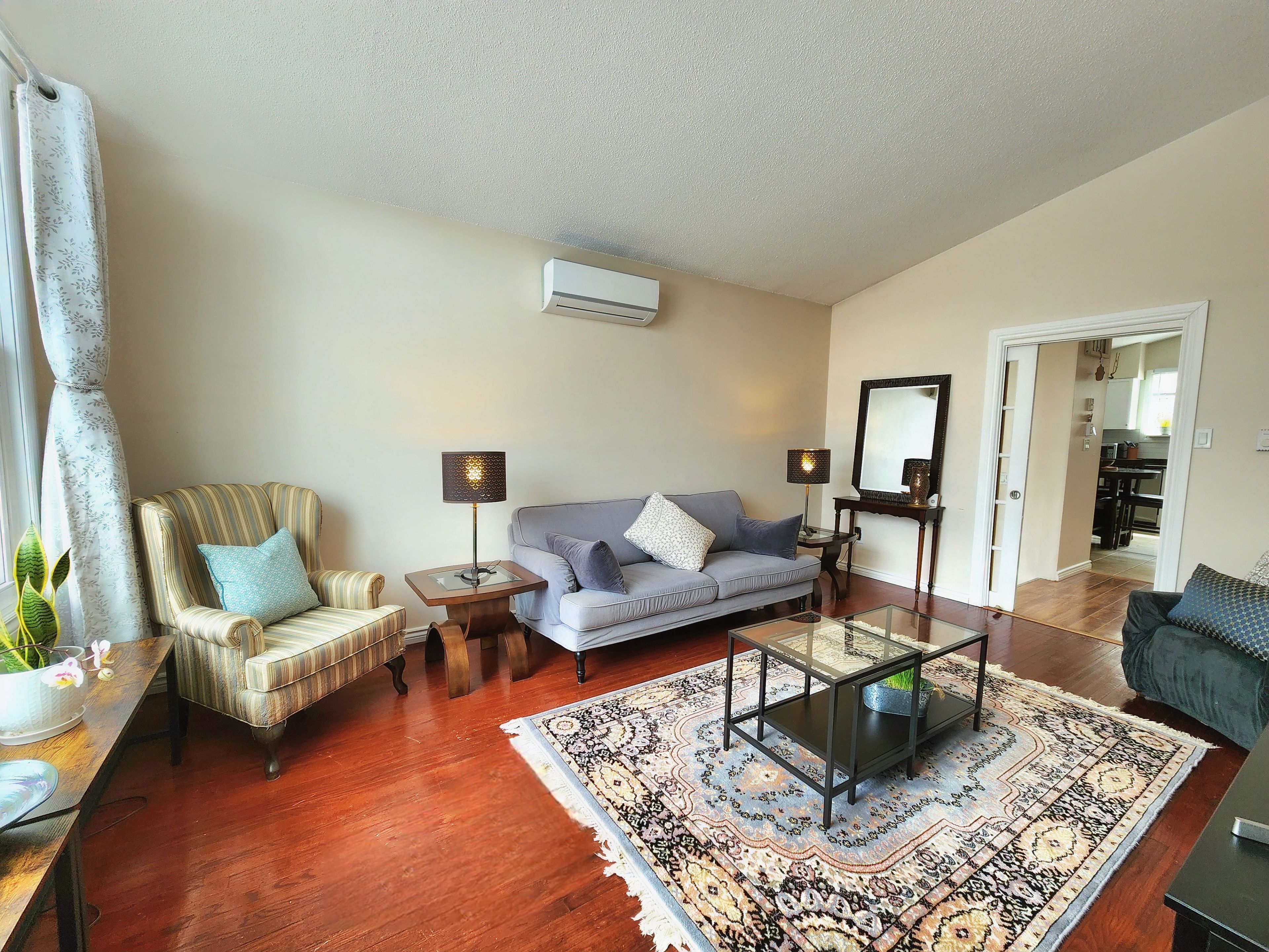 • Bright layout with vaulted ceilings and large windows for natural light.