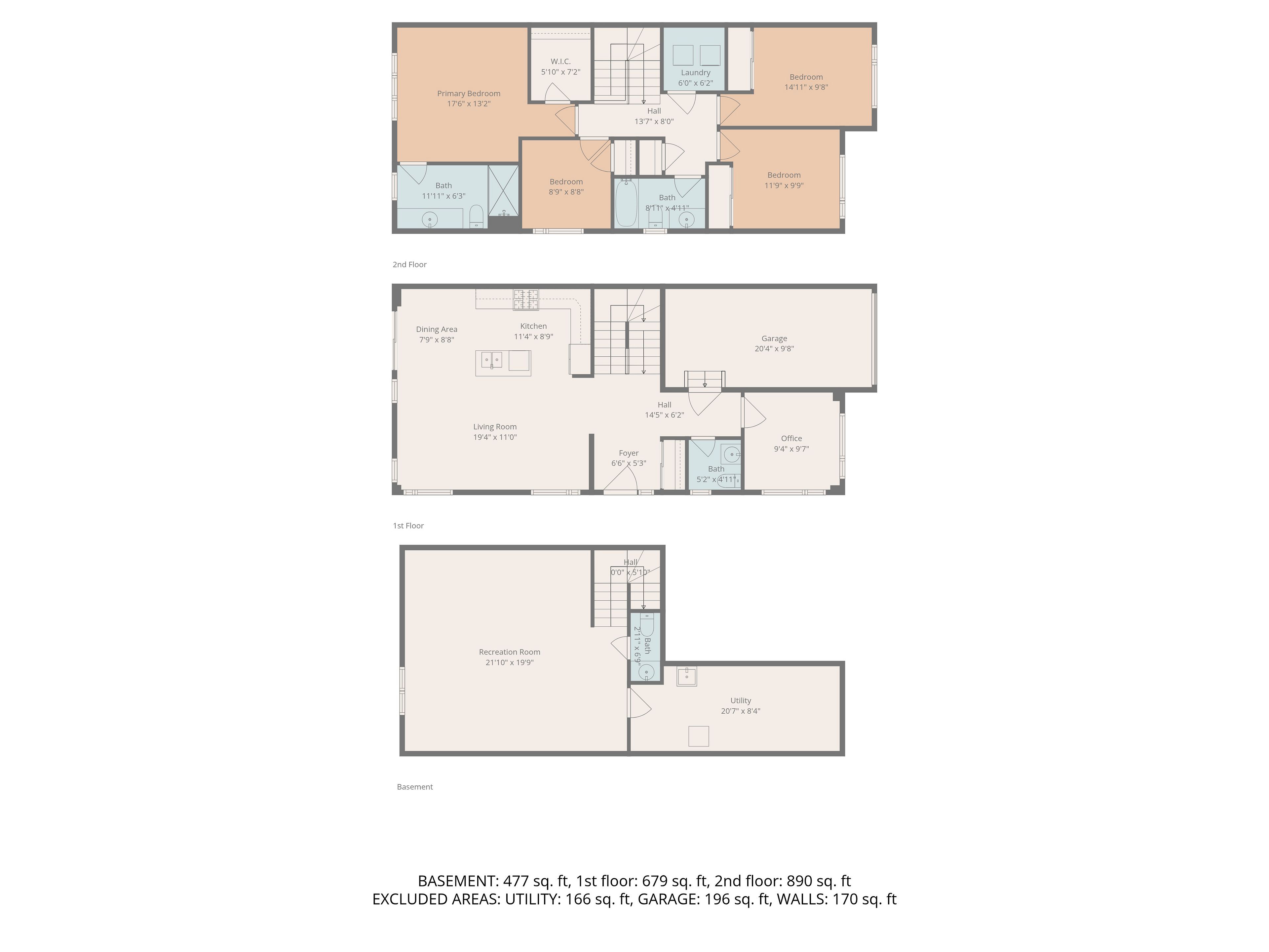 • Finished basement with additional living space and a bathroom.