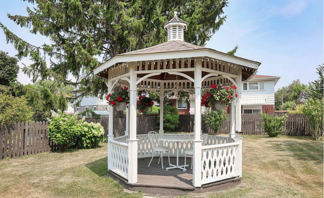 • Rare double lot offers plenty of outdoor space and a custom gazebo.