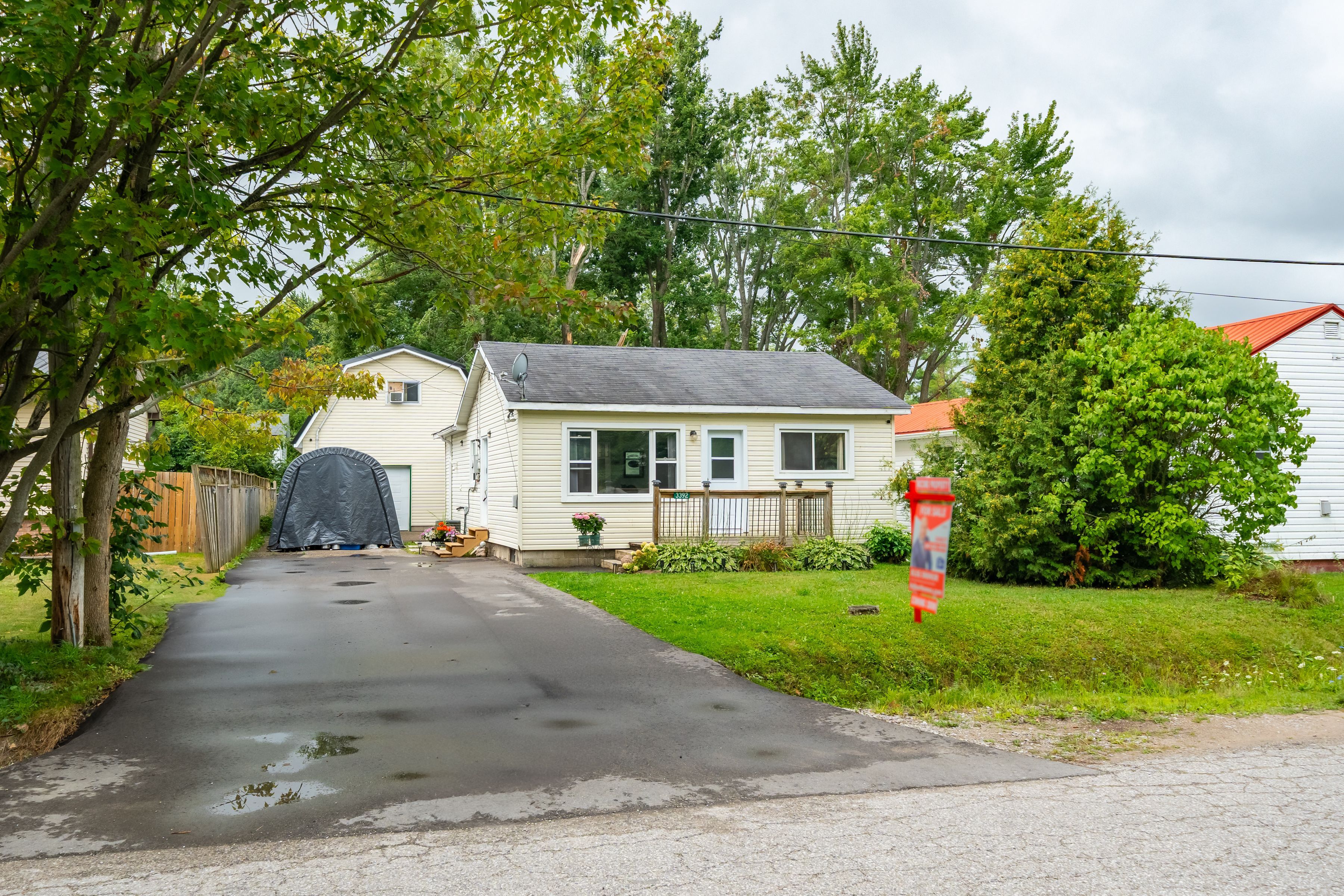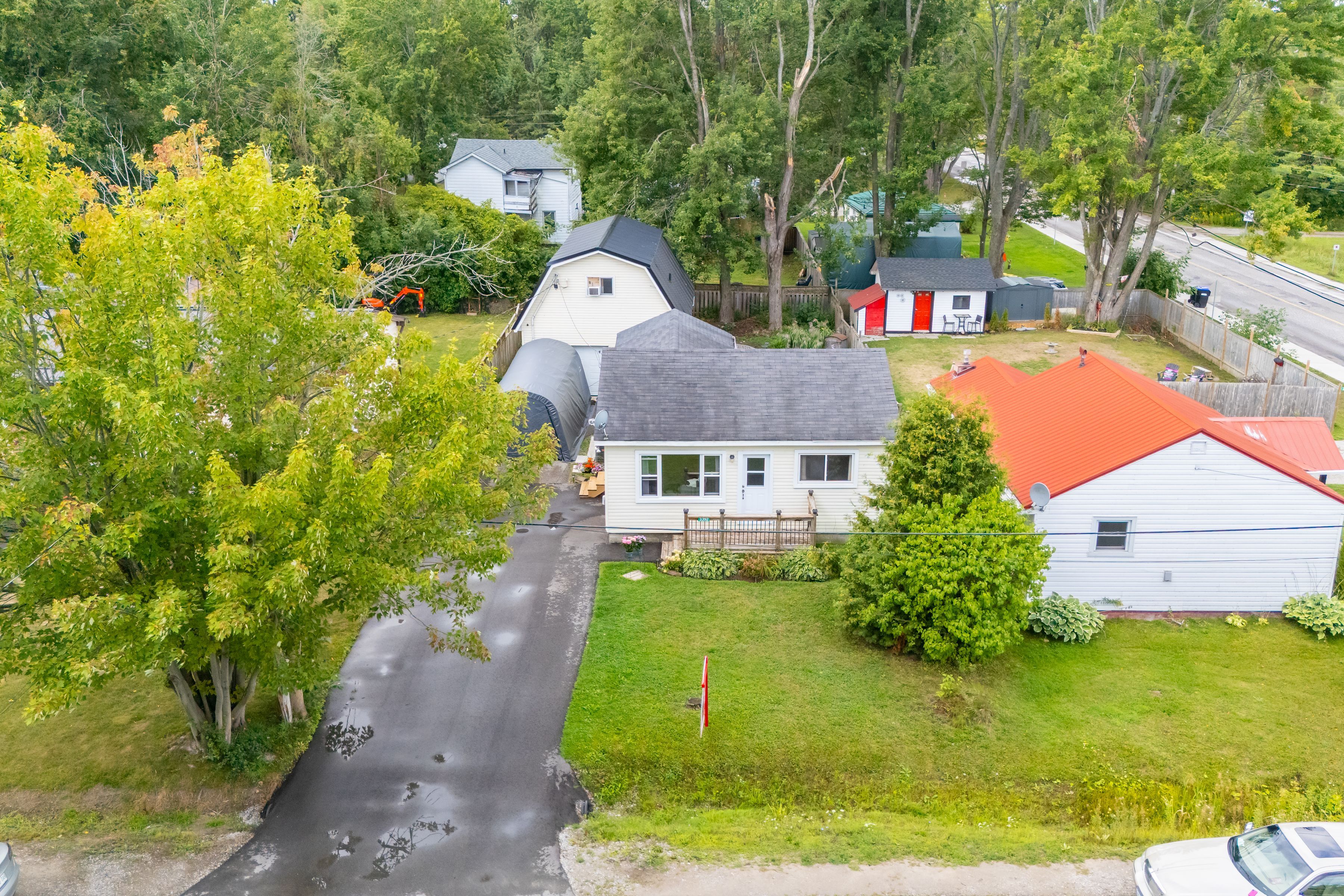 Wow!!! Best value, most bang-for-your-buck home with limitless potential . You will not find anything like this!!! - 2 dwellings on the property for very affordable price! Can be used as: separate extra living space, rental property, large workshop/garage & much more! Whether you're looking for multi-generational living, rental income, or your own private retreat, this property offers it all! Enjoy the flexibility of a large workshop, studio, or spacious garage - perfect for hobbyists, entrepreneurs, or those who need extra space. Live in one home and rent out the other, or create a family compound - the choice is yours! The front bungalow home features 2 bedrooms, 1 bath, and a large kitchen with stainless steel fridge (2022)and a gas stove for convenient cooking. New driveway(2024), attic insulation (2024), windows and front door (2023). Furnace and a/c approx. 8 years old & well maintained. Winterized rear building adds incredible flexibility, boasting a new roof (2022), fridge (2022), and spray foam insulation for year-round comfort and energy savings. This second detached building adds significant value! Perfect as a workshop, guest house, garage, or rental suite. Use it as-is or finish it to your needs - the choice is yours! Enjoy parking for up to 8 vehicles plus garage plenty of room for cars, boat, and all your toys. Fantastic commute with easy access to hwy 11, just steps to school, private parks and private beach access offering a peaceful and private lifestyle at very an affordable price! Whether you're an investor, first-time buyer, or looking for a unique family home with rental potential, this property offers limitless possibilities. Don't miss your chance to own this unique property with lots of potential and for very affordable price! This place is full of character and charm with lots of potential for the future!