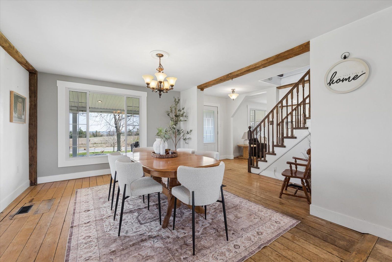 Set on a picturesque lot just under one acre, this charming rural property offers the perfect blend of space, comfort, and convenience. Ideally located just east of the village of keene and only 15 minutes to peterborough, you'll enjoy peaceful country living without sacrificing easy access to amenities. The home features four bedrooms and two bathrooms. A welcoming wraparound front porch sets the tone, offering the perfect spot to relax and take in the surrounding views. Inside, the open-concept kitchen and dining area create a functional and inviting space for everyday living and entertaining. The bright living room is anchored by a cozy woodstove, adding warmth and character. Main floor laundry adds to the home's practicality, while updated vinyl windows and doors enhance efficiency and comfort. Heating is well taken care of with a propane furnace complemented by a heat pump, providing year-round climate control. If you've been looking for a manageable country property with modern conveniences in a great location, this one is not to be missed.