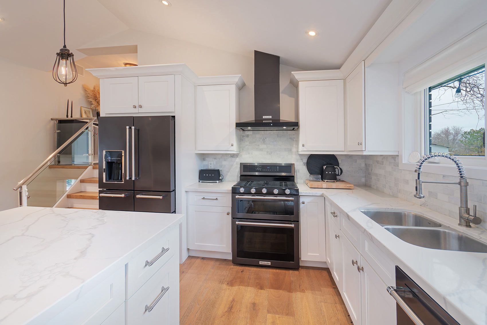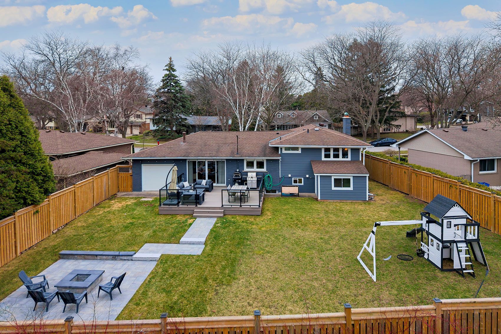Welcome to this beautifully lovingly cared for updated 3-bedroom, 4-level sidesplit, located in the highly sought-after tuck school district south burlington. This aprox 2,300 sqft finished living space home offers a perfect blend of style, comfort, and functionality for modern family living. Step inside to discover stunning engineered flooring no carpets and a bright, open-concept main level designed for both everyday living and entertaining. The spacious kitchen is a true centerpiece, featuring elegant quartz countertops , large island, premium kitchenaid appliances, and plenty of workspace for cooking and gathering. The thoughtfully designed multi-level layout provides ample room for relaxation, work, and play, with fully finished rec room and living spaces on every level. Outside large covered front porch or enjoy a private fully fenced backyard complete with a deck-ideal for summer barbecues and family gatherings around the fire pit, or simply unwinding in your own outdoor retreat. This move-in-ready home combines quality upgrades with a prime location close to excellent schools, parks, and amenities, curling rink and roseland tennis club, public library and centennial trail 2025 upgrades include furnace, humidifier, air purifier and dishwasher, other recent upgrades iron and glass railing on deck, backyard fire pit. -an opportunity you won't want to miss..