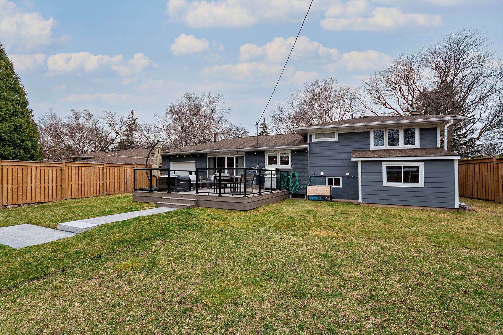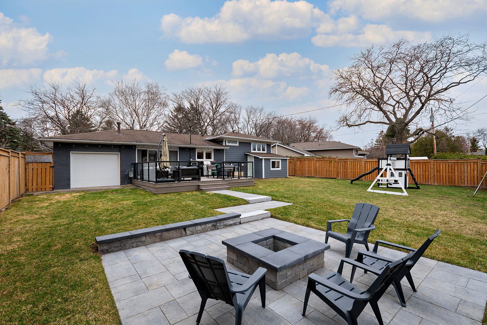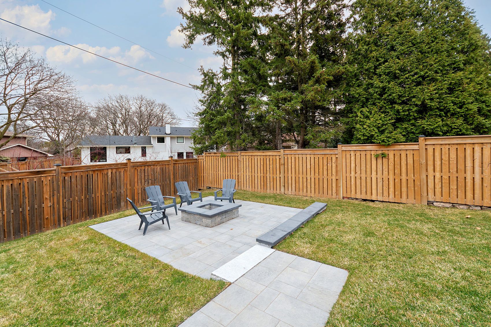 • Fully fenced backyard with a deck and fire pit for gatherings.