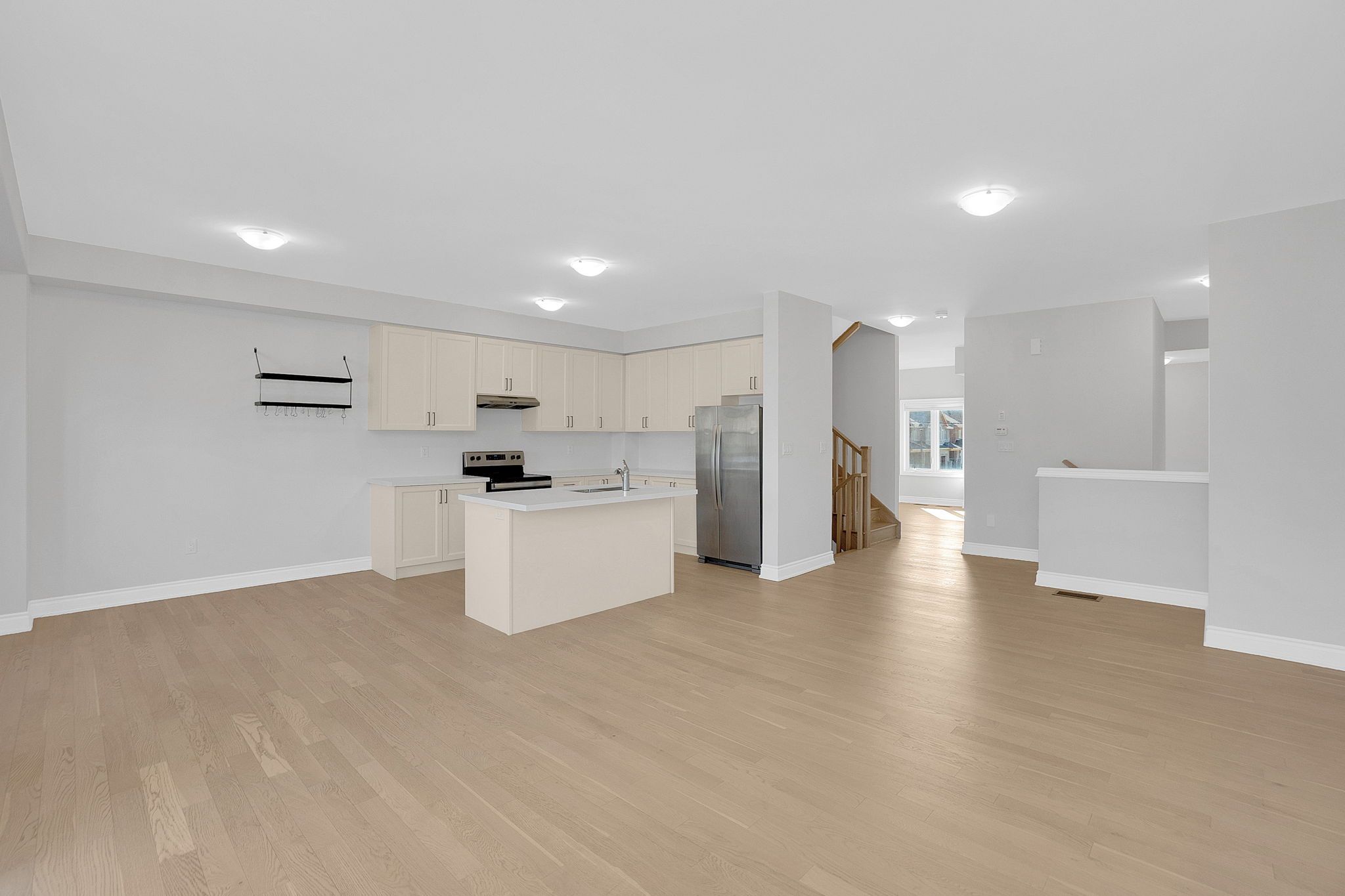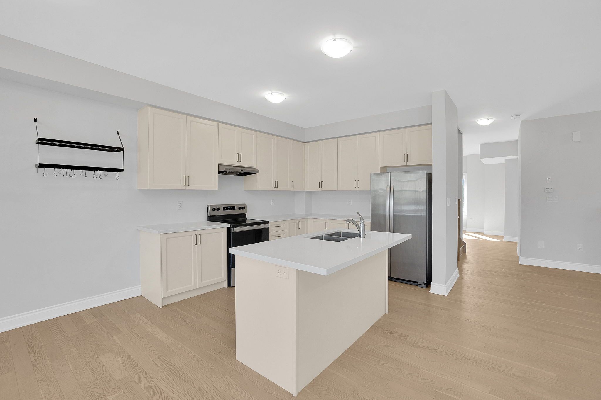 • Flexible open-concept layout with hardwood floors and quartz counters.
