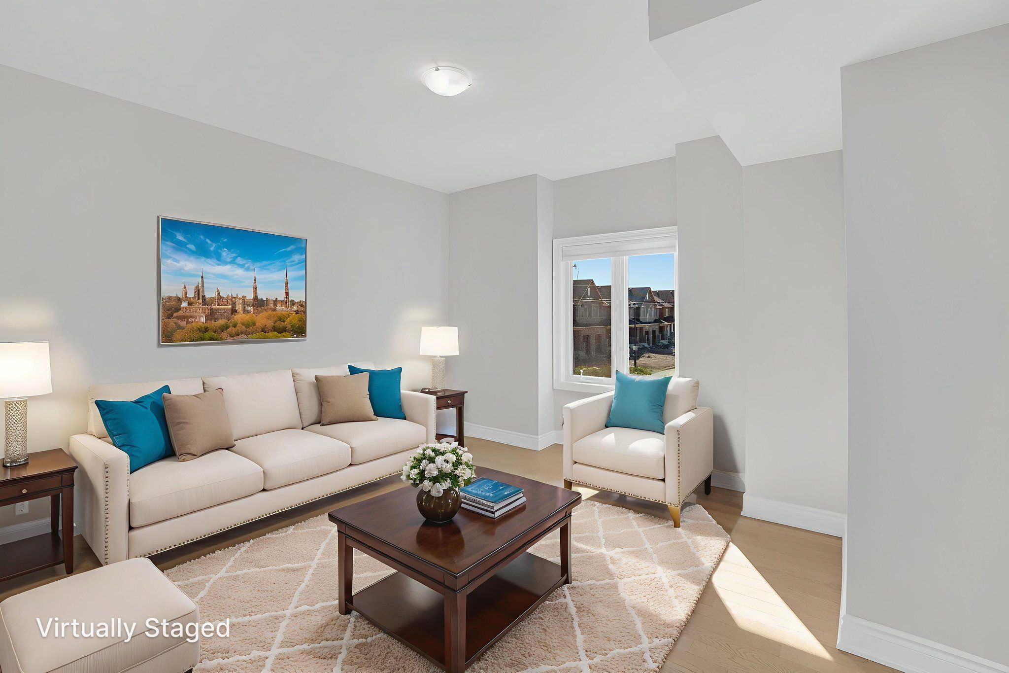 Built in 2023, this stunning 3-storey freehold townhome offers 2,520 sq ft above grade, an unfinished basement with bathroom rough-in, and a rare double car garage. Featuring 3 bedrooms, 3 bathrooms, and a flexible open-concept floor plan with hardwood floors, hardwood stairs, and quartz counters throughout the kitchen and baths. The main floor includes a bright study room, perfect for a home office or 4th bedroom. The primary suite features a balcony, walk-in closet, and 5-pc ensuite, while the additional two bedrooms share a jack & jill 4-pc bathroom. Some highlights include upper-level laundry, central vac rough-in, and visitor parking in the complex. All just minutes from schools, shops, parks, uxbridge hospital, go station, scenic trails, and premier golf courses.