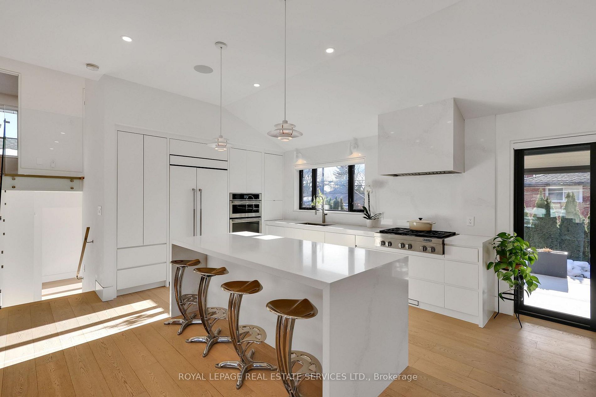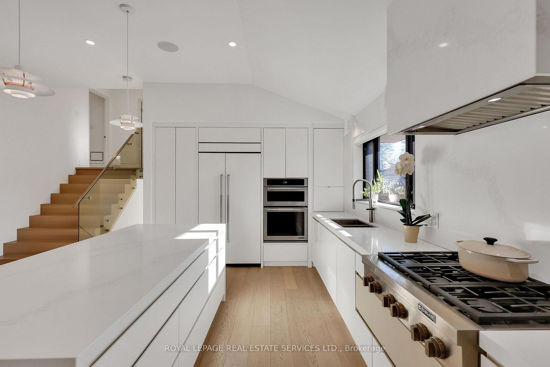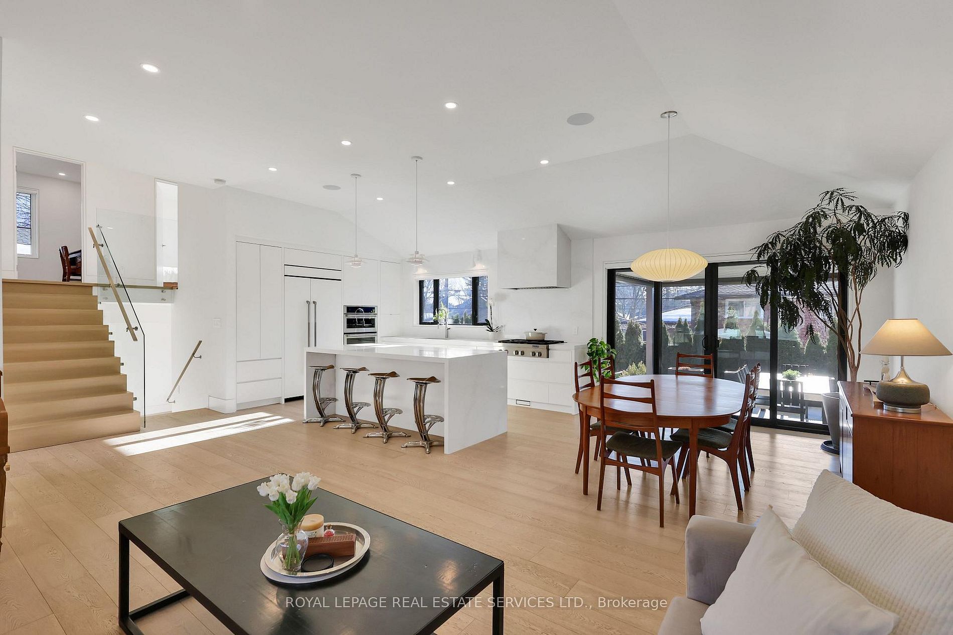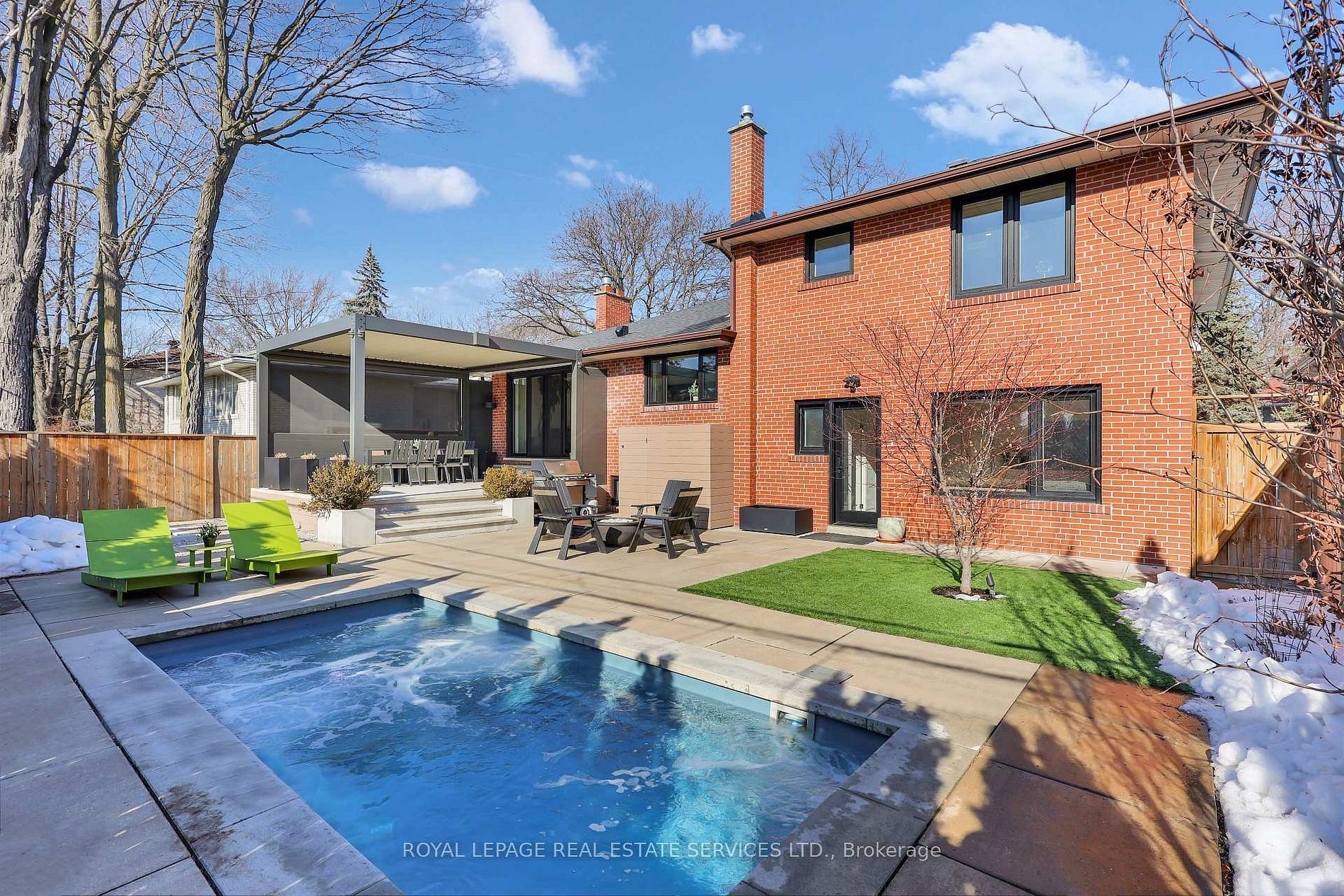 Completely transformed in 2019 - this modern masterpiece stands out in the prestigious community of markland wood -one of etobicoke's most established and sought after neighbourhoods. Known for its tree lined streets, strong homeowners' association, and the landmark markland wood golf club, the area offers a rare blend of tranquility, community spirit and urban convenience. This home was rebuilt with exceptional attention to detail. The main floor features 11-ft vaulted ceilings, enlarged windows and doors, and integrated trim for a clean, architectural aesthetic. The custom kitchen by top notch cabinets includes an eight foot waterfall island, stone-slab backsplash and hood, and fully integrated jenn-air appliances. Designer lighting - over $10k invested - adds warmth and sophistication throughout. Upstairs, the primary suite was redesigned to include a larger ensuite, while the lower level offers a fourth bedroom and dedicated laundry. Premium finishes include engineered white oak floors, aria vents, heated bathroom tiles, a built-in sound system, and comprehensive insulation upgrades for year-round comfort. The $300k backyard transformation creates a private resort experience with a concrete slab deck, aluminum pergola, in-ground lighting, natural gas fire pit lounge, garden space, and a year-round immerspa pool that functions as both pool and hot tub. Markland wood offers outstanding top-ranked schools, along with quick connections to major highways and transit routes. With its safety, strong community, and serene atmosphere, markland wood is widely regarded as one of toronto's most desirable places to call home. This is a rare opportunity to own a fully re-engineered, luxury home in a neighbourhood that already defines prestige!