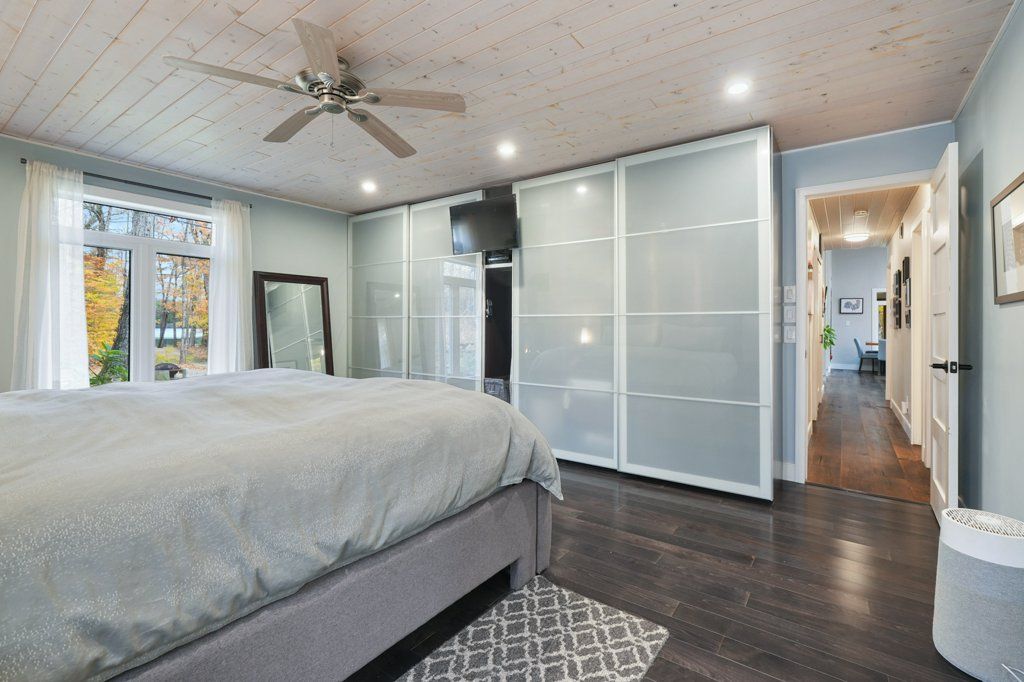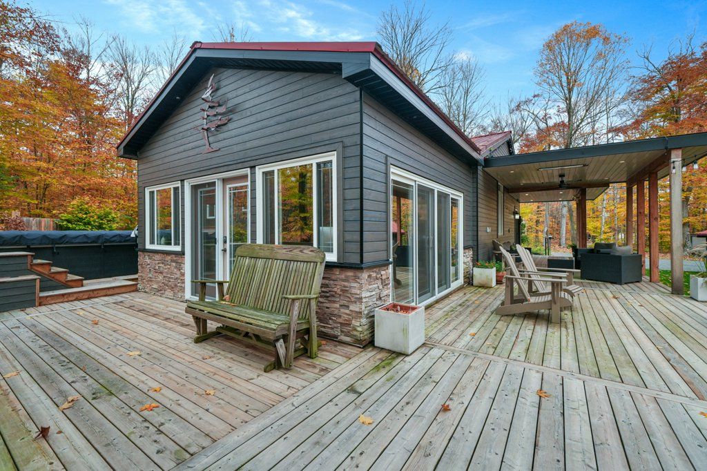 Welcome to your year-round home on beautiful hooton lake - a quiet, non-motorized lake perfect for peaceful living and time spent in nature. Set on 2. 84 acres with 243 feet of shoreline this 3-bedroom, 2-bathroom property features a rare combination of privacy, comfort and lakeside charm. Built in 1990 and thoughtfully updated, the home features a chef-style kitchen with island ideal for entertaining and a sunken living room with a high efficiency wood burning fireplace. A cozy family/sunroom with propane fireplace, expansive windows and a walkout to the deck - creating an effortless indoor/outdoor area with covered area with infrared heaters, generous decking and a swim spa for year-round relaxation, exercise or just relax in the hot tub end of the spa. The landscaped grounds include your own private beach-perfect for morning swims, paddle boarding or soaking up the sun. A generac generator adds peace of mind, while a detached garage & bunkie add plenty of space for toys, gear and guests. Ideal for family living or weekend escapes. Whether you're enjoying quiet mornings by the lake, hosting friends on the deck or unwinding in the swim spa this hooton lake home delivers comfort, nature and four-season enjoyment. Located in seguin close to parry sound and all amenities. Home is calling, it's ready for you to settle in and start making memories.