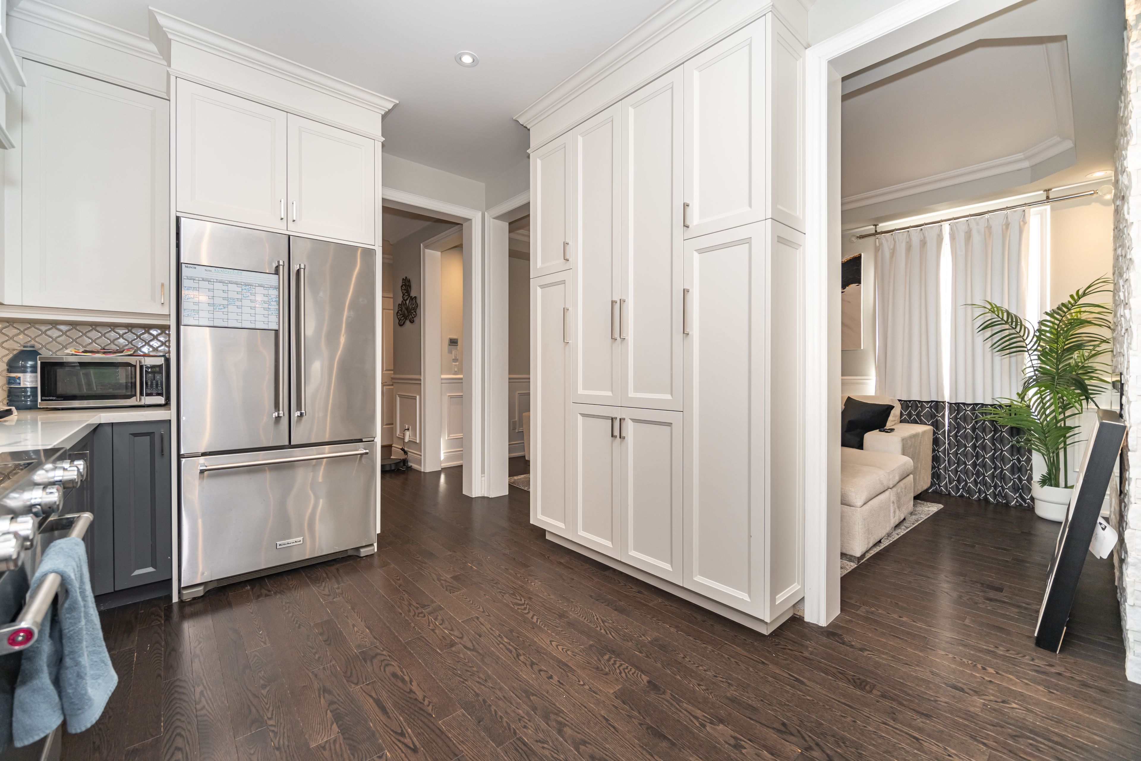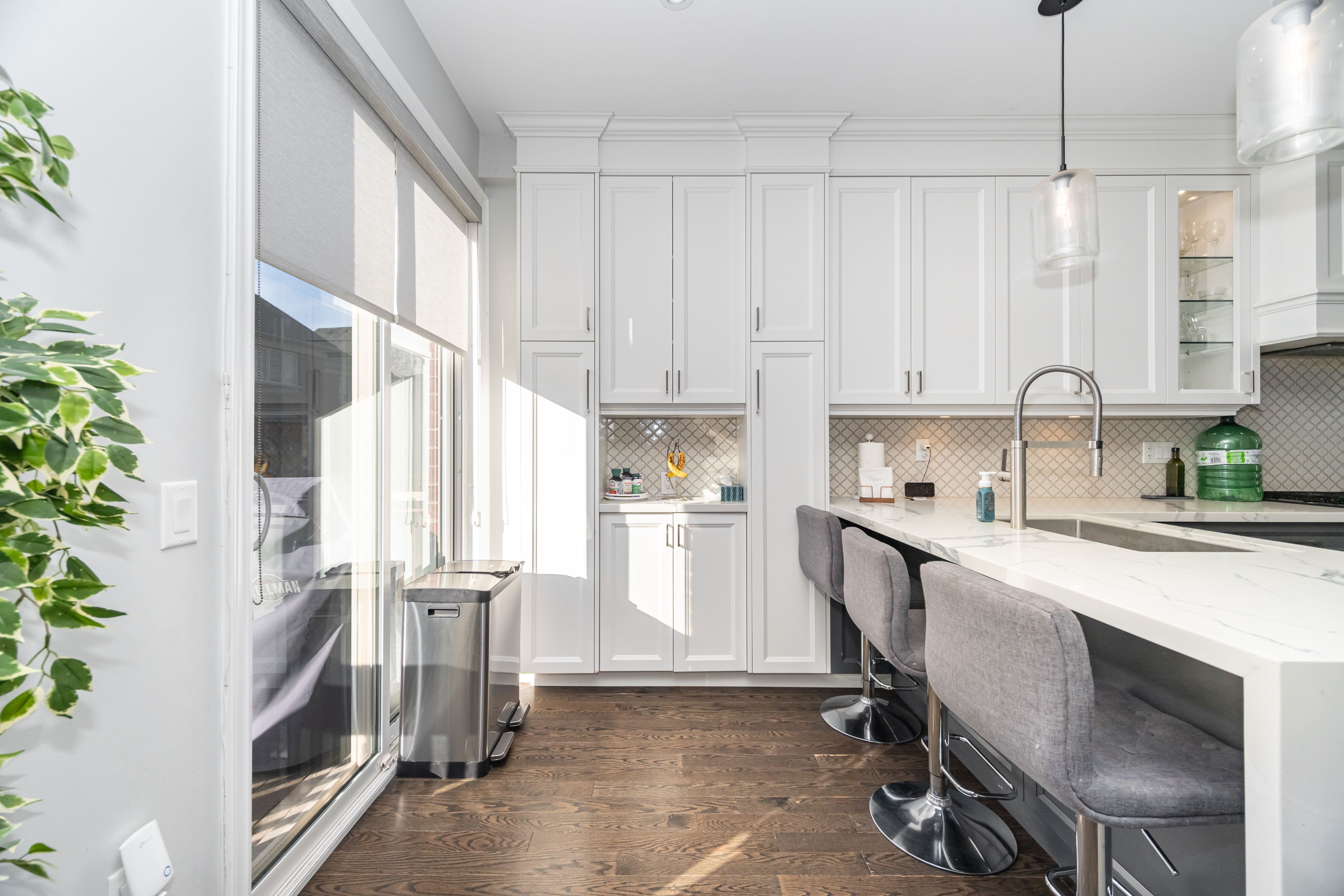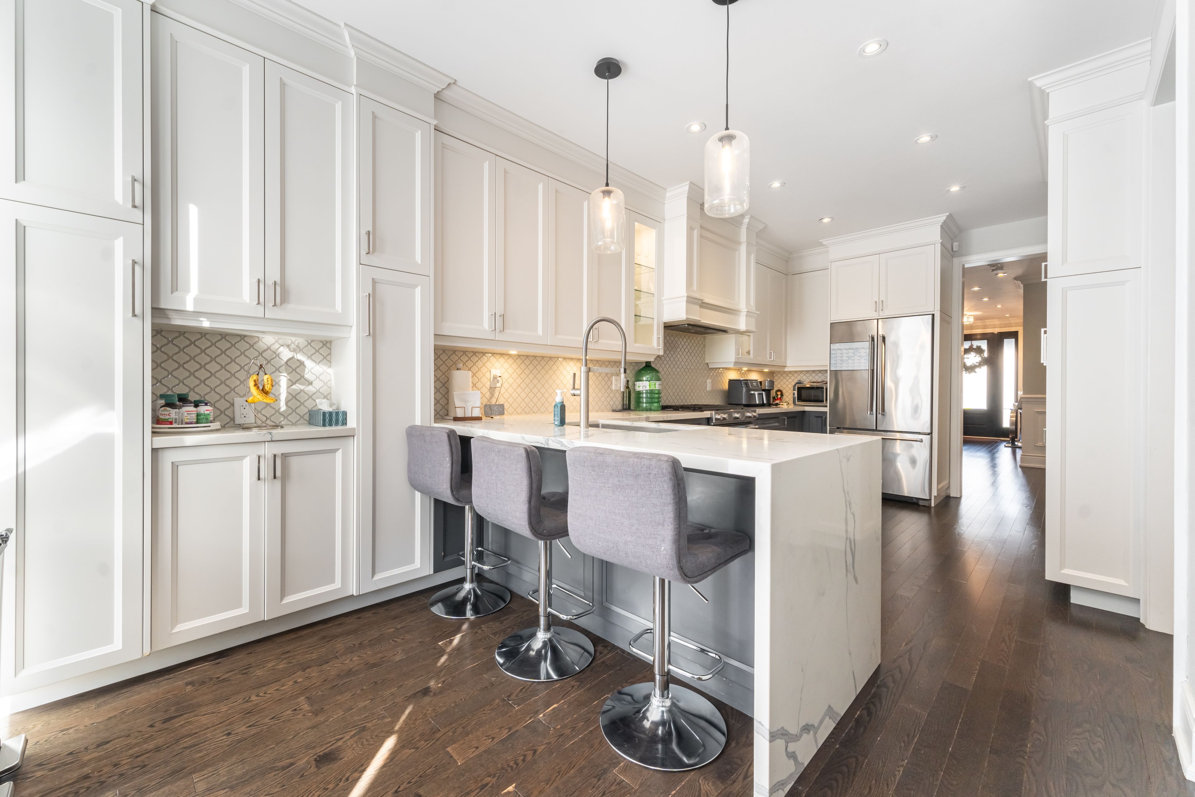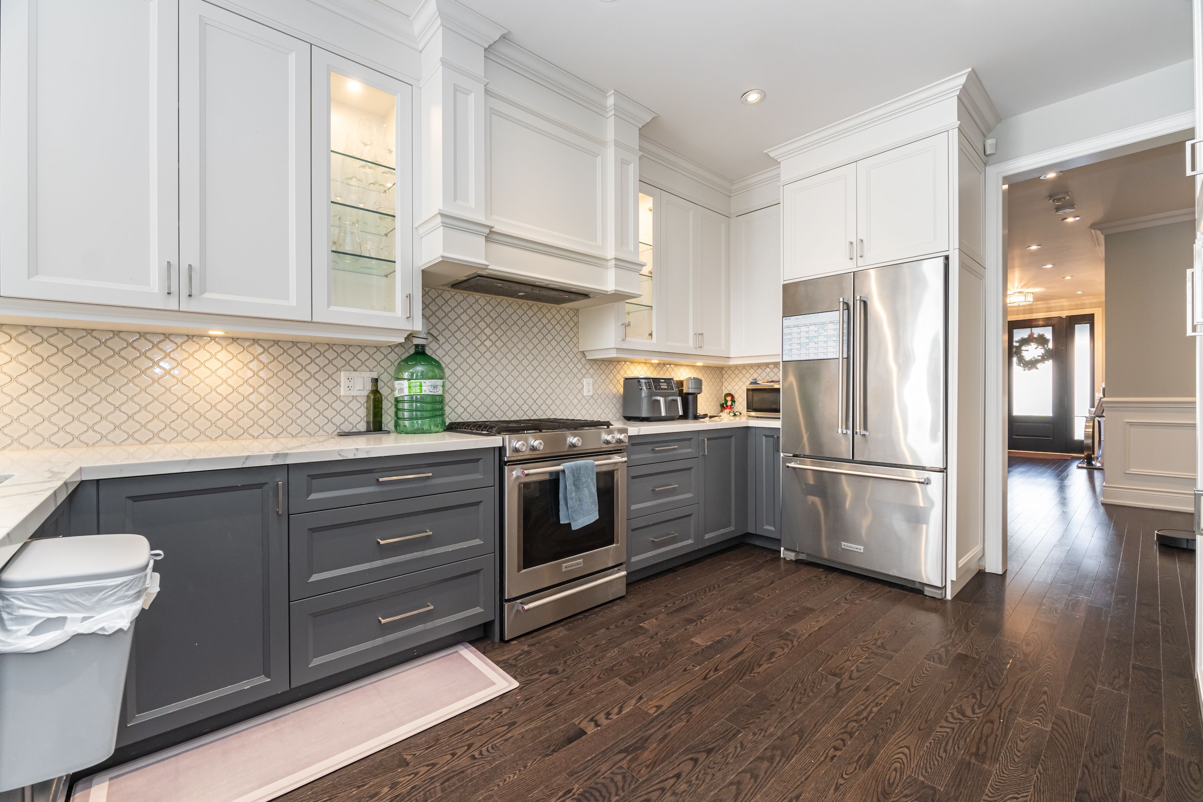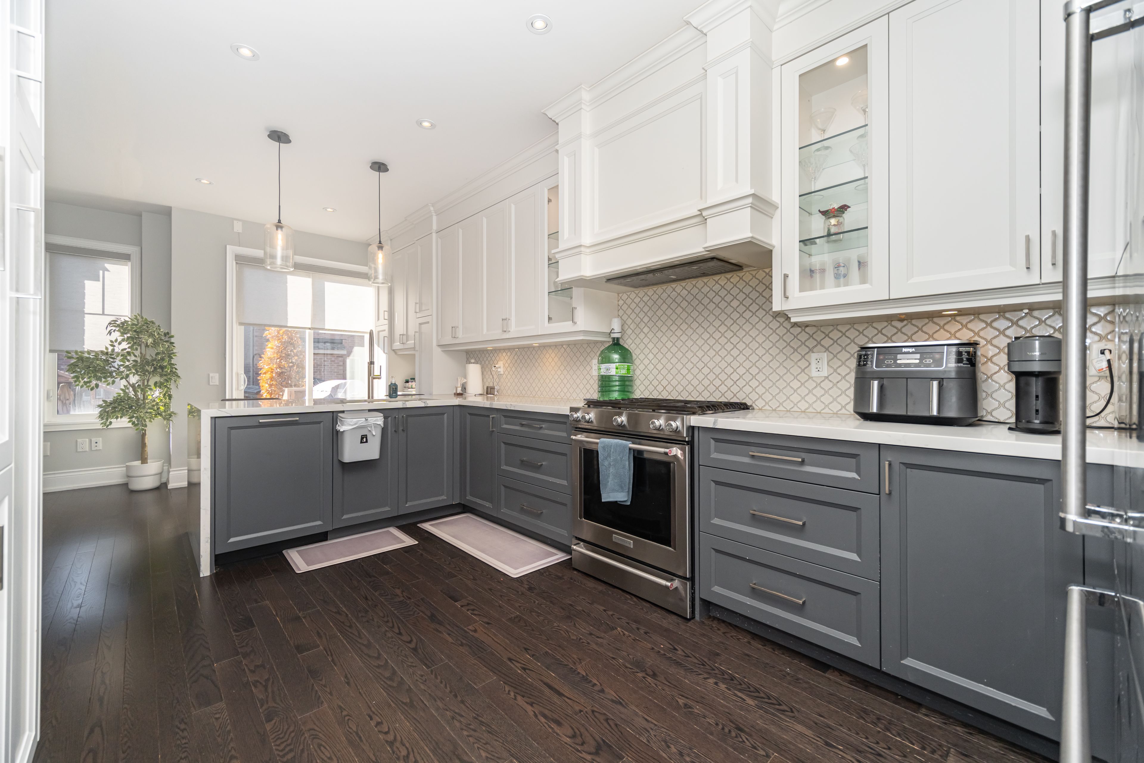 • Stylish upgrades including hardwood floors and a custom two-tone kitchen.