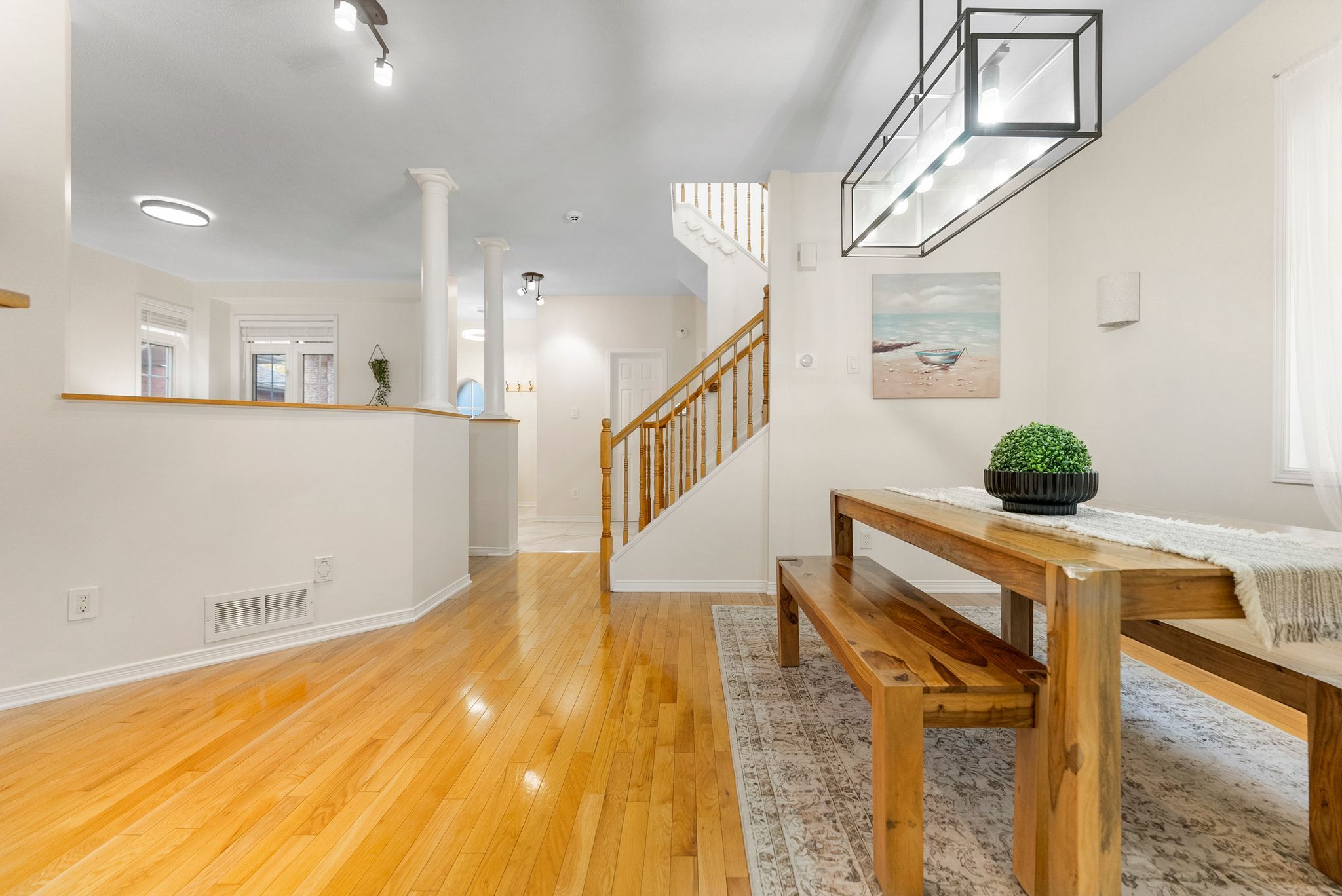 Open house sunday, november 29th 1-3pm. Welcome to this bright and meticulously maintained 4+1 bedroom, 4-bathroom home. Tasteful updates and neutral finishes throughout, this bright and inviting home offers exceptional functionality for modern family living. The open-concept layout provides an airy flow while maintaining defined spaces for living and dining-perfect for both everyday comfort and entertaining. A dining room & family room both directly off the kitchen, and a flex room to accommodate any families needs all anchored by a gas fireplace! A powder room tucked off the entrance & a beautifully upgraded mudroom with direct access to the insulated double garage, combining practicality with style. Upstairs, discover four spacious bedrooms, including a luxurious primary suite with a large walk-in closet and a serene 5-piece ensuite overlooking the landscaped backyard. The second bedroom enjoys a convenient cheater door to the main 4-piece bath, while the laundry area is ideally located on this level for ease of use. Both the staircase to the second level as well as to the lower level are central, have windows and continue the cheery feel this home radiates. The fully finished lower level expands your living space with a fifth bedroom, a generous 3-piece bath, games and family rooms, plus ample storage and utility areas. Step outside to a private, fully fenced backyard featuring a hardscaped patio with gazebo, plenty of room for play or relaxation as well as large storage shed! Situated within minutes of the kanata north hi-tech park, golf course, the transcanada trail, and a park at the end of the crescent! This home offers the perfect blend of tranquility and accessibility-close to schools, shopping and all amenities. Great home, great location..... It's a lifestyle - make this your next chapter!