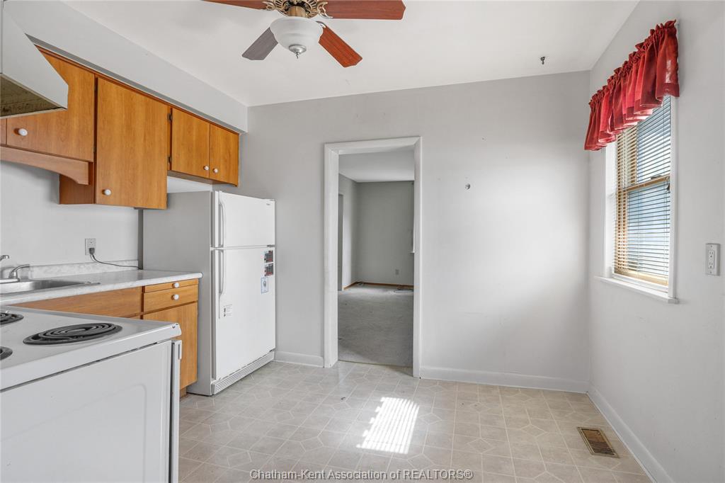 Located in the charming town of blenheim, ontario, and just a short walk to the bustling downtown amenities, this versatile one-and-a-half-story residence invites a range of future endeavours. The property has separate hydro meters for each side, while water and gas are on a single shared meter. On one side of the residence, you’ll find a welcoming mudroom, a kitchen with ample cabinetry, a spacious living room, and a four-piece bathroom, as well as three bedrooms upstairs. This side also offers a single car driveway and a storage shed. The other side of the residence features an eat-in kitchen, a living room area, one bedroom, a four-piece bath, and a double-car concrete driveway. This side is equipped with an additional heating source via a wall furnace. Please note: this property is being sold in as-is condition at the request of the estate. While geowarehouse lists it as a semi-detached under one owner, municipal records are not fully conclusive. Buyers are encouraged to verify all details independently to ensure accuracy.