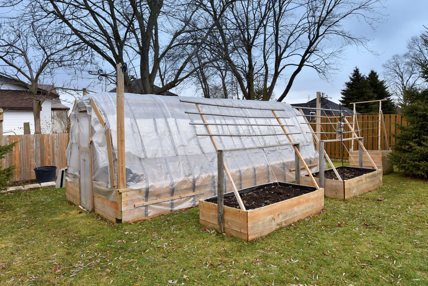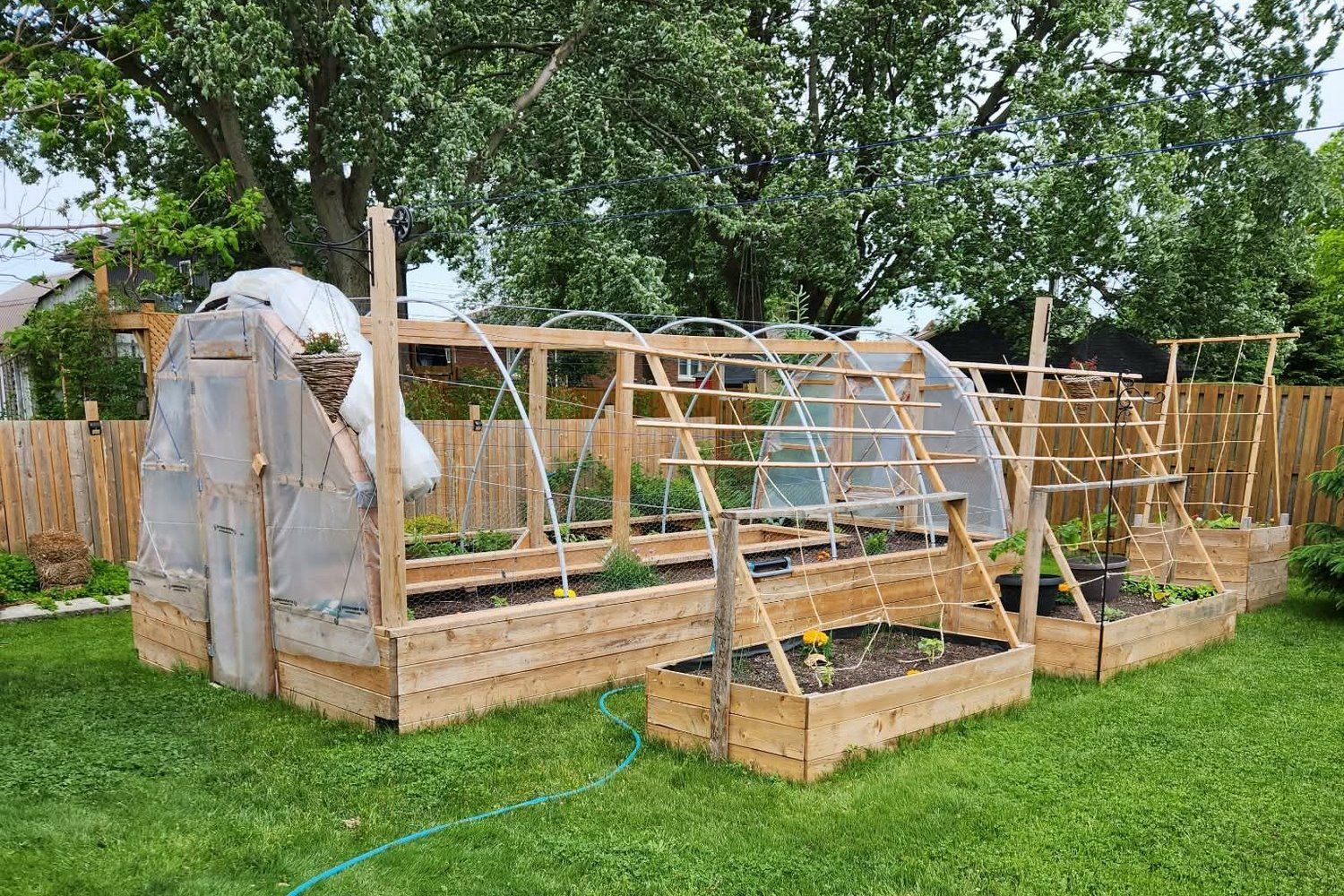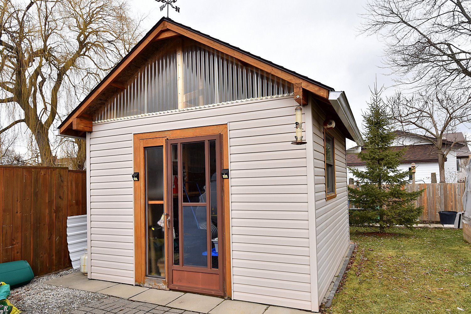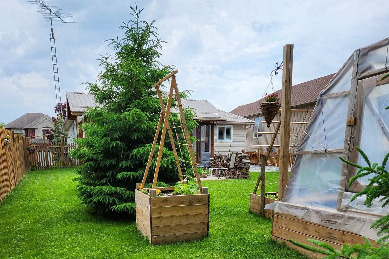 • Huge fenced backyard featuring a fire pit and greenhouse.