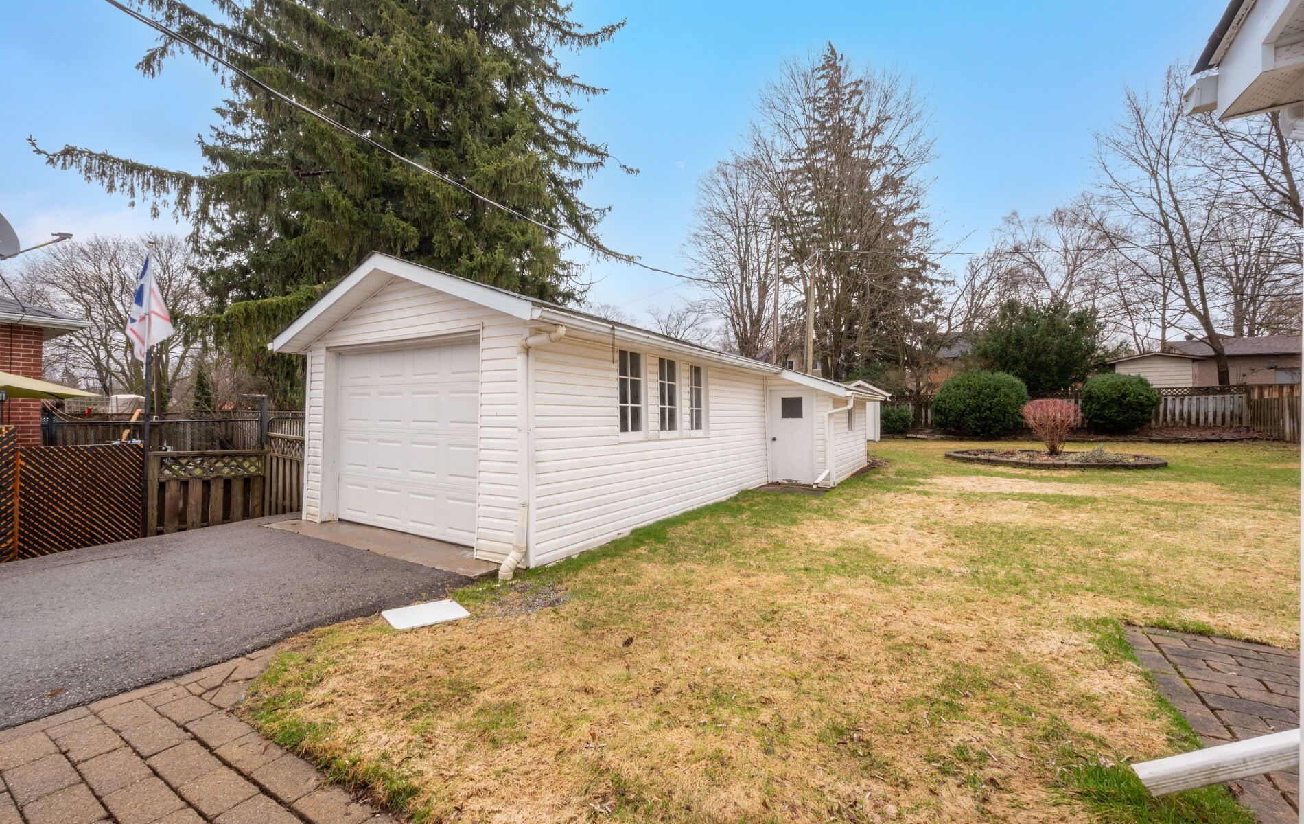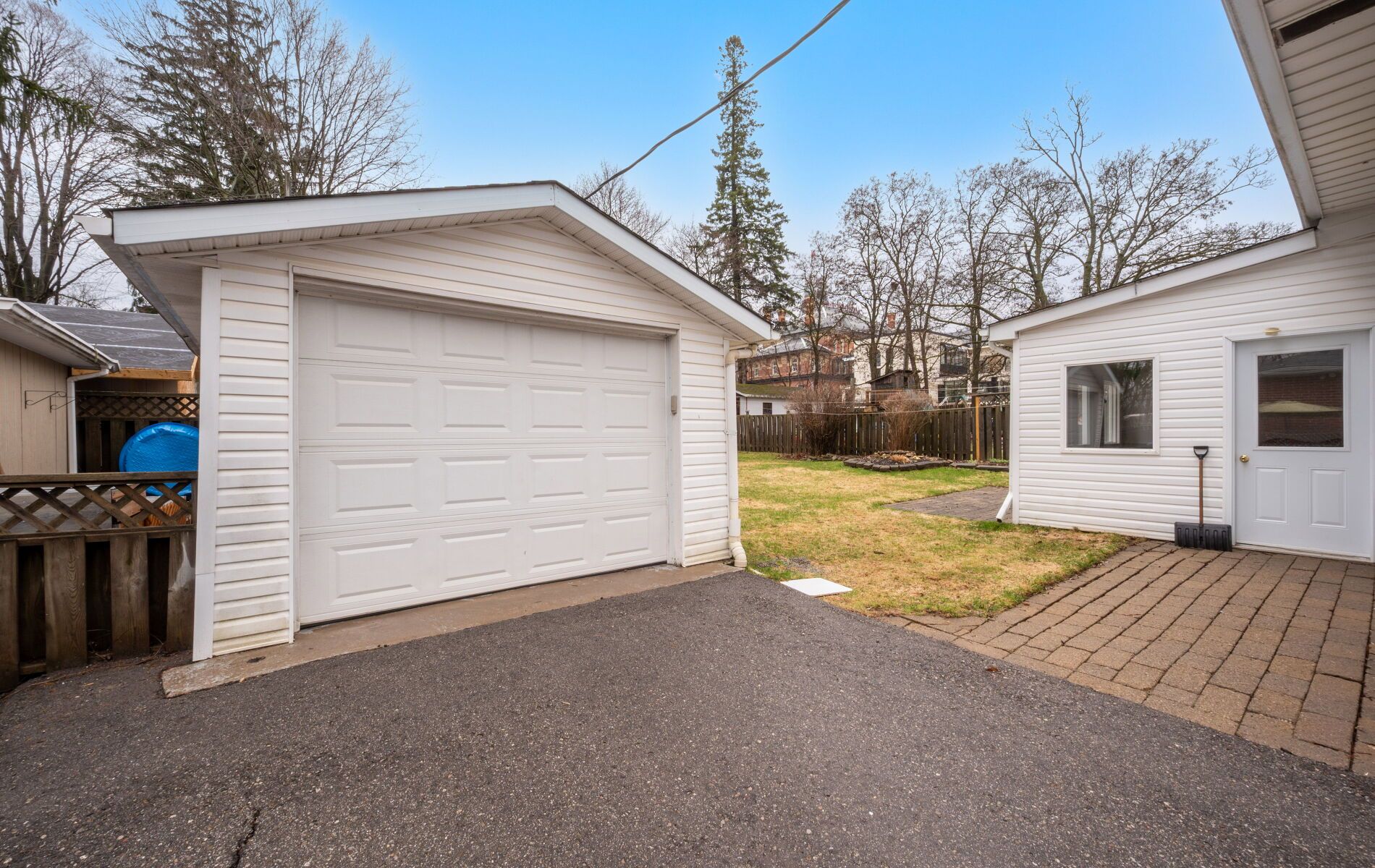 Nestled in a prime central town location, this quaint and well-maintained bungalow offers the perfect blend of historic character and incredible potential. The home welcomes you through a charming enclosed front porch, leading into a spacious living room highlighted by a large front picture window that floods the space with natural light. Beneath the existing carpeting in the living and dining rooms lies original hardwood flooring waiting to be revealed. The main floor features two comfortable bedrooms and a functional rear kitchen that overlooks an impressive 52' x 140' lot. For those who love the outdoors, the rear 3-season sunroom provides a peaceful retreat with a direct entrance to the home. The partially finished basement adds significant living space, featuring a recreation room, kitchenette, powder room, and a guest bedroom area-ideal for an in-law suite or extended family. Practicality abounds with a separate laundry room equipped with a shower stall, a dedicated workshop, a cedar closet, and a cold cellar. Car enthusiasts or hobbyists will appreciate the double-deep tandem garage and ample parking. With updated main-level windows and a location that puts the orangeville theatre, local shops, restaurants, and professional services just a short stroll away, this home is a rare find for those seeking convenience and classic charm.