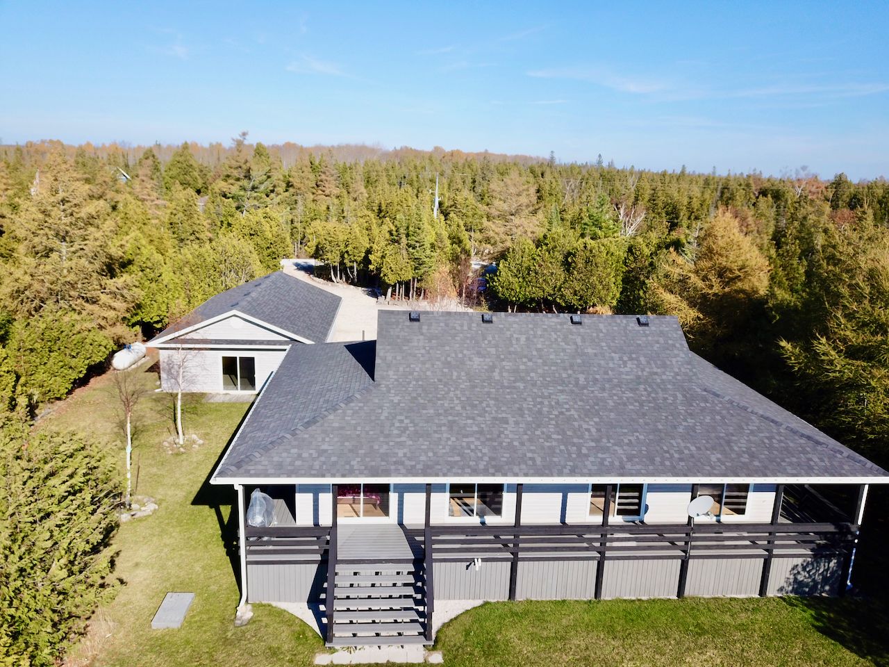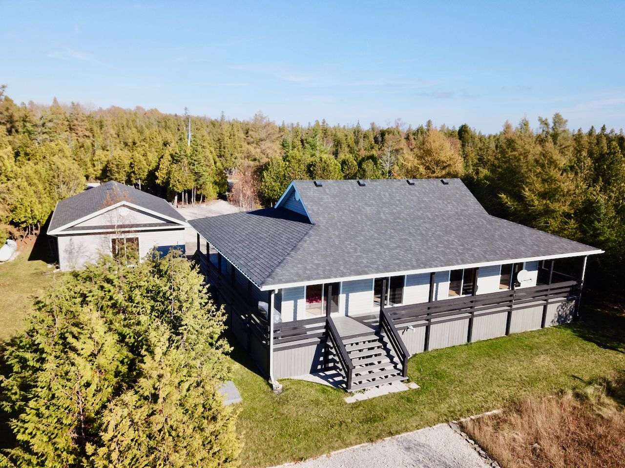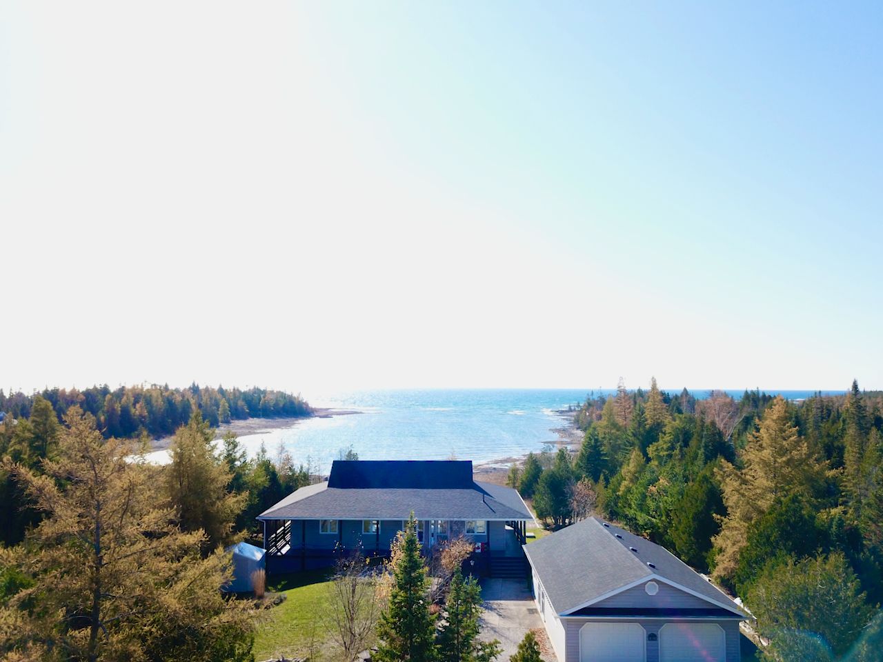 Efficient 4-season cottage or home on 3/4 acre of prime lake huron waterfront in the desirable warner bay / eagle harbour area on the bruce peninsula. Offering modern conveniences ... Forced air furnace (new 2018), central air (new 2018), hrv air-exchanger, propane gas fireplace. Primary bedroom w/ensuite & walk-in closet & water views & walkout to patio. Efficient 1382 sq ft of open design living space, custom kitchen w/island + built-in appliances, great room w/2 patios doors & water views, 3 bedrooms (2 with water views & walkouts), 2 full bathrooms, 360 degree wrap-around covered deck. Additional 336 sq ft living space - finished & heated bunkie with patio doors & water view for a 4th bedroom, office, entertain room or guest suite! Oversized & insulated double garage to store toys and large circular driveway. Property being sold turn-key with all furnishings included, plus extras bbq, kayak, canoe, generator, snowblower all included!! Over 111ft of private shoreline featuring gentle, flat rock entry for crystal clear water for swimming and water-sports. West-facing, secluded cove boasts sunset views & idyllic protection from large open-water waves. Professionally landscaped, low maintenance property offers more time for fun & exploring the miles of area shoreline inlets by kayak, canoe or seadoo ... Tobermory is a 15min seadoo or drive to shopping or lunch, snorkelling wrecks, hiking the bruce trail / cliff jumping at the grotto. Or just relax at your cottage listening to the waves & taking in the famous lake huron sunsets!
