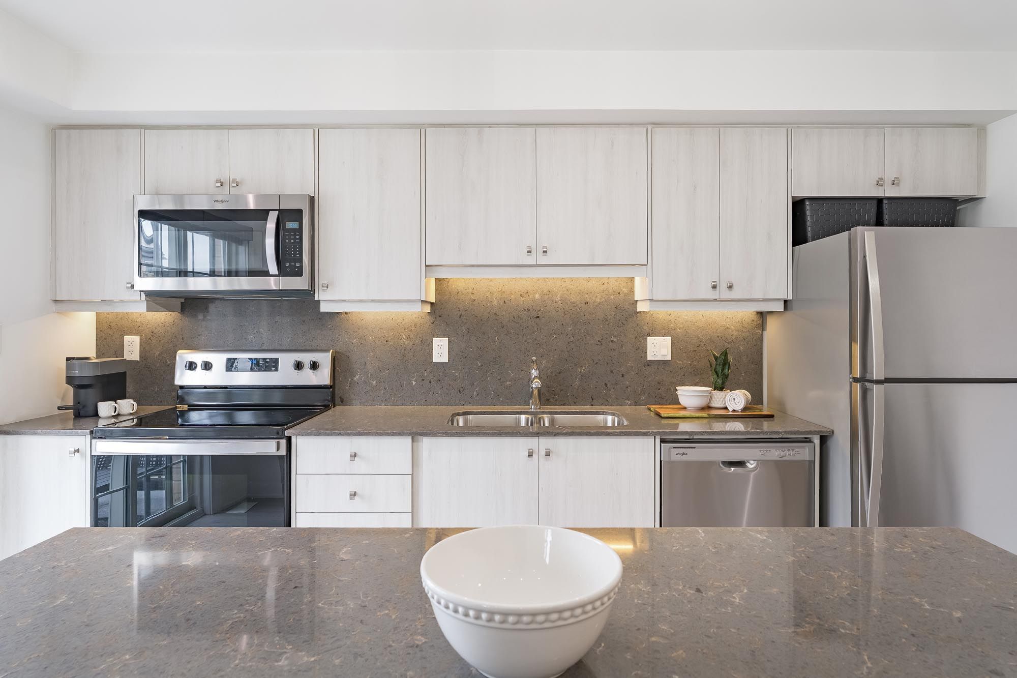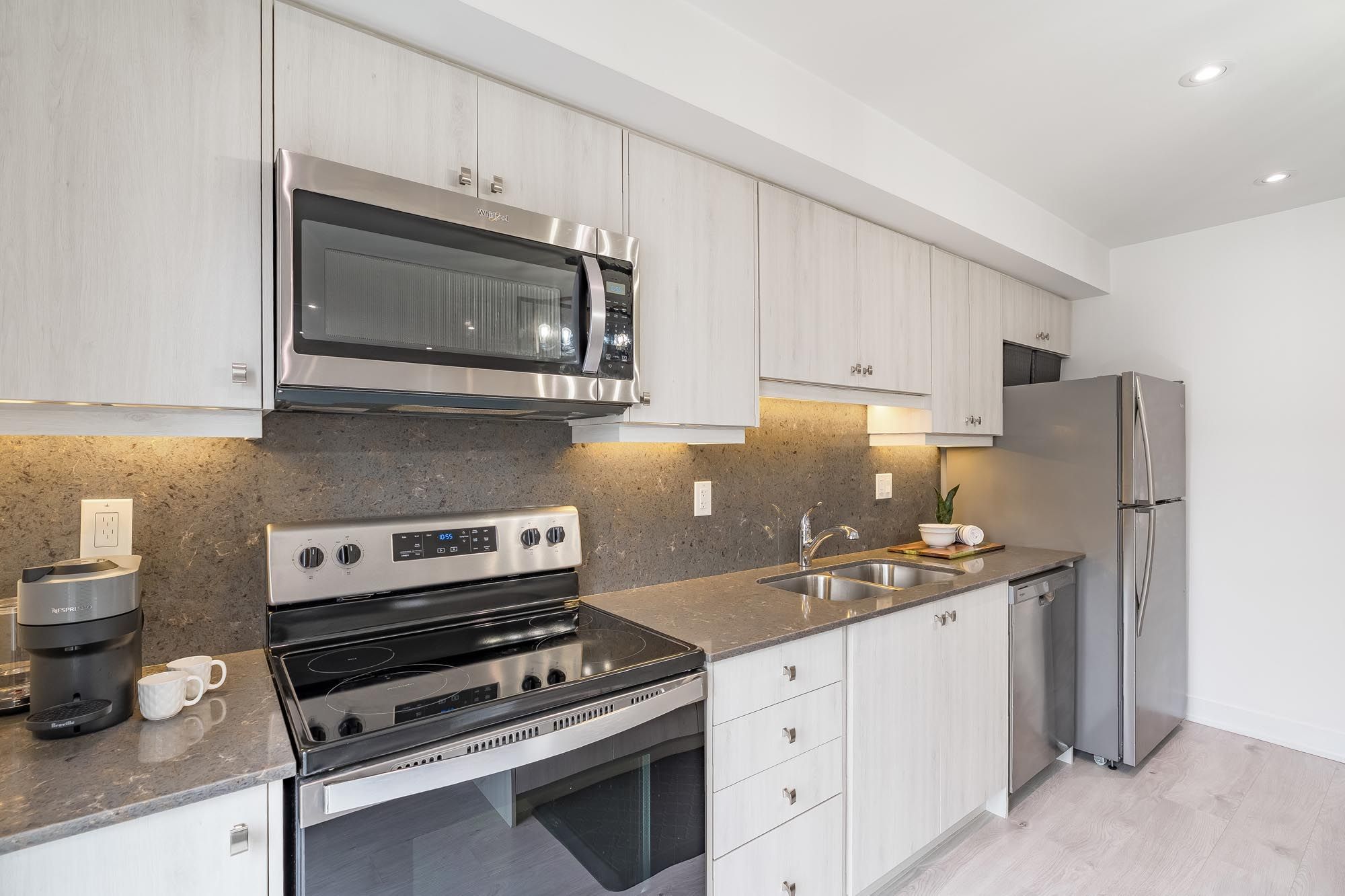• Two bedrooms plus a den for flexible living or home office options.