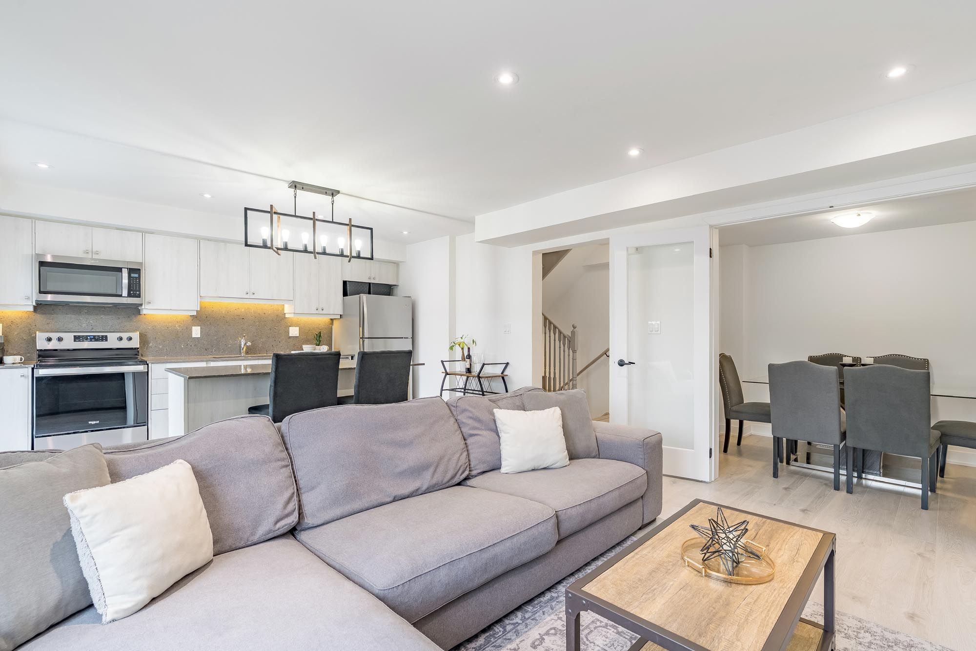 • Open-concept second level connects kitchen and living area, great for entertaining.