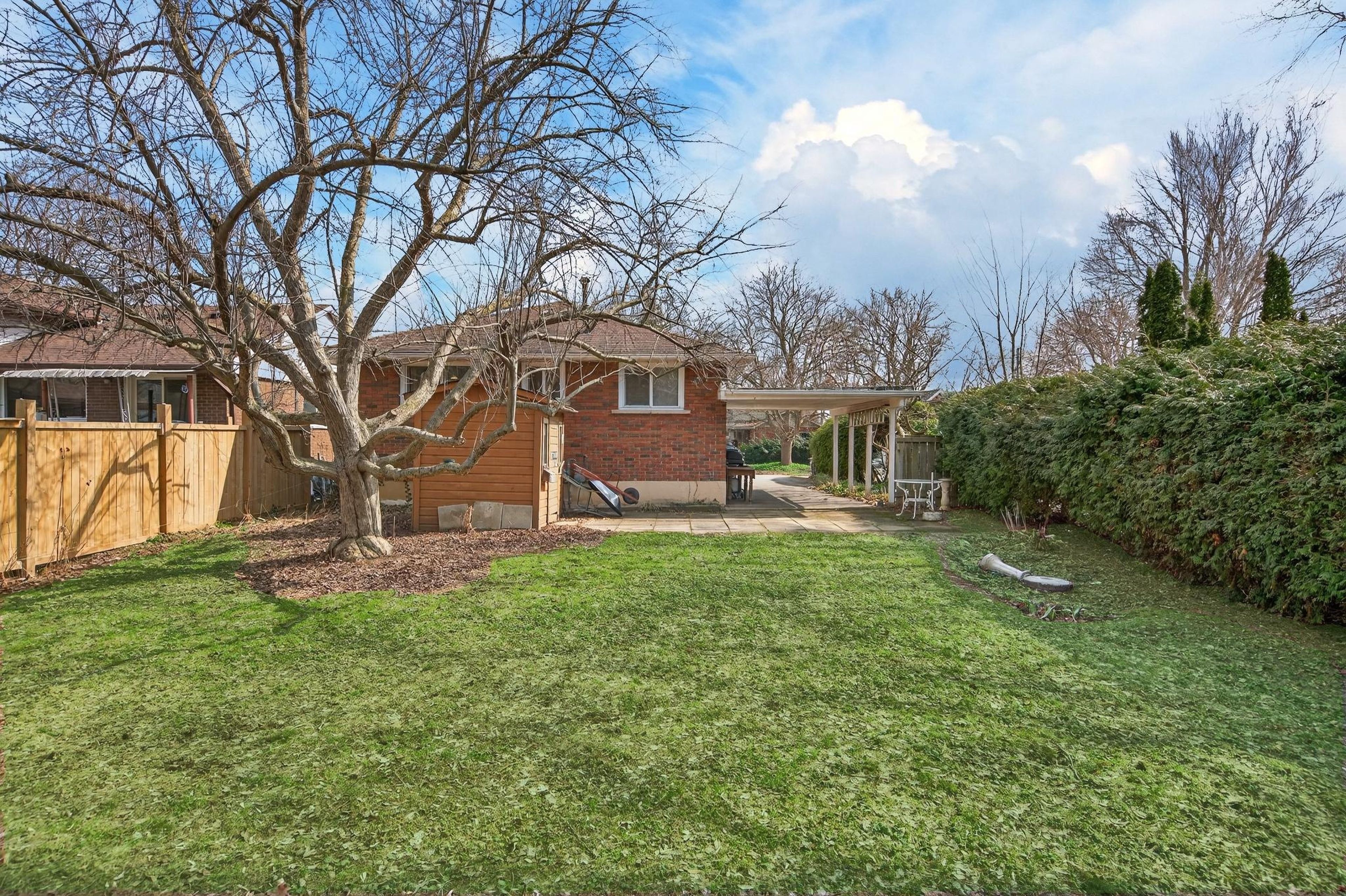Welcome to 34 helen street, a charming brick bungalow ideally situated in the heart of the picturesque town of dundas. Set on an expansive 50' x 179. 22' property (irreg) surrounded by mature trees and lush greenery, this lovingly maintained home offers exceptional outdoor space and a peaceful setting rarely found this close to the vibrant downtown core. Opportunities on this quiet, established street are uncommon, making this a truly special offering in one of dundas' most desirable neighbourhoods. An updated front door with sidelight welcomes you into a functional foyer w/ convenient storage closet, opening to a bright and inviting living room filled with natural light from a large bay window & hardwood flooring. The functional eat-in kitchen provides a practical and welcoming environment for preparing meals & family dining. The main level also features 3 spacious bdrms, each complete with hardwood flooring. A well-appointed 4-pc bath with a shower/tub combo offers convenience and functionality. A side-door entrance adds flexibility w/ direct access to both the main and lower levels. The p-fin lower lvl expands the living space w/ a large rec rm perfect for relaxing, hobbies, or entertaining. A den currently utilized as a 4th bdrm, along with laundry facilities & storage/utility space round out the lower lvl. Outside, the deep mature yard provides a private outdoor retreat framed by established foliage. The property also offers impressive parking w/ surfaced parking for 6+ vehicles w/ a convenient carport. Ideally located just minutes from downtown dundas, residents enjoy easy access to charming boutiques, cafés, restaurants, schools, & everyday amenities. The nearby dundas driving park is a beloved local destination featuring playgrounds, sports fields, tennis, picnic areas, and more. A rare opportunity to own a meticulously maintained home on a deep property in one of dundas' most established and sought-after neighbourhoods.