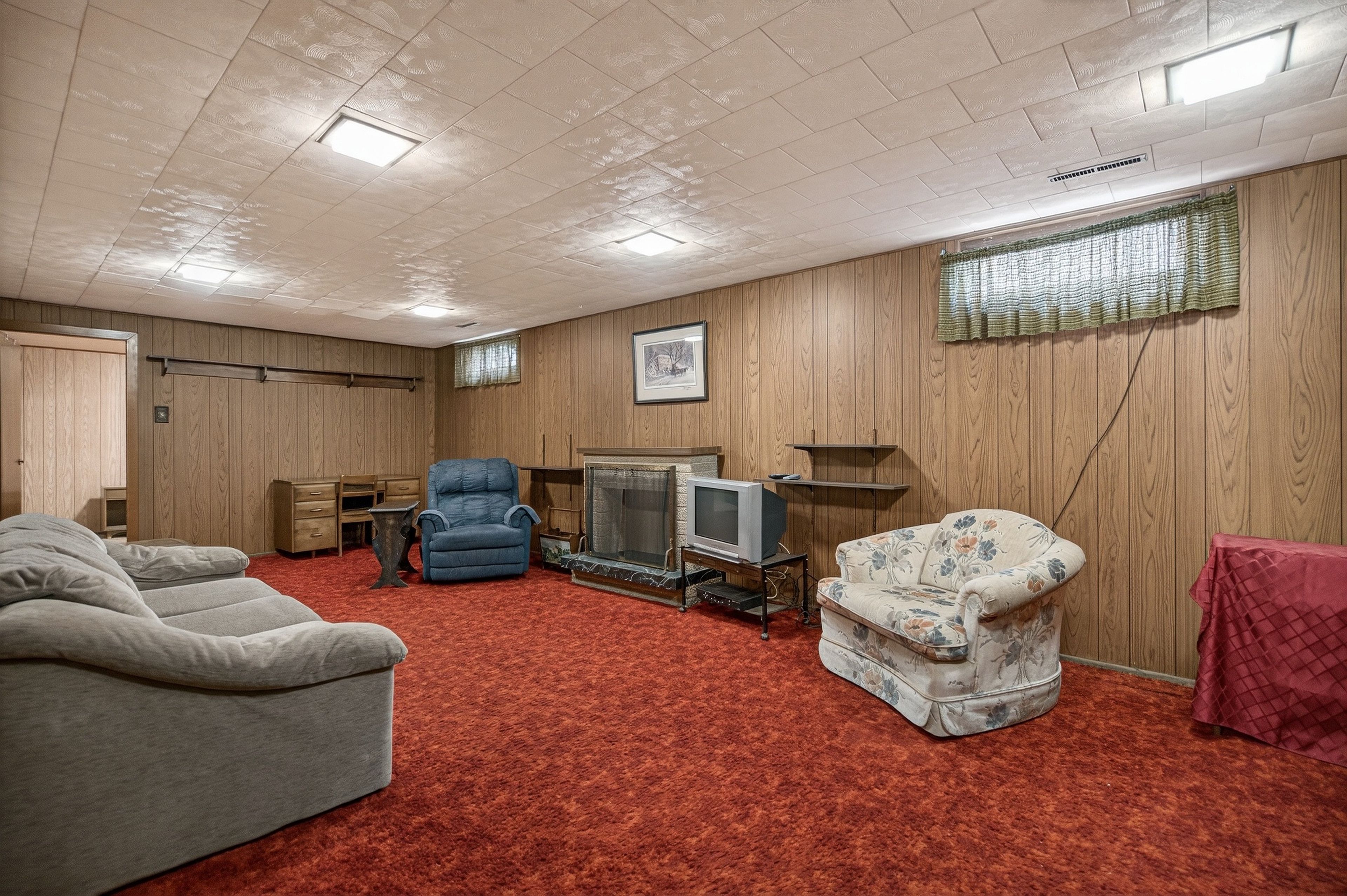 • Finished lower level with rec room, den, and additional storage.