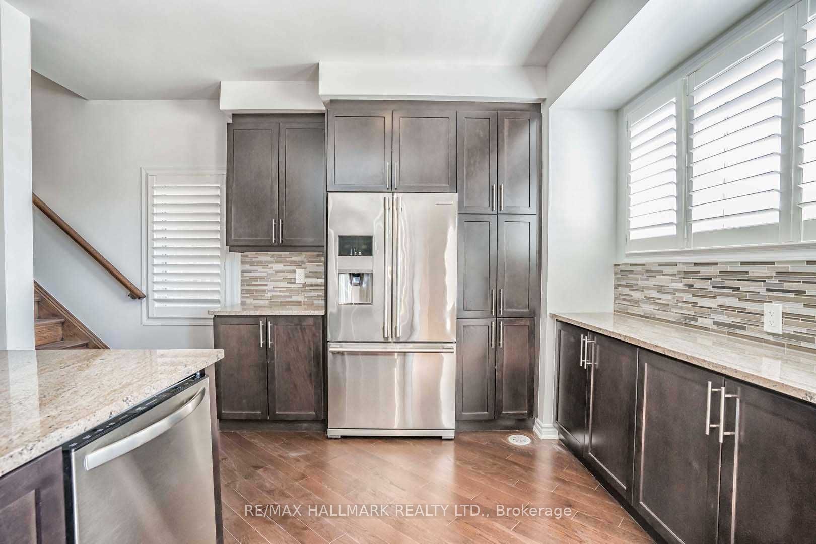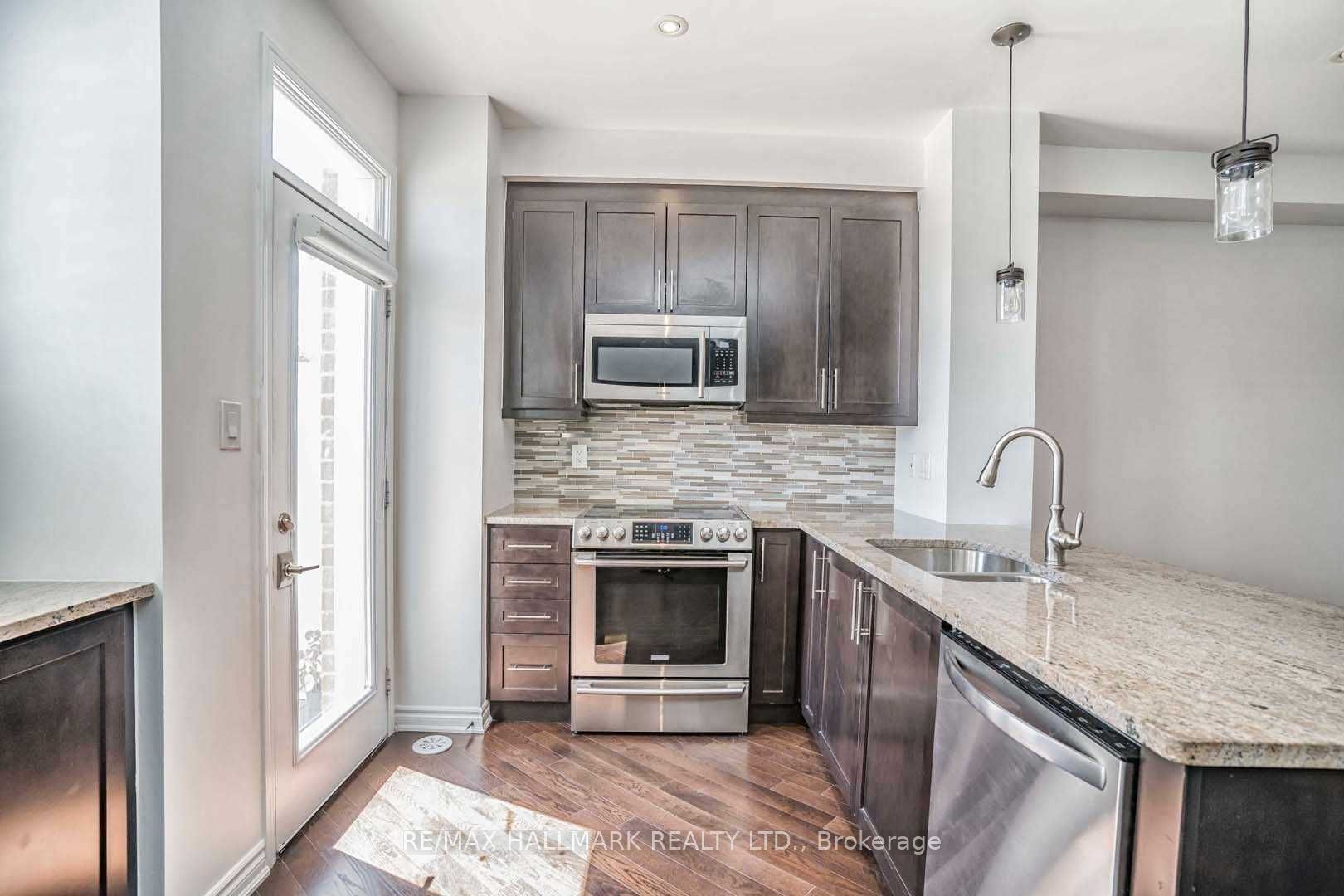 Splendid mattamy-built end townhome in the heart of scarborough. Impeccable curb appeal w/ brick & stucco exterior. Airy, open concept layout w/ natural sunlight gleaming throughout. Fully upgraded w/ diagonal installation belgium chocolate hardwood floors. Smooth ceilings w/ pot lights. Chef's kitchen featuring 36" kitchen cabinets, granite countertops & upgraded stainless steel appliances. Walkout to deck from kitchen - perfect for entertainers. Conveniently located near go, ttc, highway & many natural amenities.