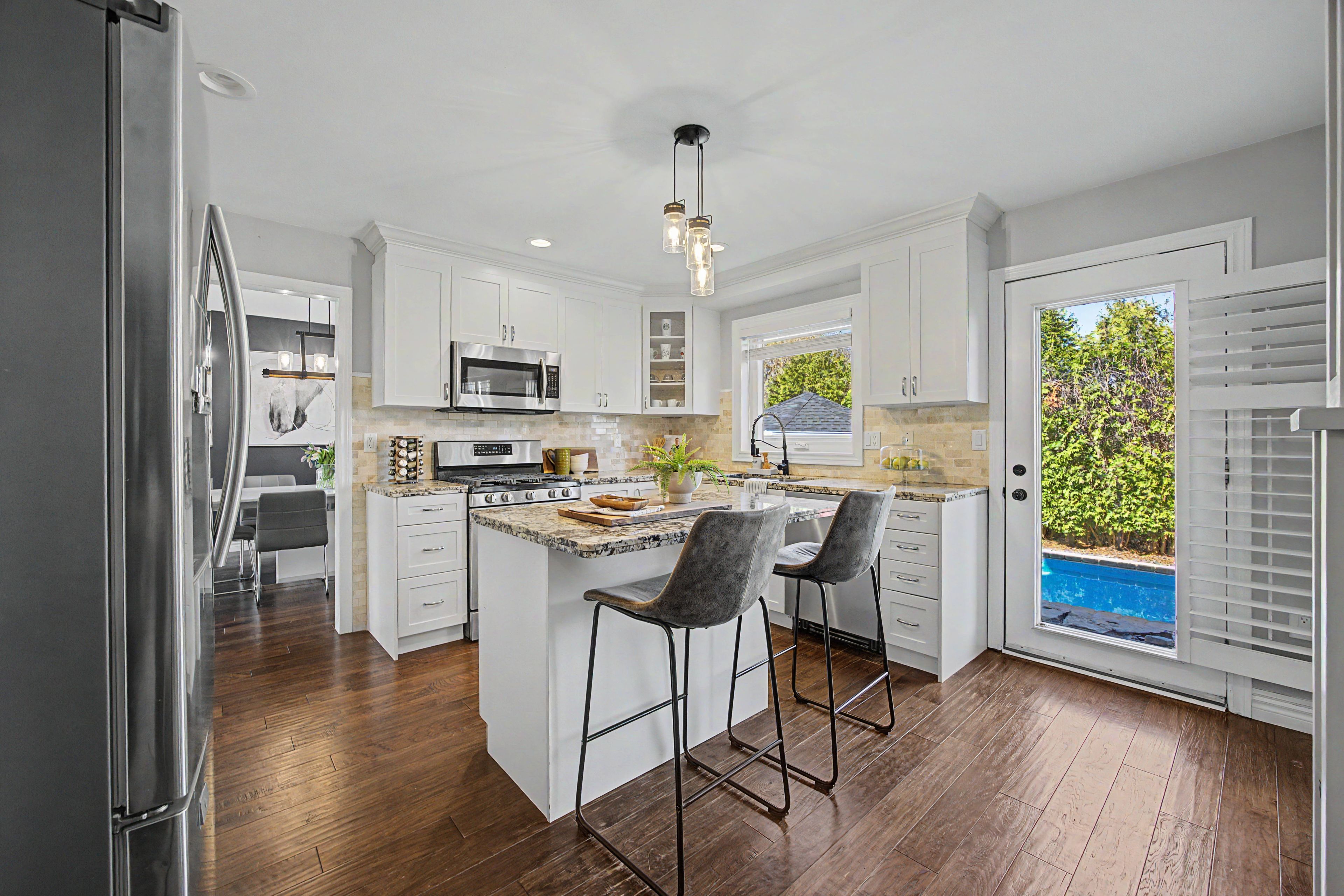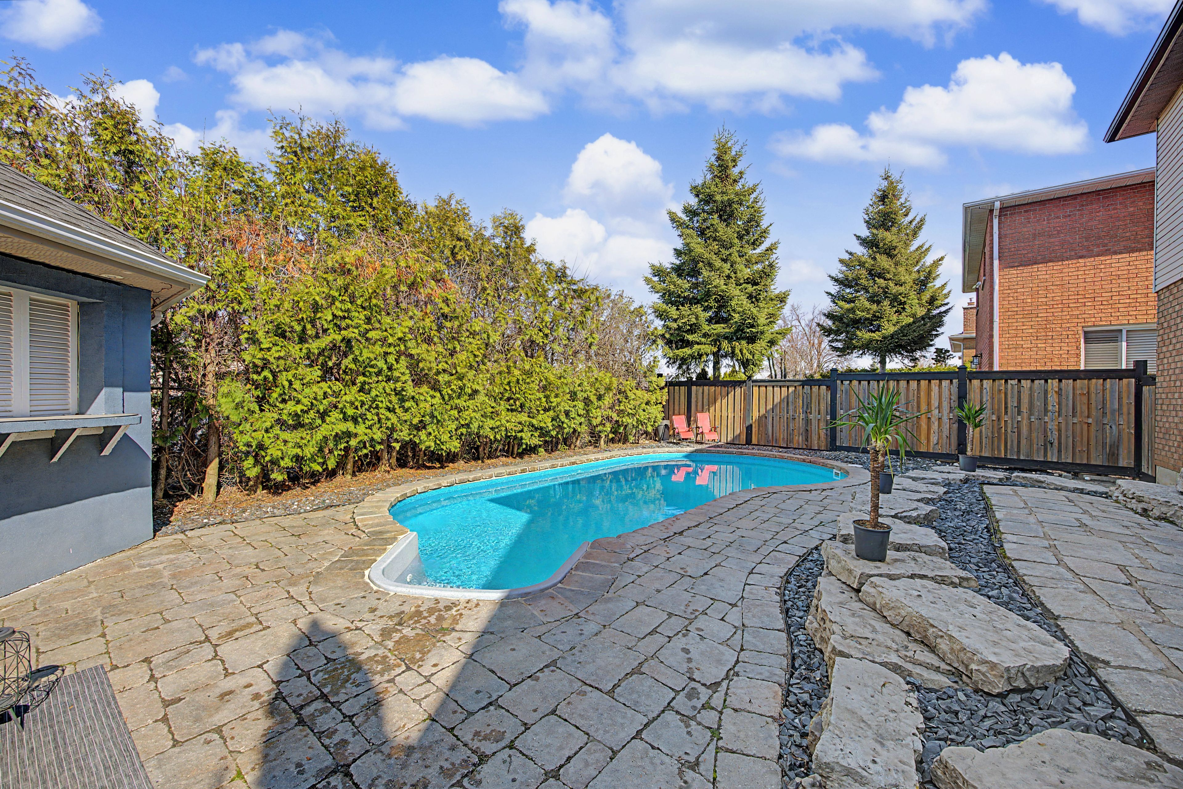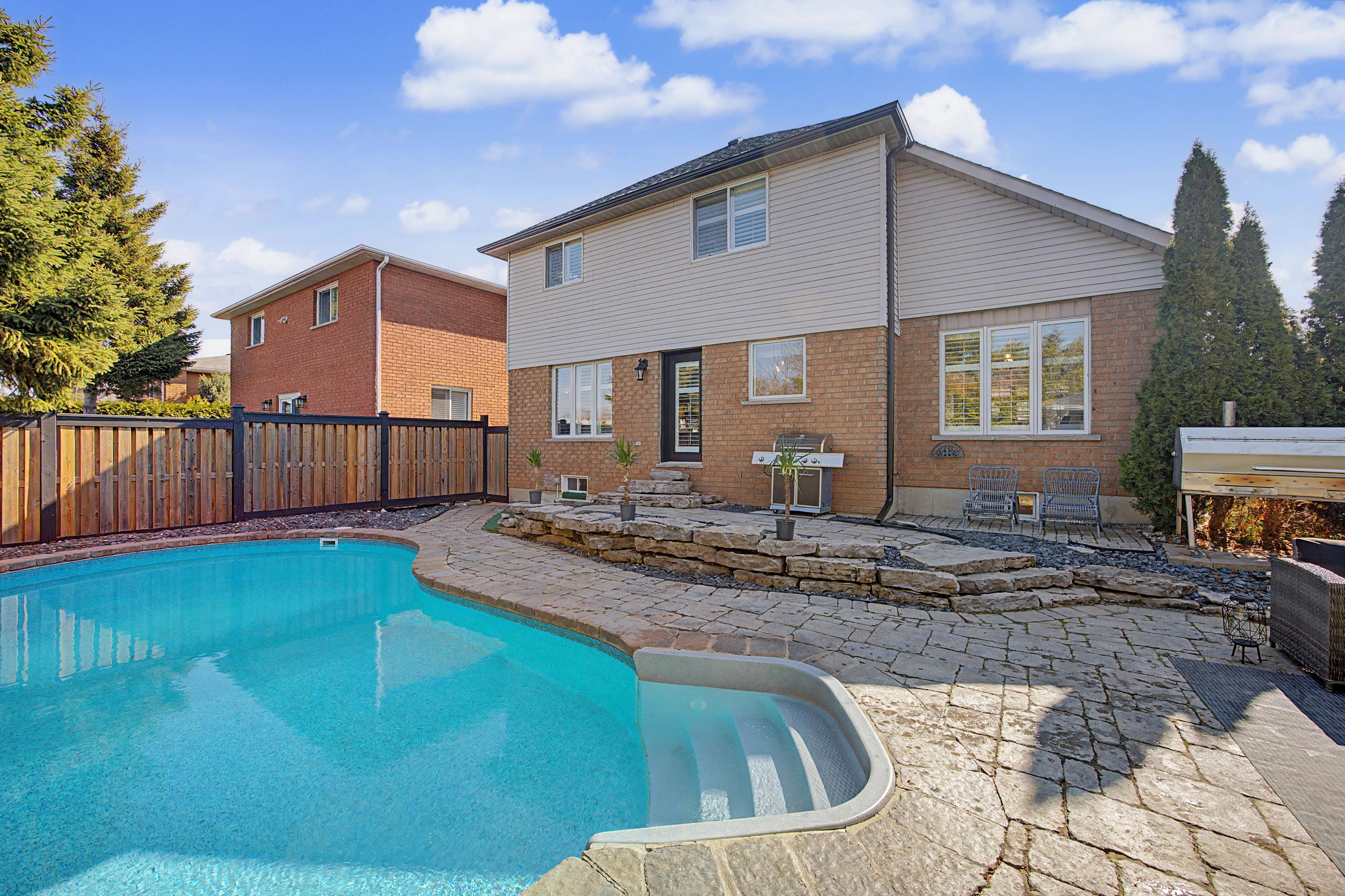 The perfect family home in the sought-after stoney creek mountain, leckie park neighbourhood. Brimming with curb appeal, this 3-bedroom, 3. 5 bathroom home offers over 3100 sq ft of finished living space. Tastefully decorated and thoughtfully updated, there's nothing to do but move in. Soaring vaulted ceilings in the formal living and dining area create a bright and open feel. The family room features a cozy gas fireplace, built-in storage, and opens into the beautifully updated custom kitchen, complete with granite counters, a centre island with seating, and high-end appliances. Upstairs, you'll find three well-sized bedrooms, including a spacious primary suite with a walk-in closet and a 5-piece, spa-like ensuite featuring double sinks, a glass shower, and a freestanding soaker tub. The fully finished basement offers plenty of storage, flexible living space, and a 3-piece bathroom. Step outside to your own private backyard retreat, complete with a heated inground pool and stone patio-ideal for relaxing or entertaining. The 2. 5 car garage is insulated and equipped with a split unit for heating and a/c (2021). Additional features include hardwood flooring throughout the main and upper levels, pot lights, california shutters, main floor laundry, and updated bathrooms. Recent updates include the roof shingles (2022), eavestroughs and downspouts (2023), and pool liner and heater (2023). Conveniently located close to schools, parks, playgrounds, shopping, entertainment, transit, highway access, and scenic nature trails.