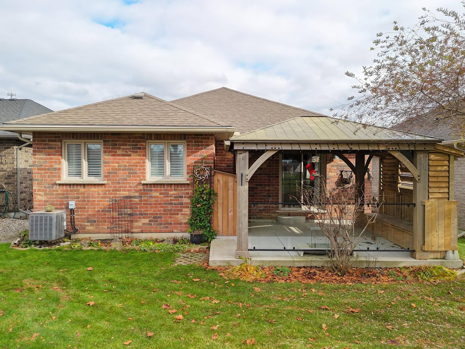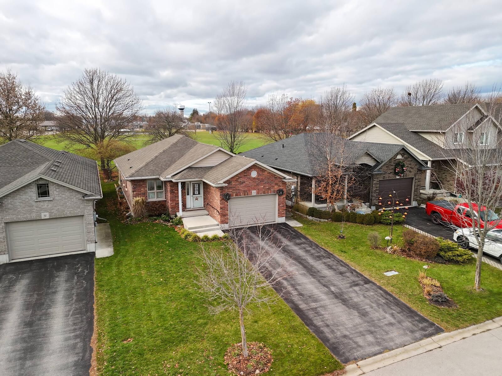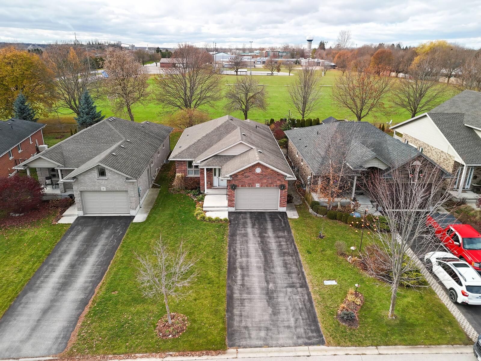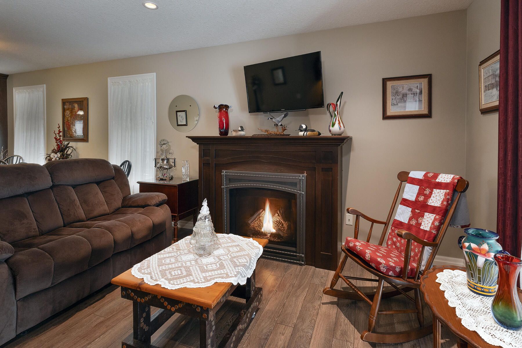 Nestled in a highly sought-after location, this well-maintained brick bungalow offers exceptional comfort and convenience on a quiet cul-de-sac, just a short walk to little falls public school. The main floor features an inviting open-concept layout with a bright kitchen, centre island with breakfast bar seating, and a seamless flow through the dining and living areas-complete with a cozy gas fireplace. From here, step out to the private backyard where a spacious covered poured-concrete patio awaits, showcasing a solid wood gazebo with a metal roof, built-in bench seating with storage, a mounted outdoor tv, and sleek glass railings overlooking the soccer fields behind-providing both peace and privacy. Originally designed with three bedrooms, the home currently uses one as a generous main-level laundry, though it can easily be converted back to a bedroom with a lower-level laundry option. The main level is complete with two bathrooms and two additional well-sized bedrooms. The partially finished basement extends the living space with a large recreation room, office area, 3-piece bath, and abundant storage-offering opportunities for future expansion or customization. Additional features include an attached garage with interior access, and a prime location close to amenities, walking trails, the pyramid recreation centre, friendship centre and much more. A wonderful blend of comfort, functionality, and an ideal setting for any lifestyle.
